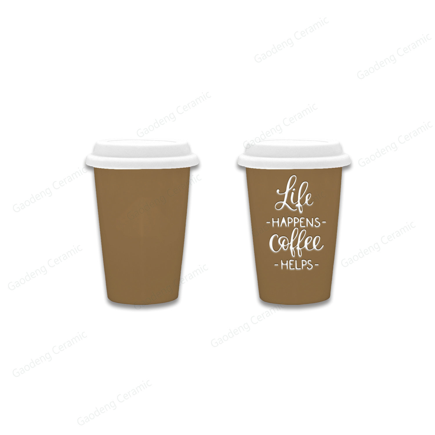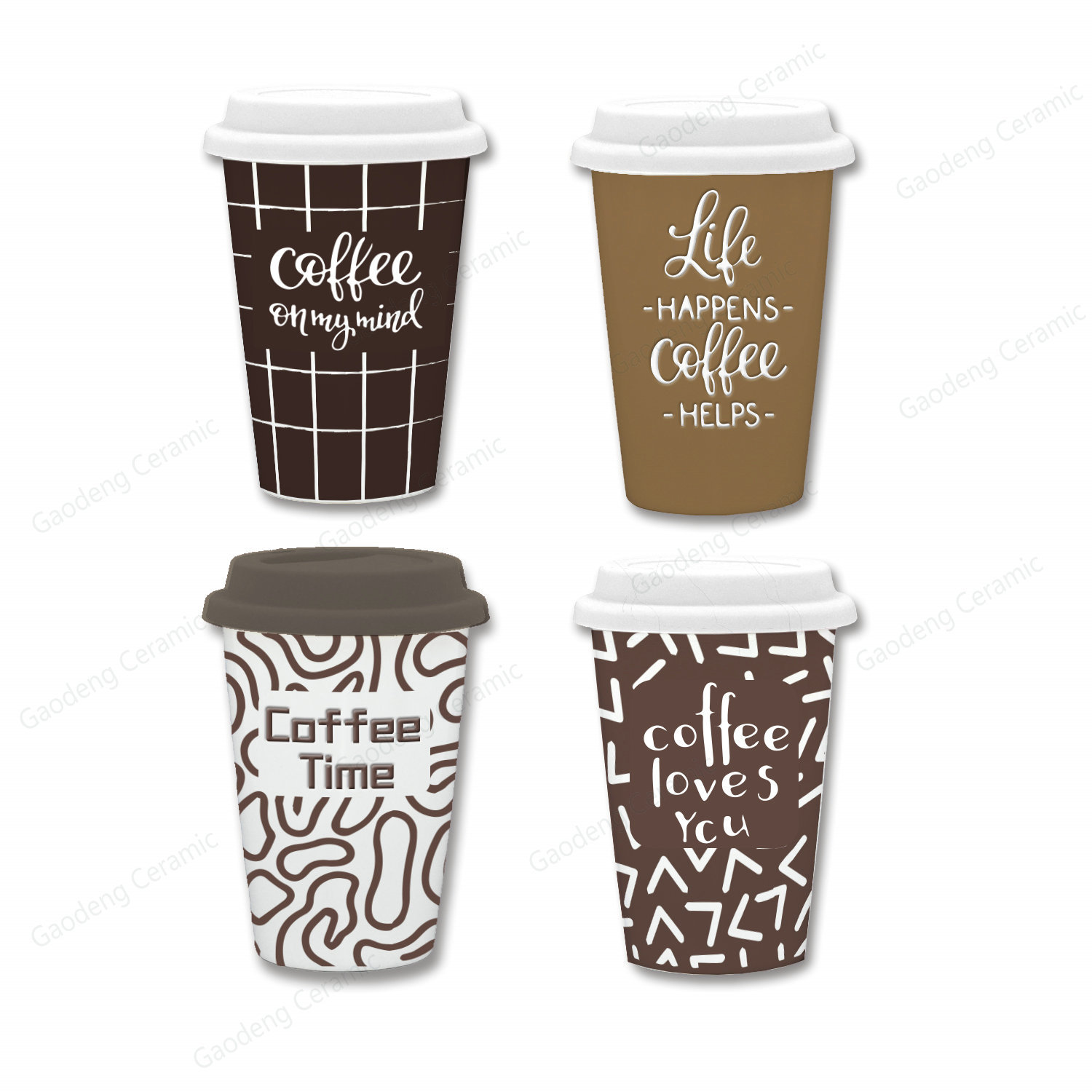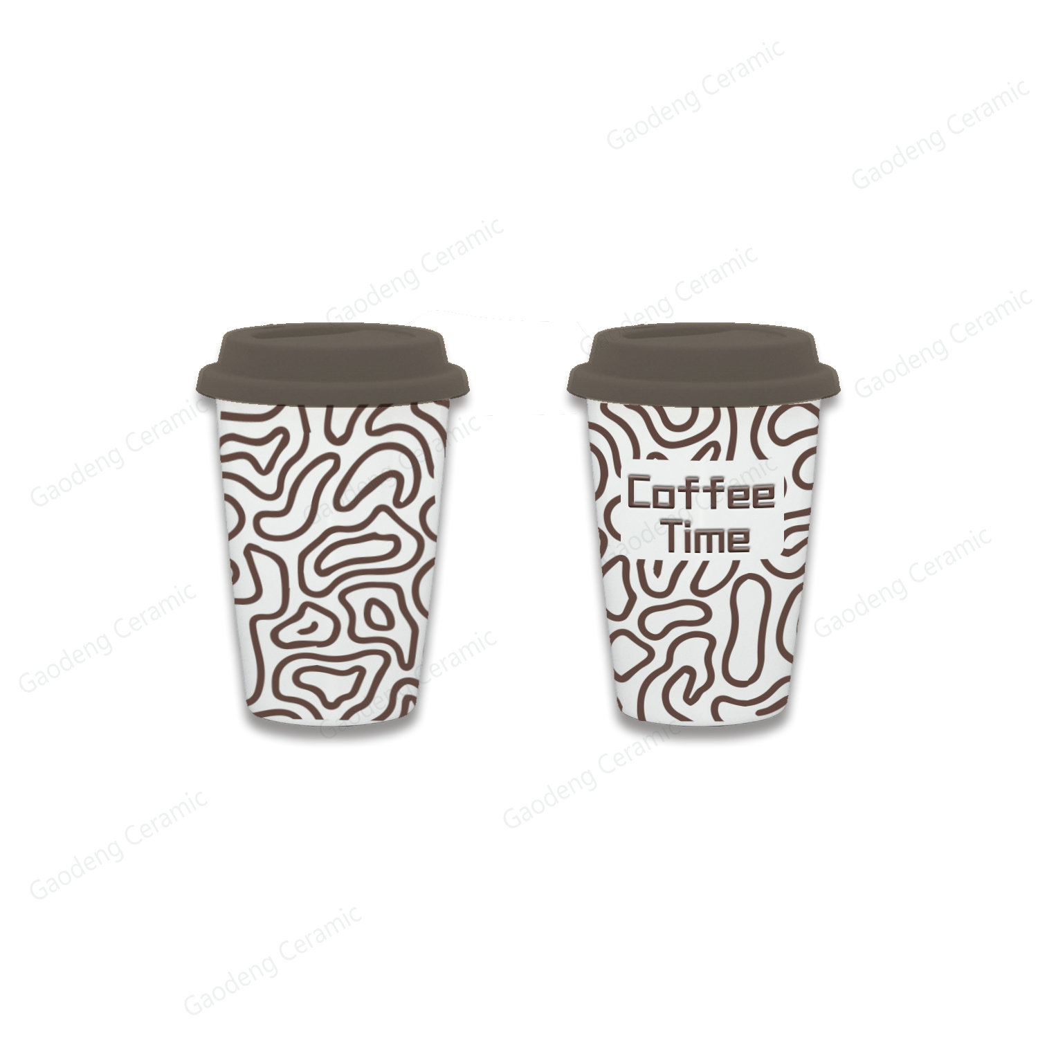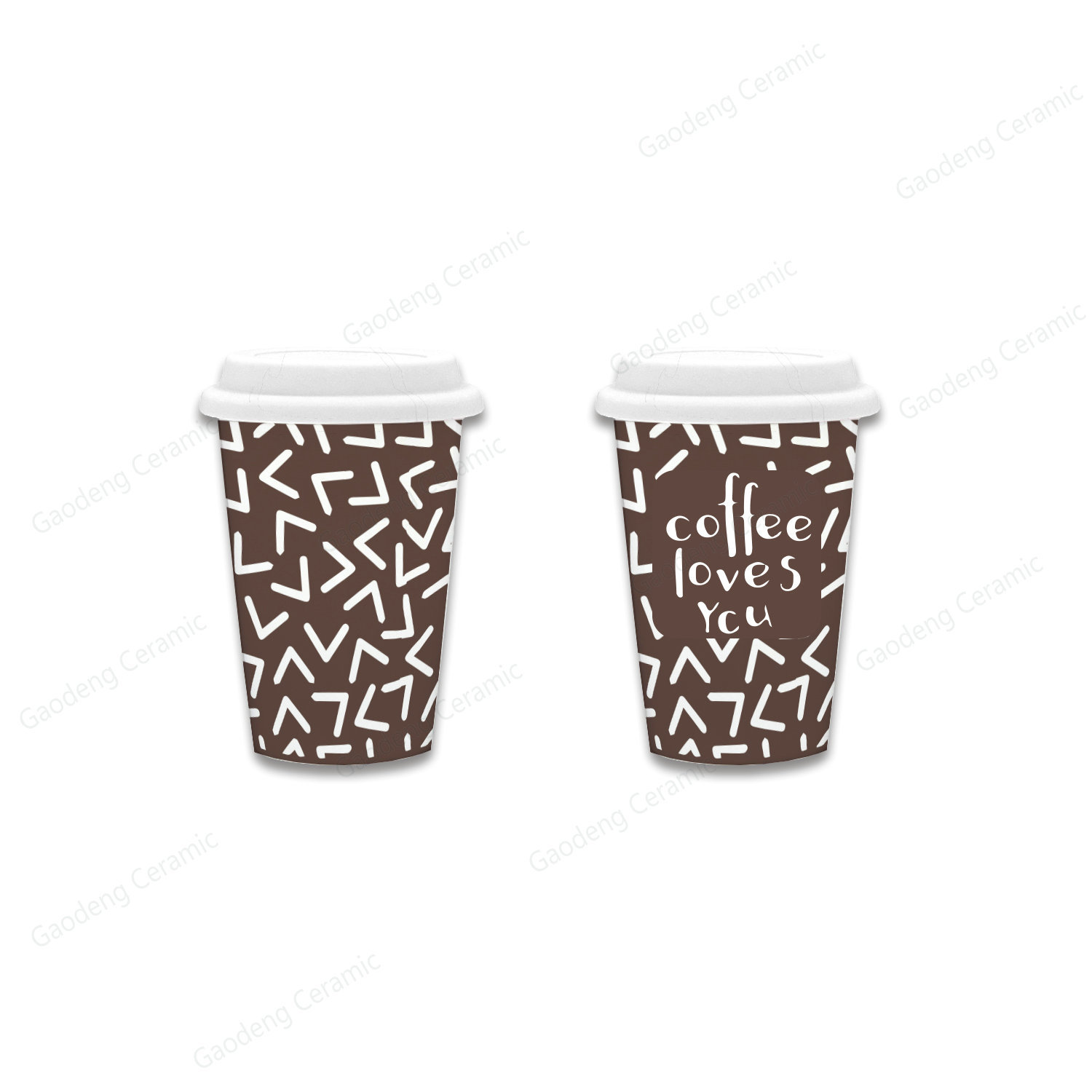 创意无把手陶瓷杯带硅胶盖燕麦咖啡杯 广告图案茶水马克杯定制