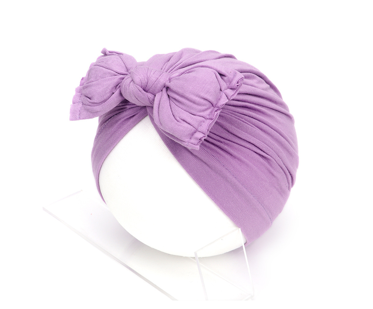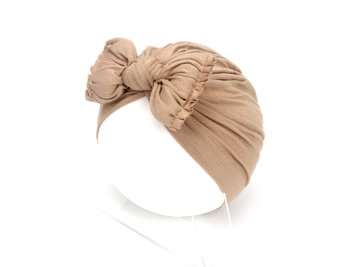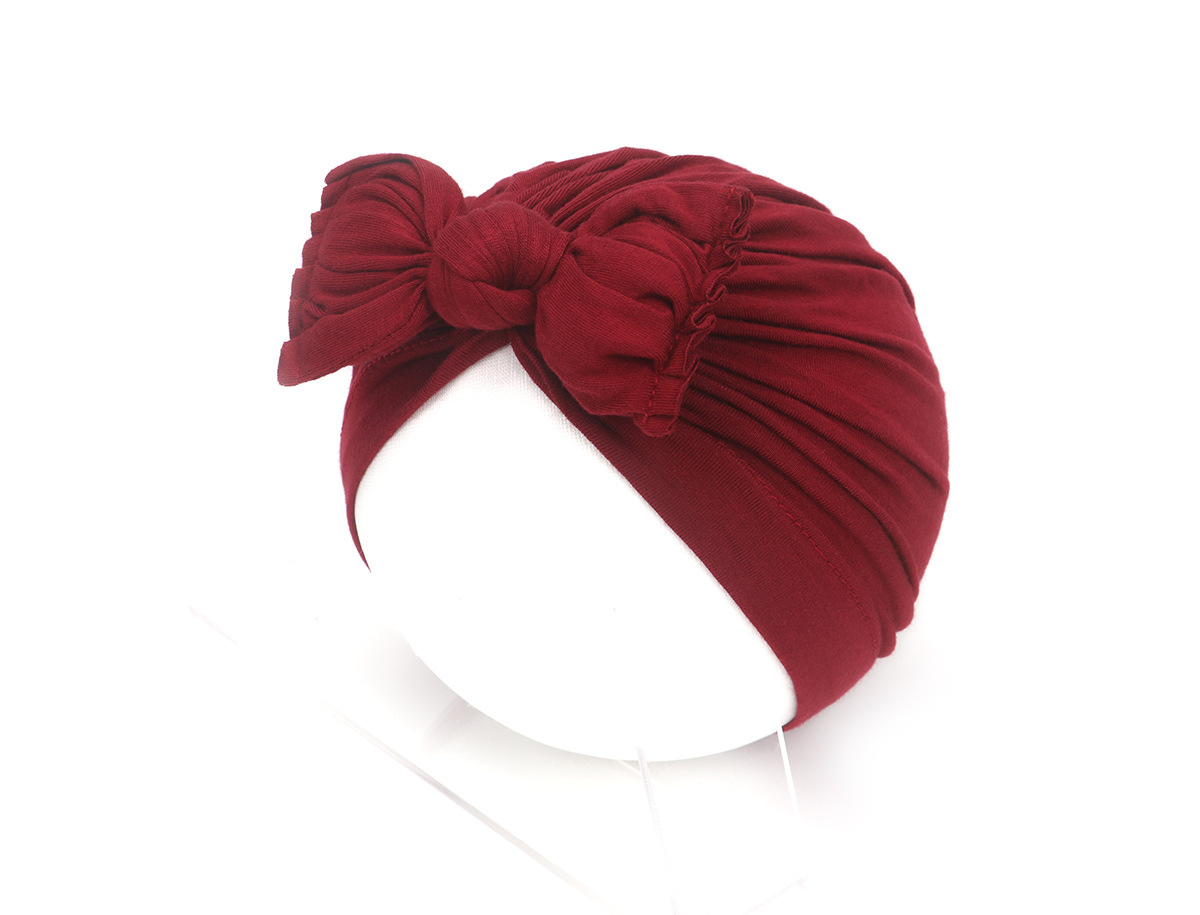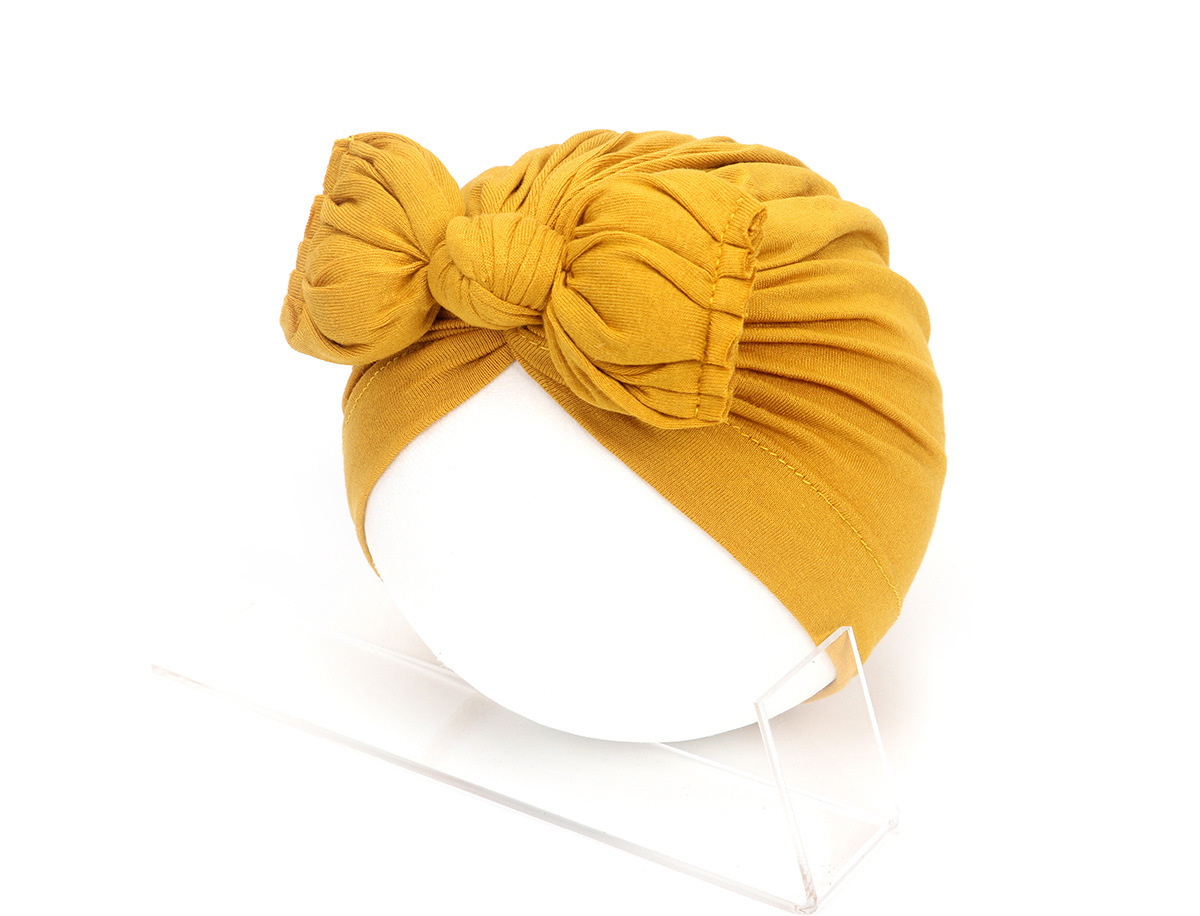 2025新款褶皱婴儿帽子蝴蝶结儿童帽子宝宝纯色打结套头帽印度帽子