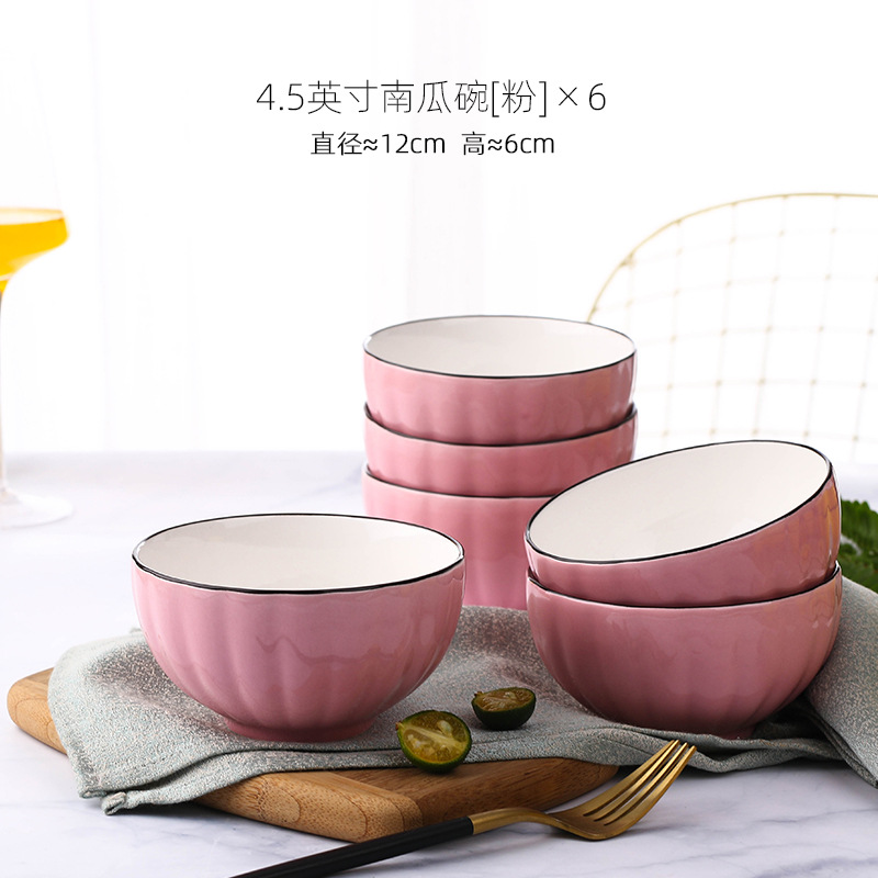 4.5英寸碗家用陶瓷碗批发促销礼品杯碗套装 创意南瓜碗5英寸饭碗