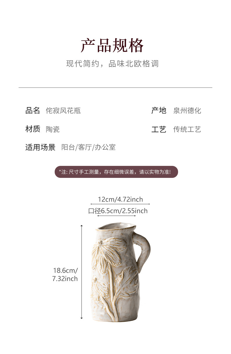 陶瓷花瓶高级感法式艺术ins风创意摆件水培插花瓶复古礼盒装跨境