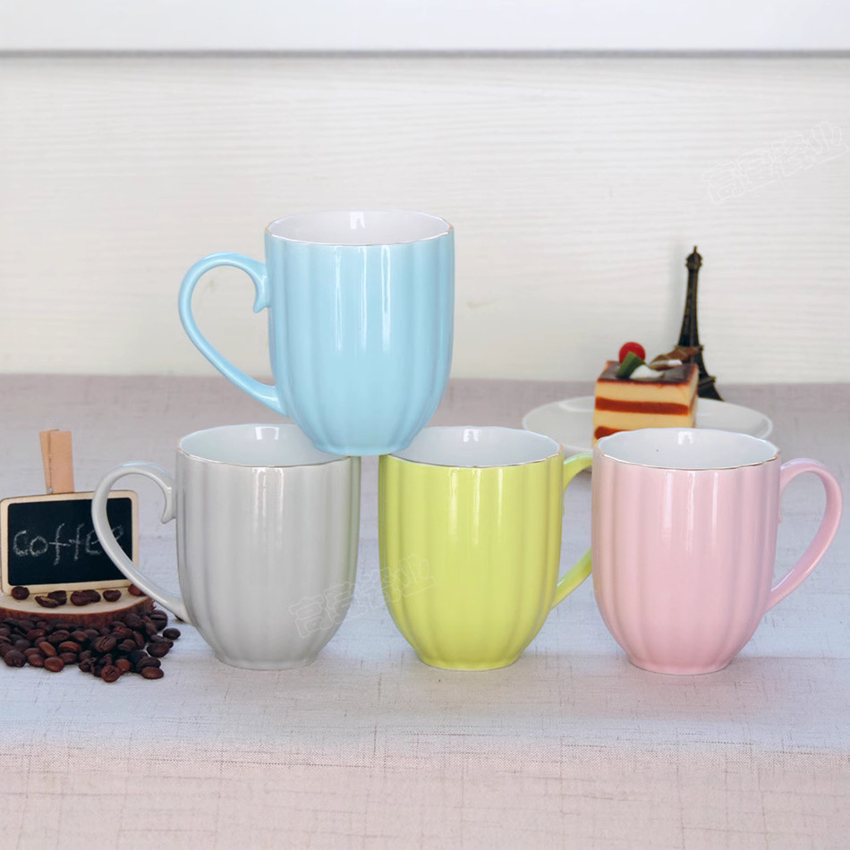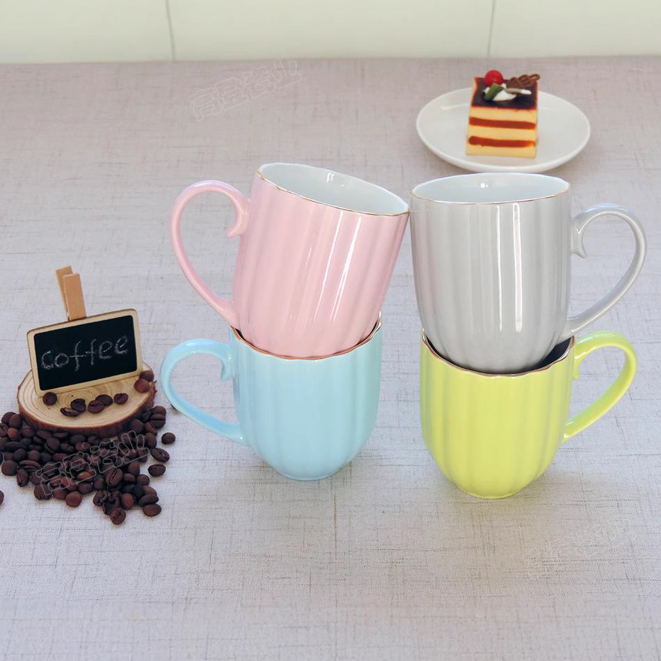 新骨瓷色釉咖啡杯套装真金边南瓜造型陶瓷杯创意礼品套装印制logo