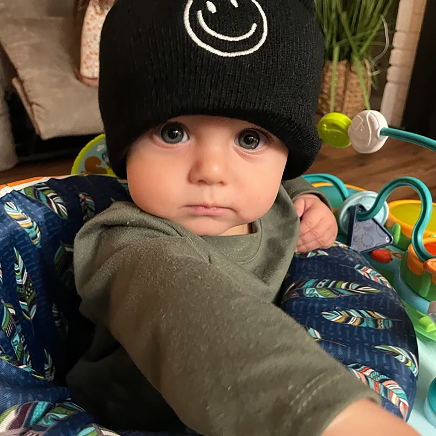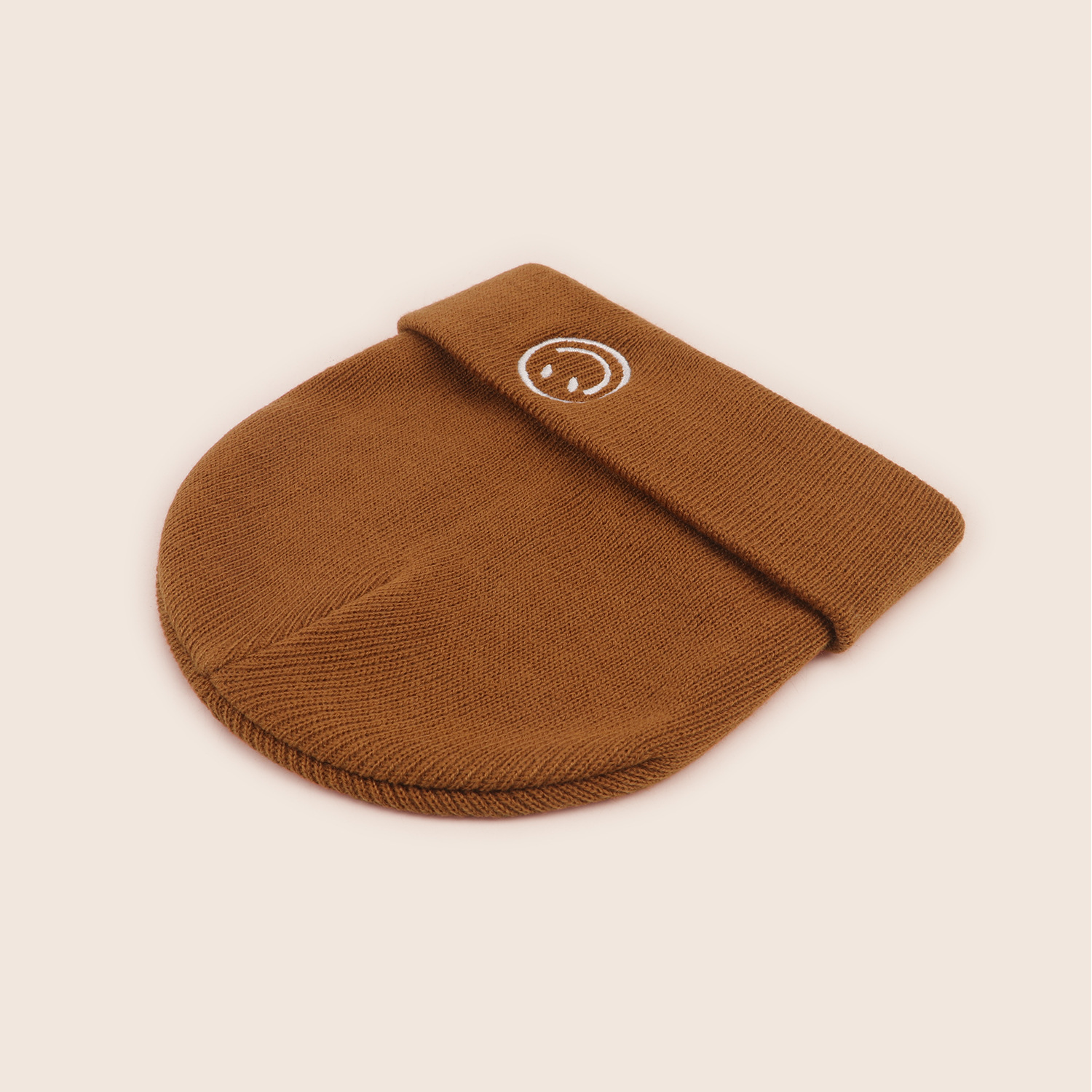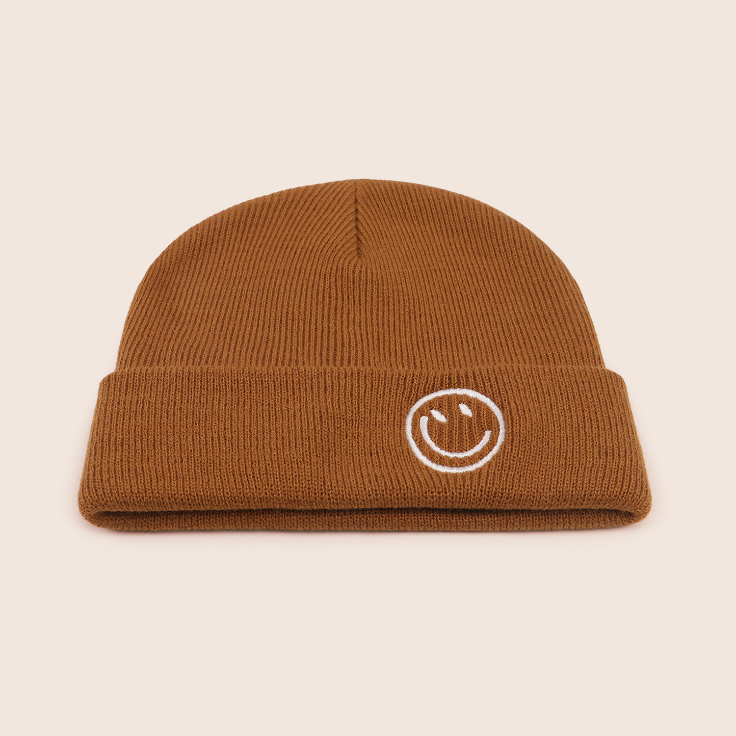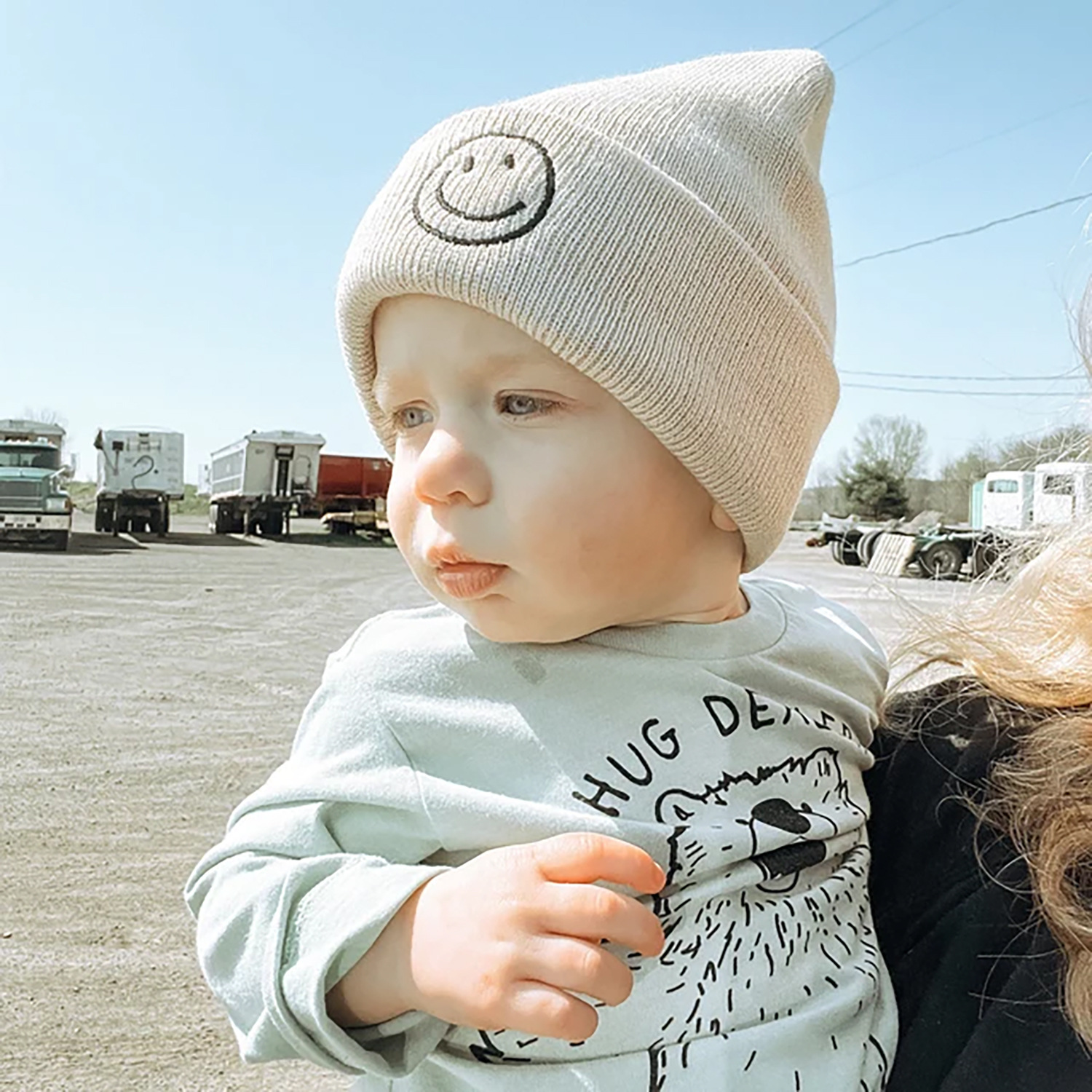 跨境热卖笑脸刺绣秋冬保暖护耳针织帽男女宝宝儿童圆顶毛线帽批发