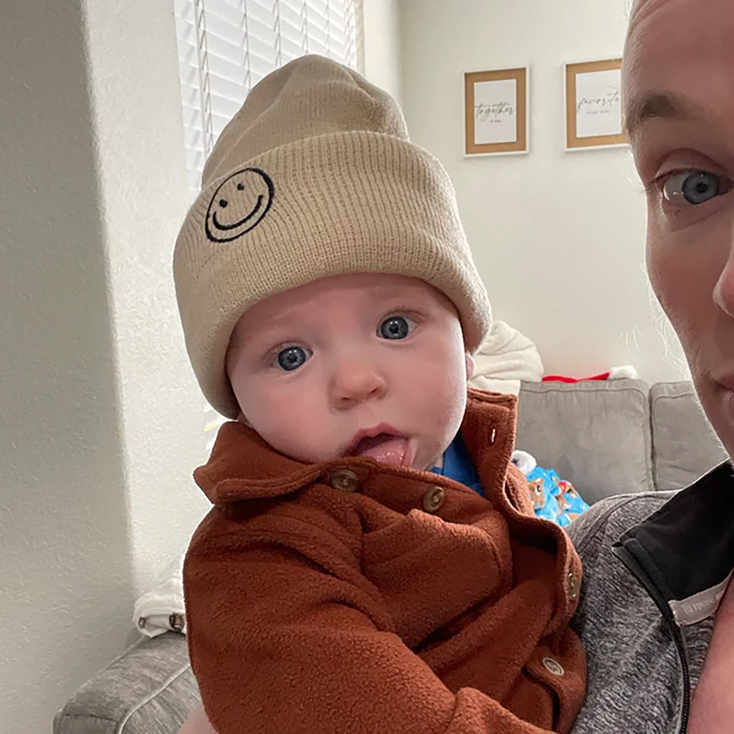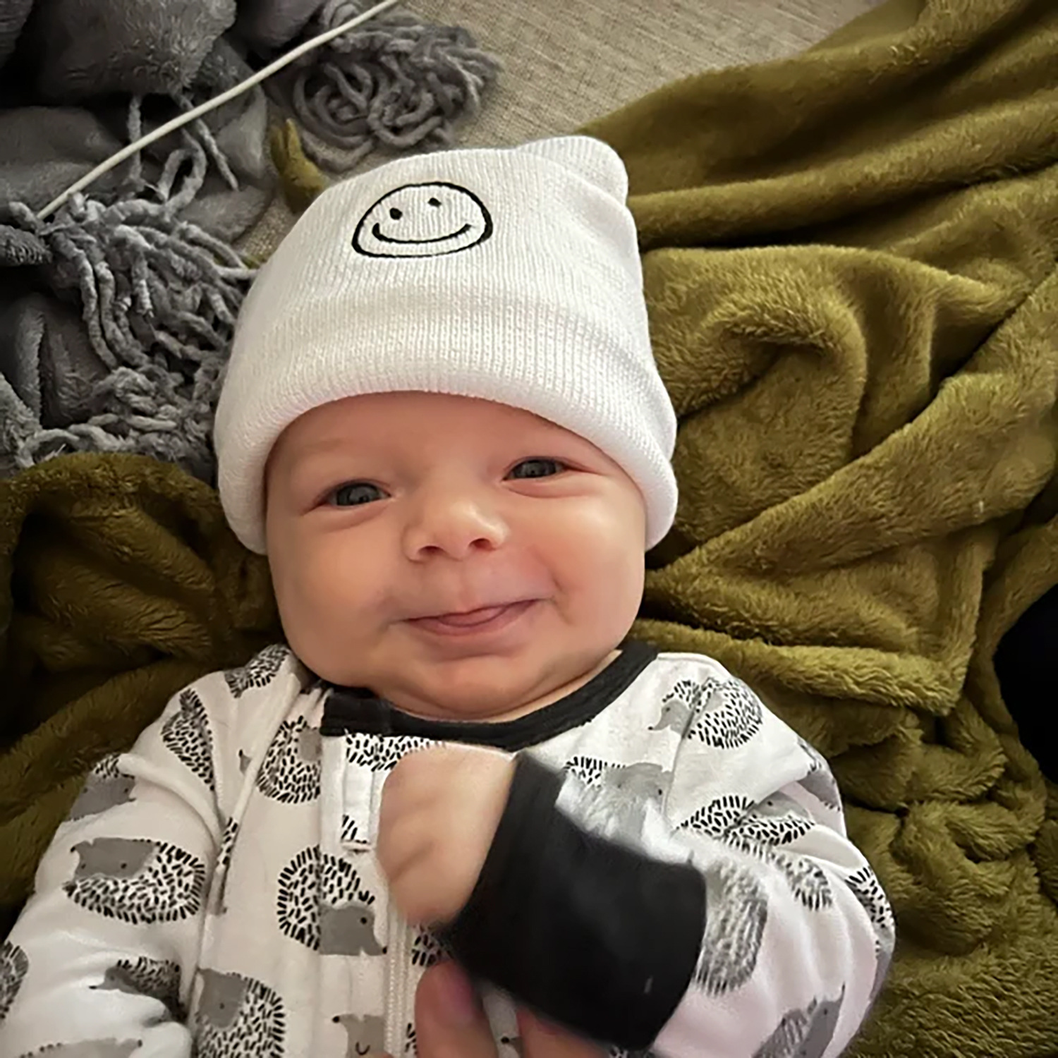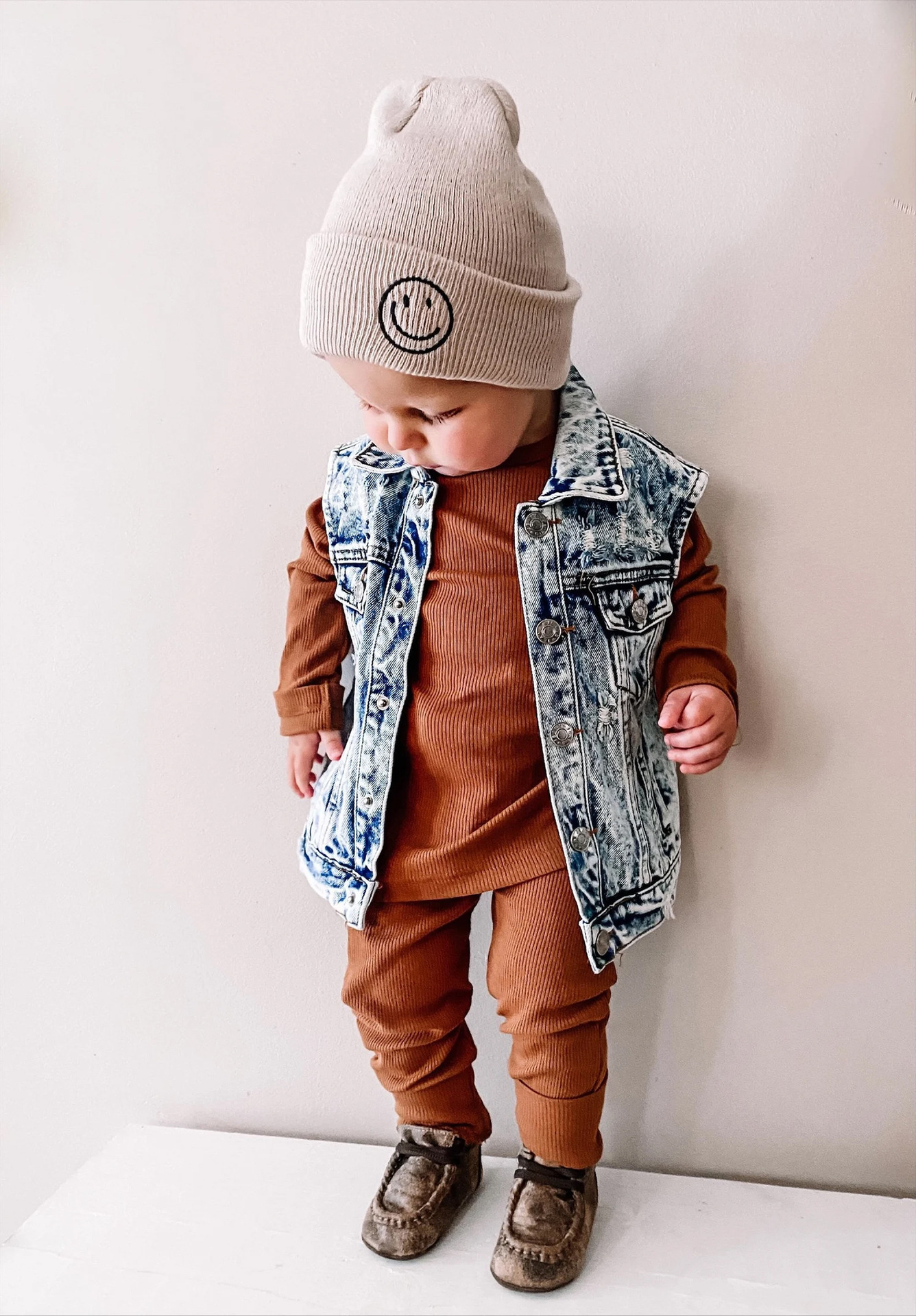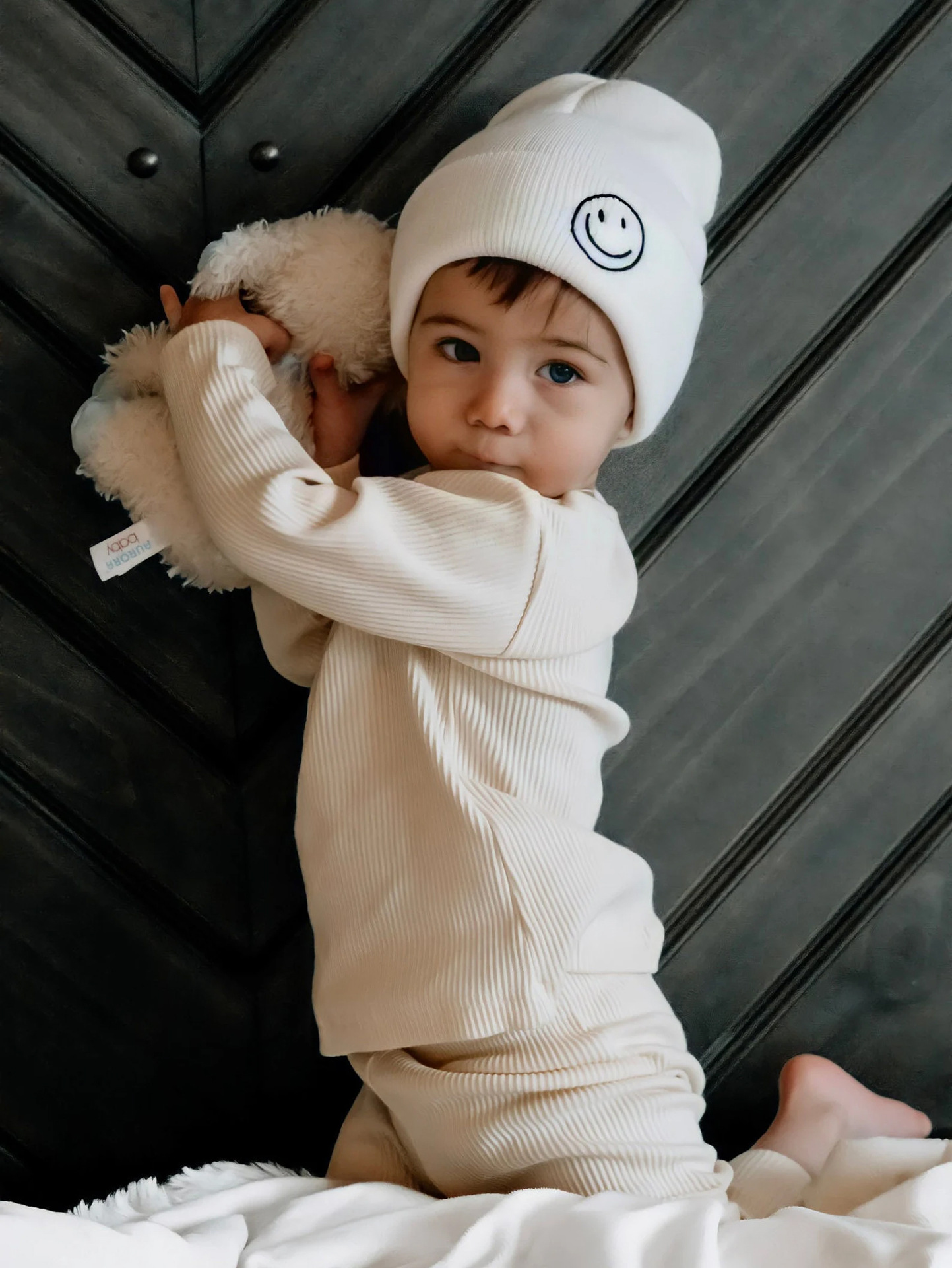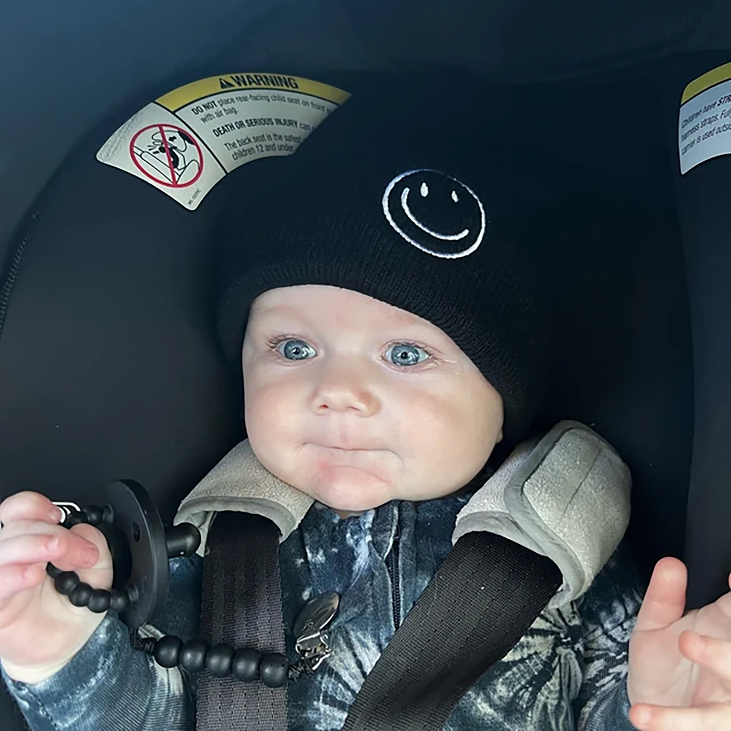 跨境热卖笑脸刺绣秋冬保暖护耳针织帽男女宝宝儿童圆顶毛线帽批发