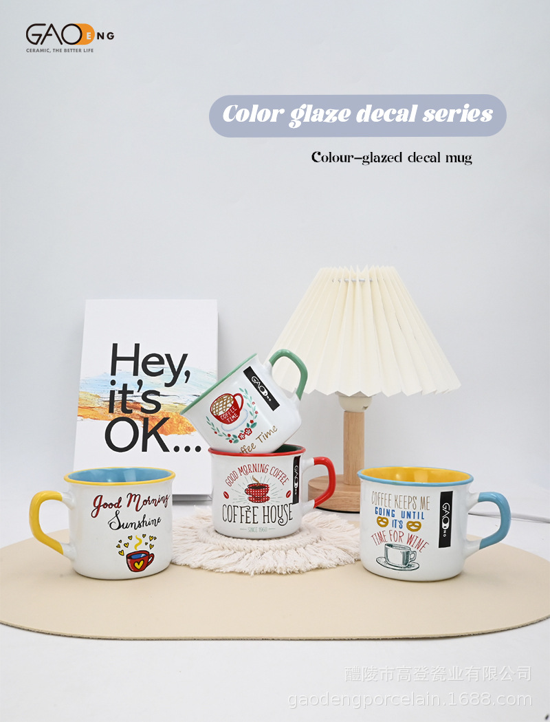 定制大容量字母系列陶瓷杯搪瓷杯简约创意礼品送父母长辈设计杯型