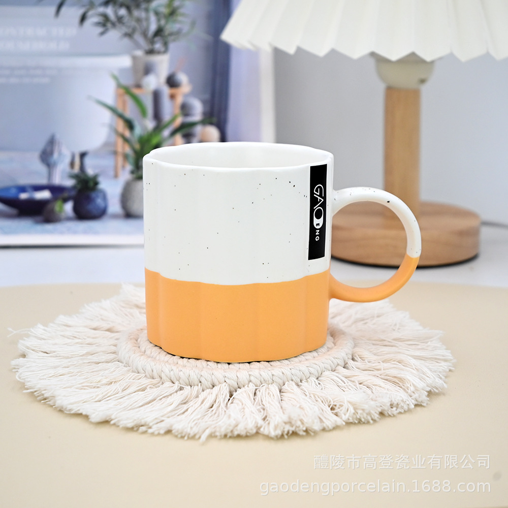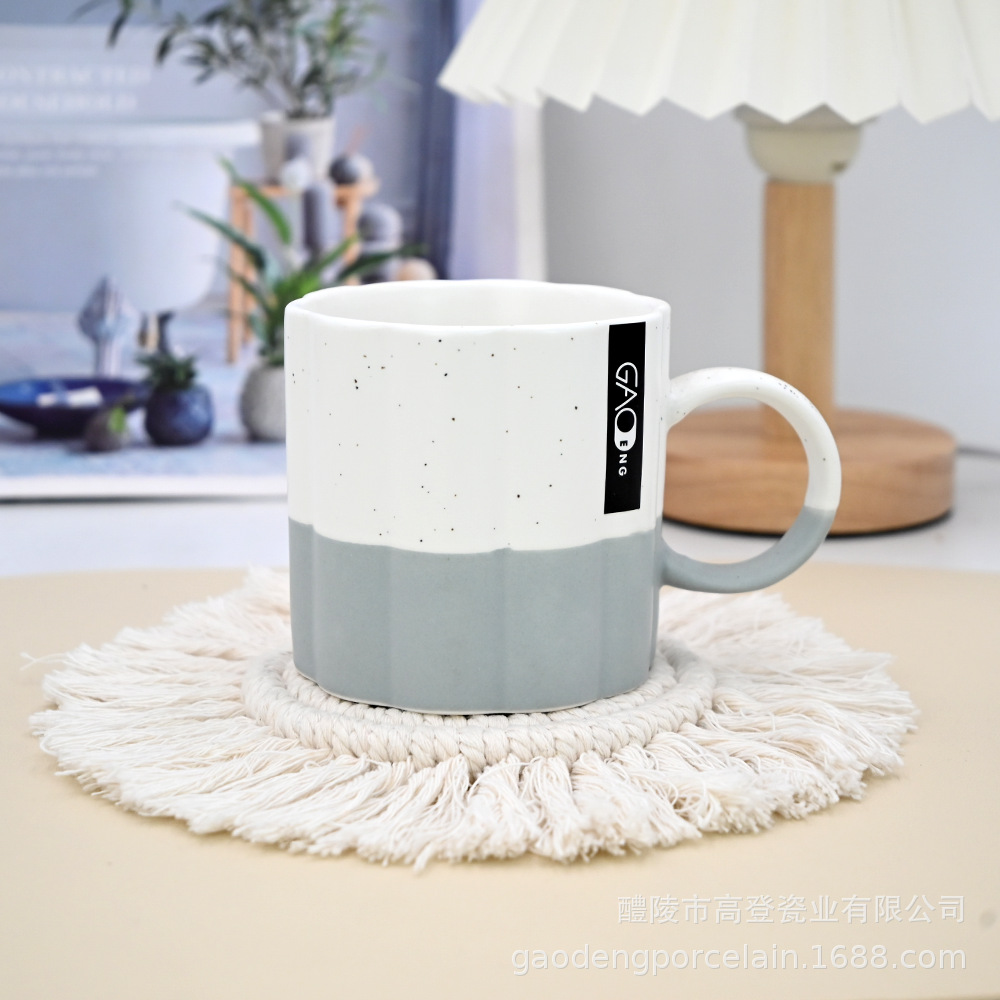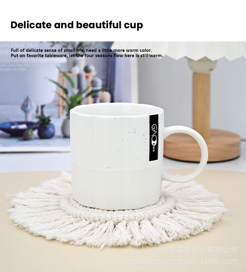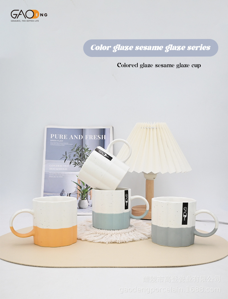 定制创意陶瓷马克杯浮雕牛奶咖啡杯小众ins家用办公带芝麻点彩色