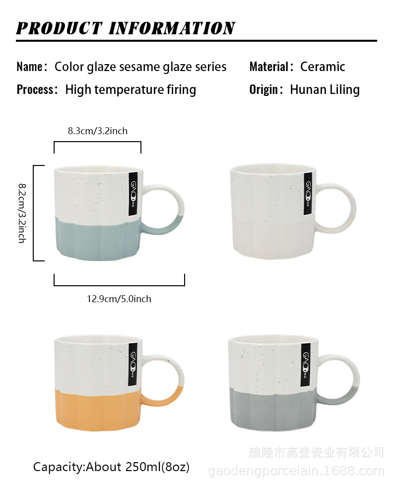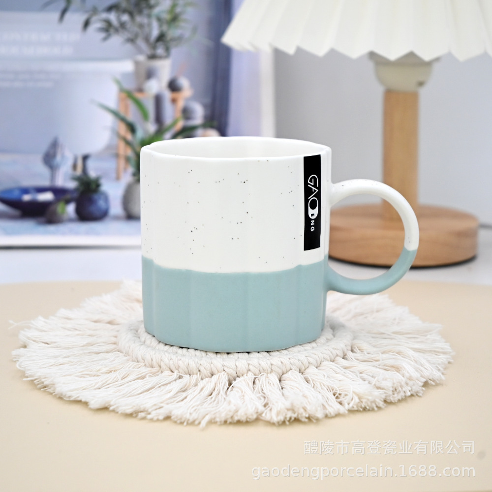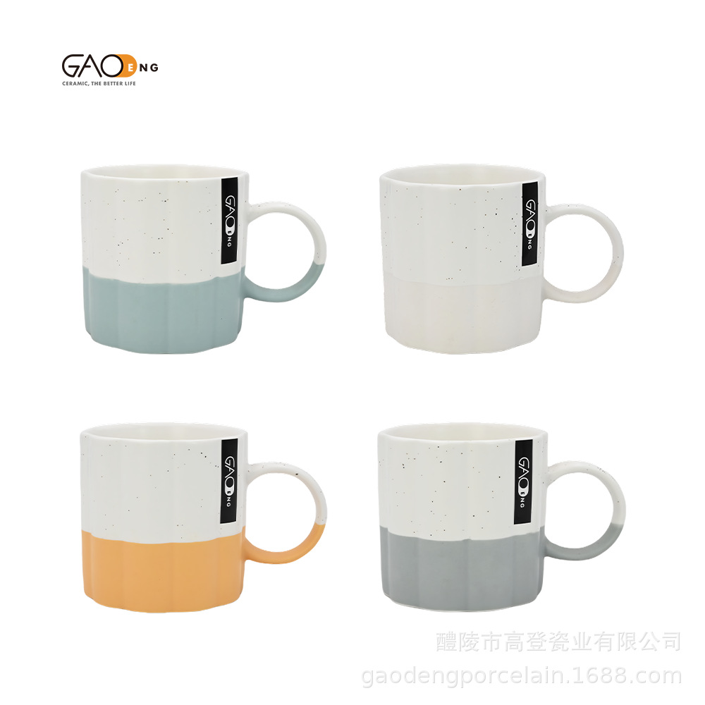定制创意陶瓷马克杯浮雕牛奶咖啡杯小众ins家用办公带芝麻点彩色