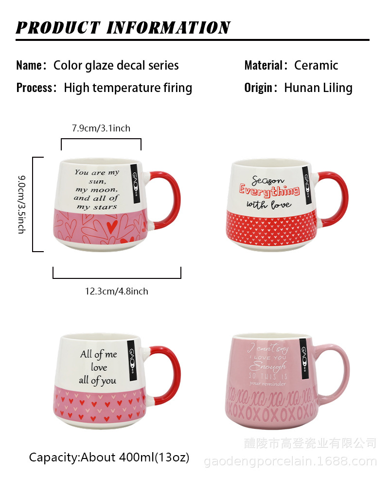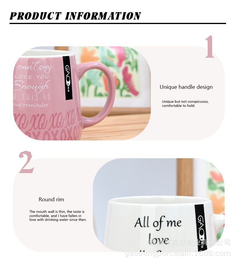 定制大容量情侣杯新骨瓷马克杯简约浪漫风格情人节送礼礼物可logo