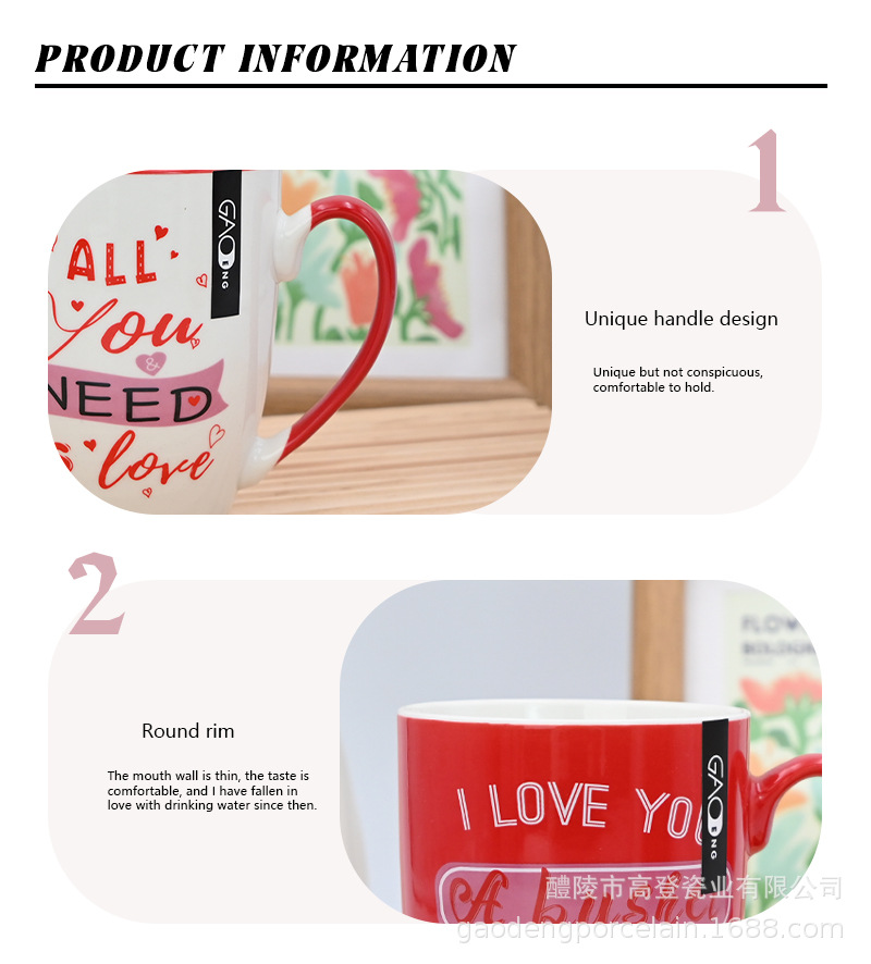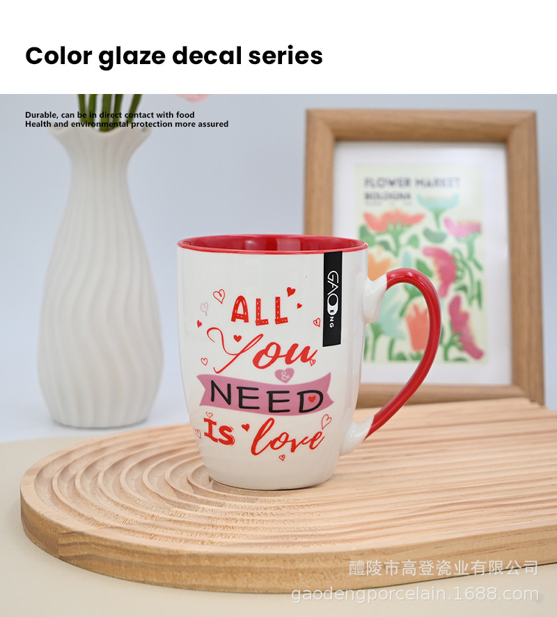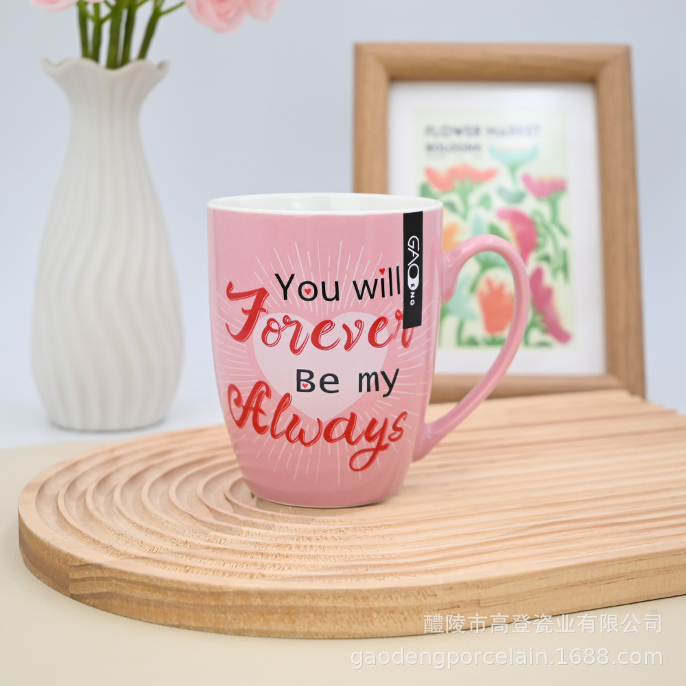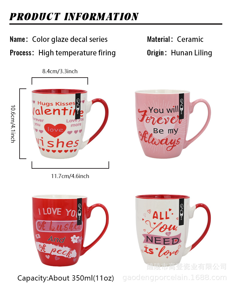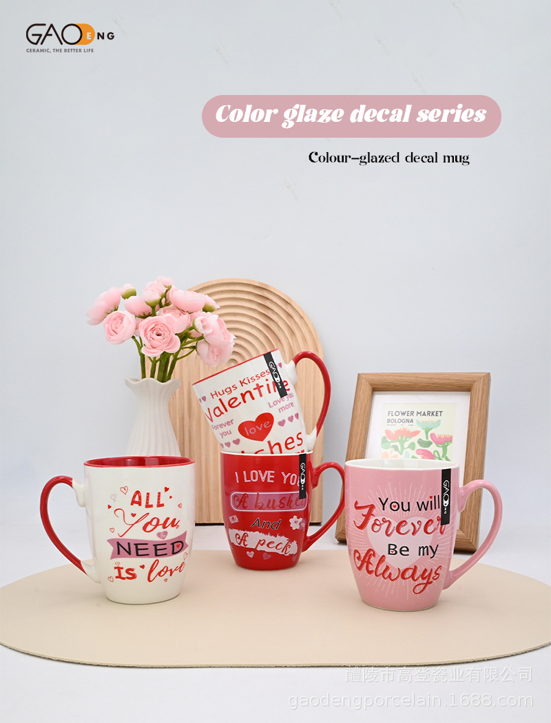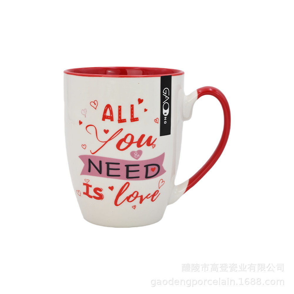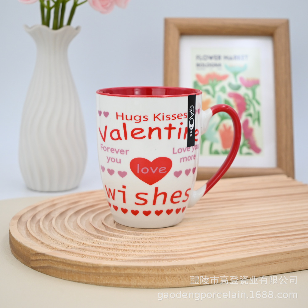 定制11oz情人节鼓型杯陶瓷杯英文字母情侣礼物纪念日爆款厂家直销