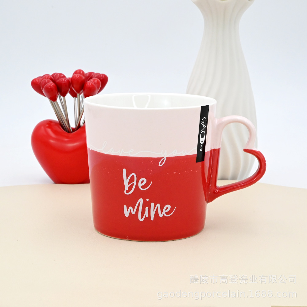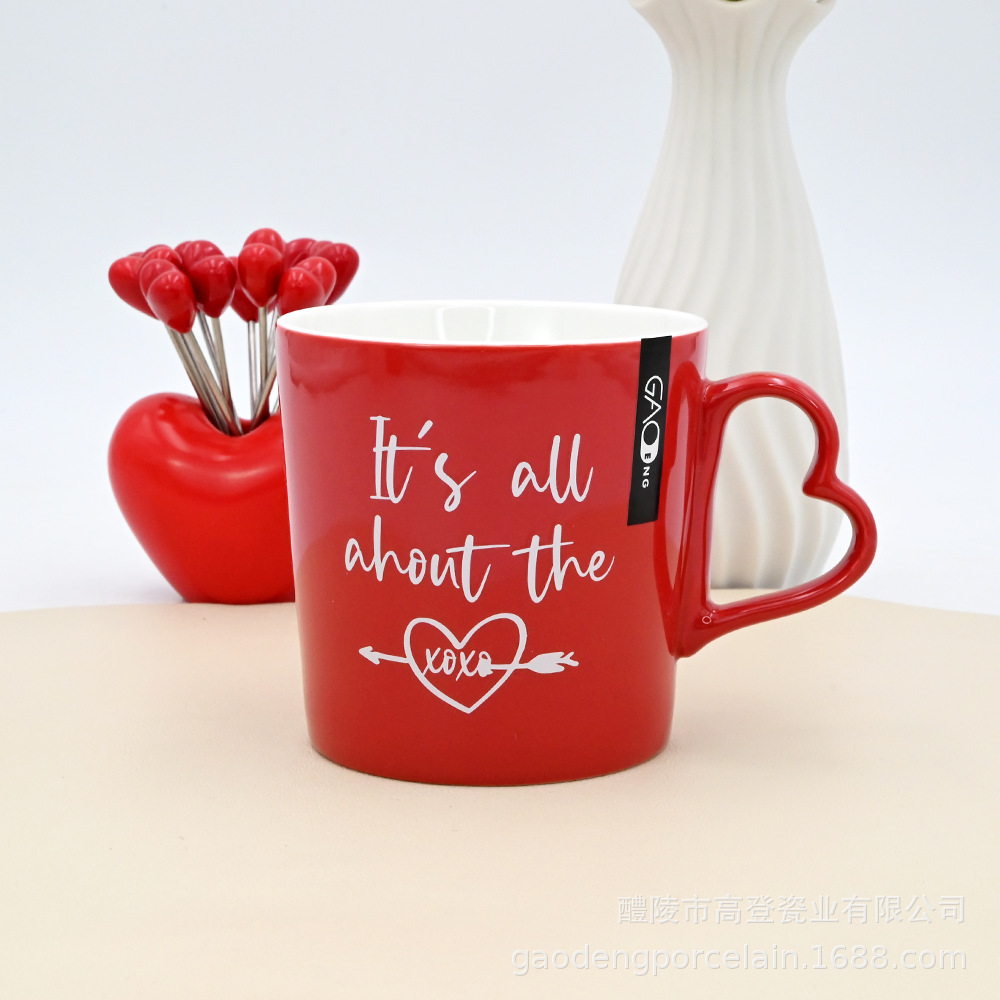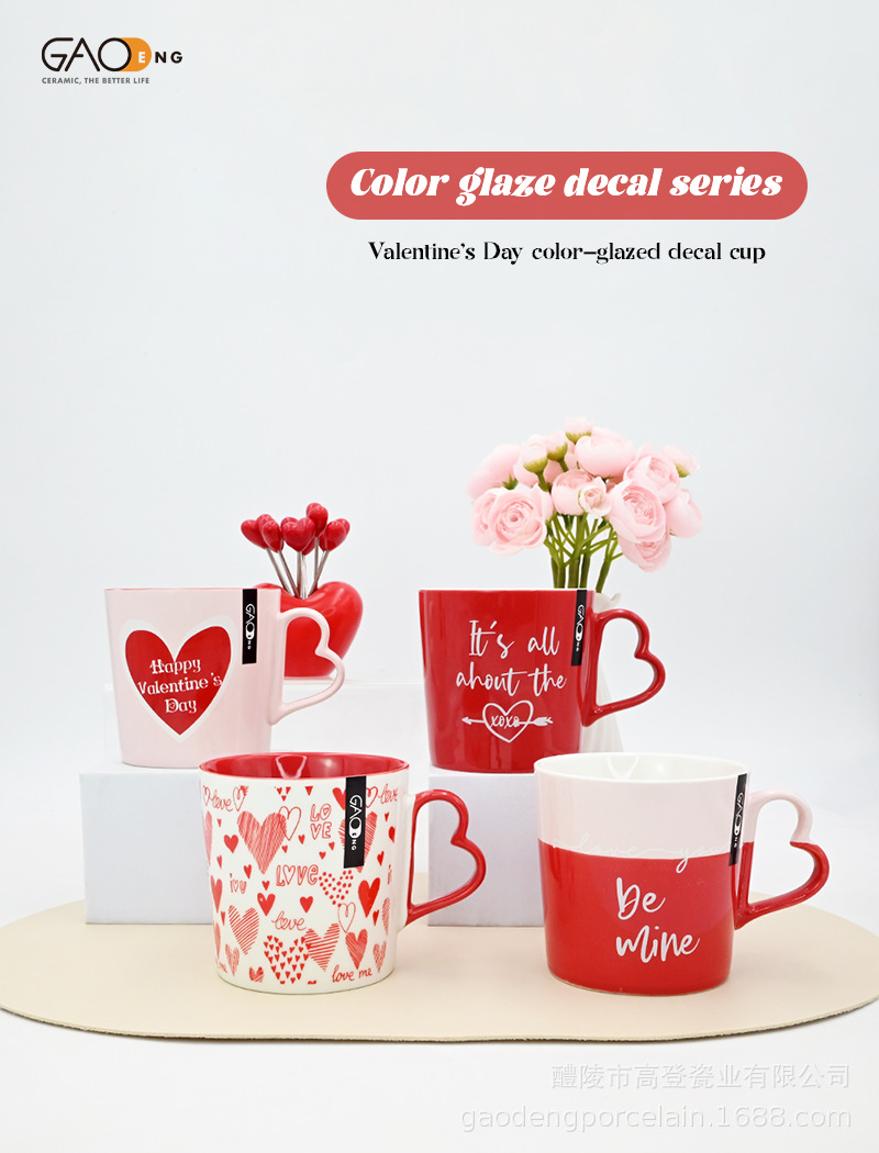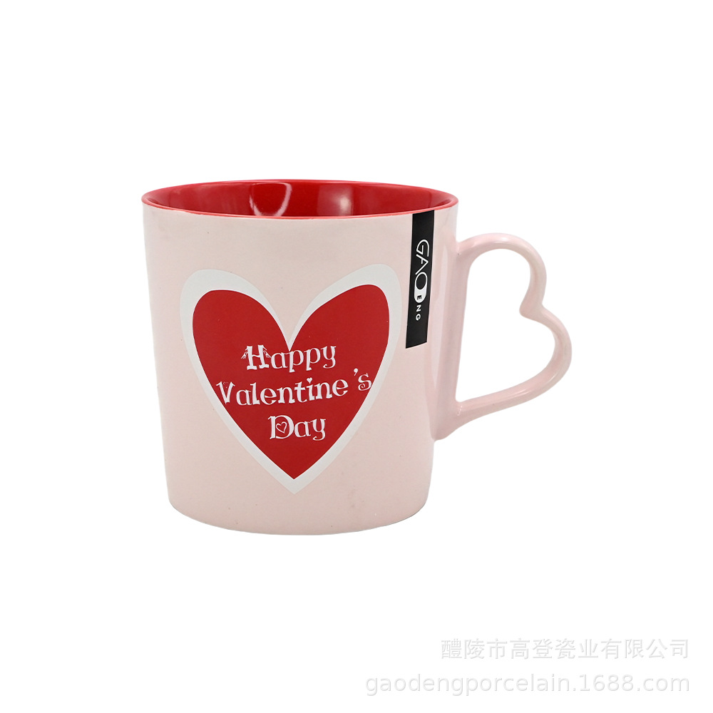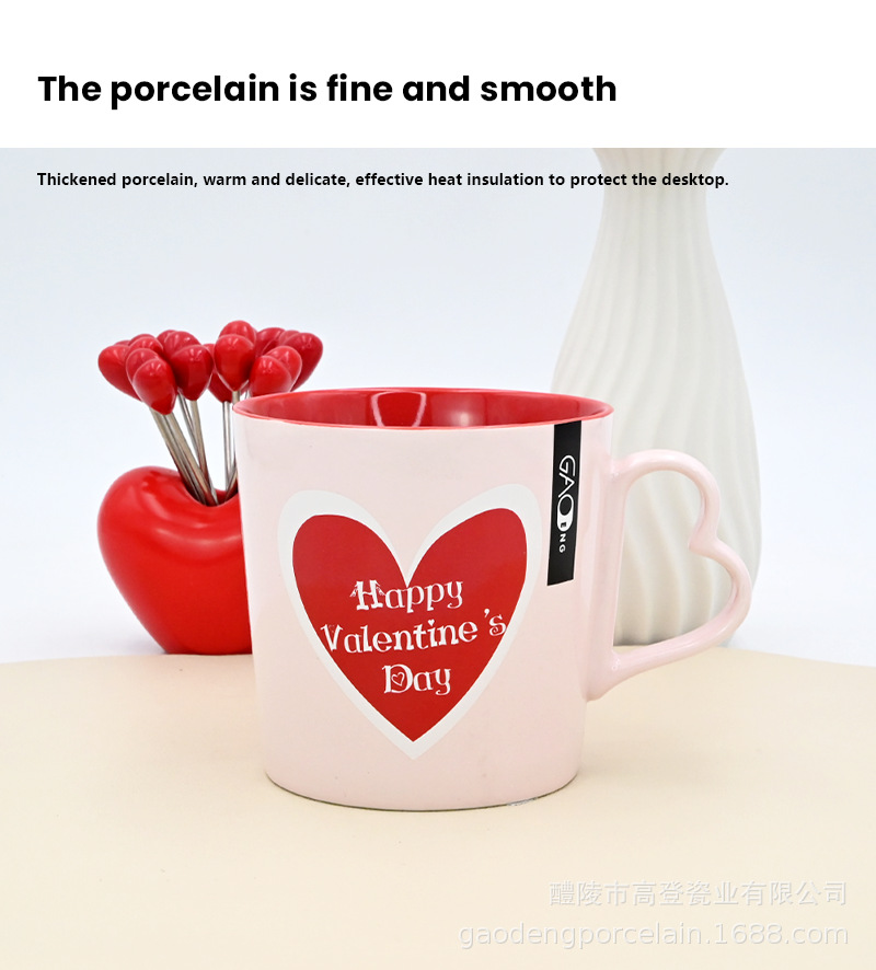 定制情人节陶瓷杯创意爱心型把手情侣杯家用喝水可定制LOGO