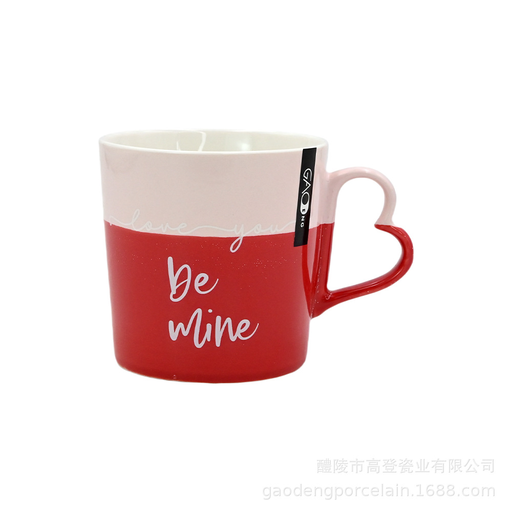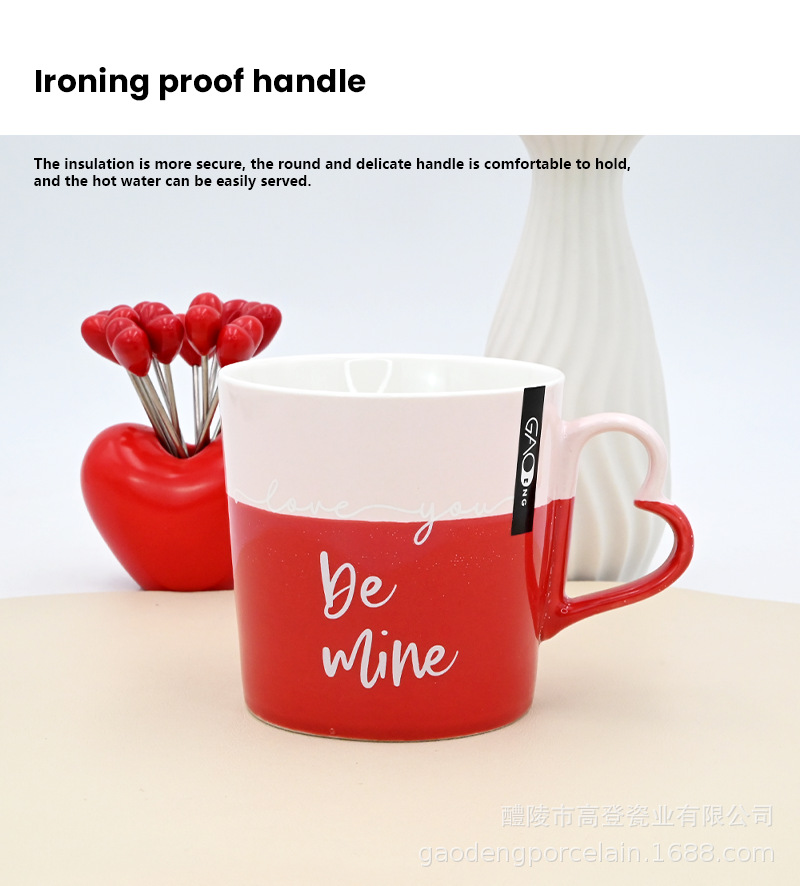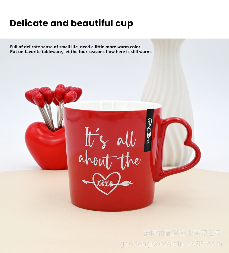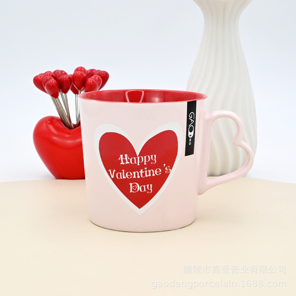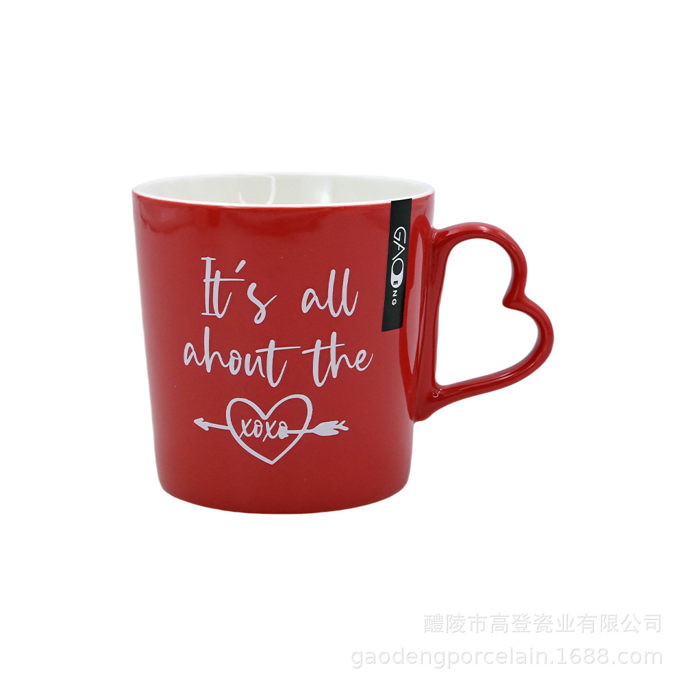 定制情人节陶瓷杯创意爱心型把手情侣杯家用喝水可定制LOGO
