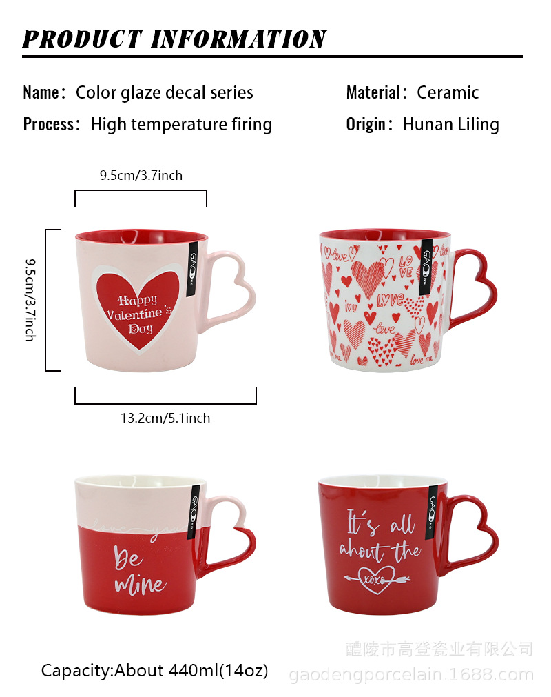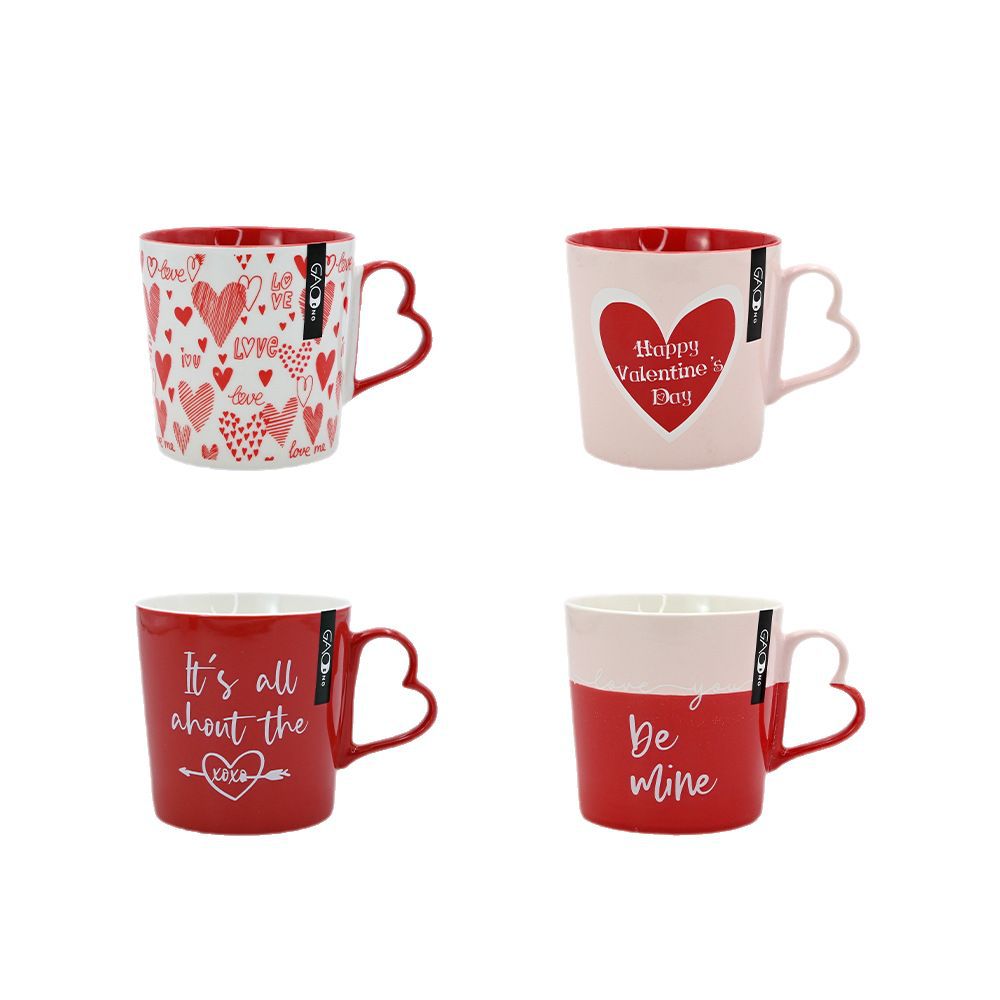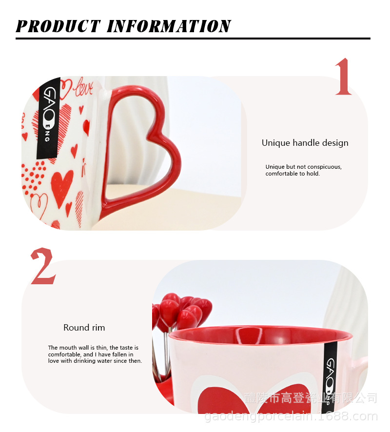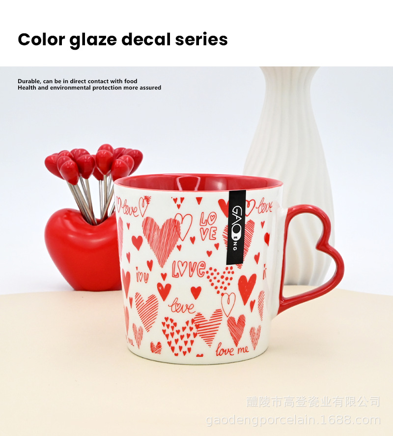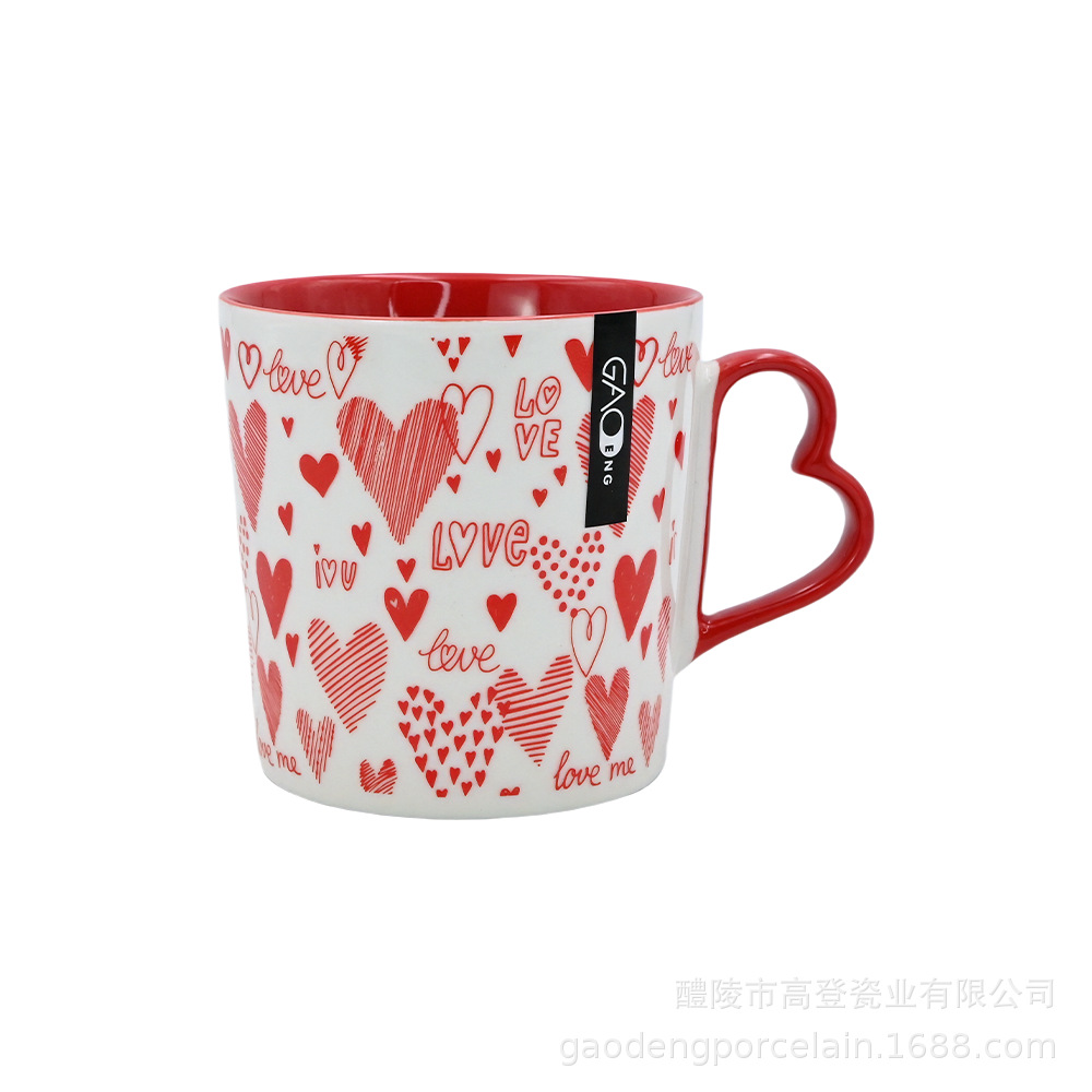 定制情人节陶瓷杯创意爱心型把手情侣杯家用喝水可定制LOGO
