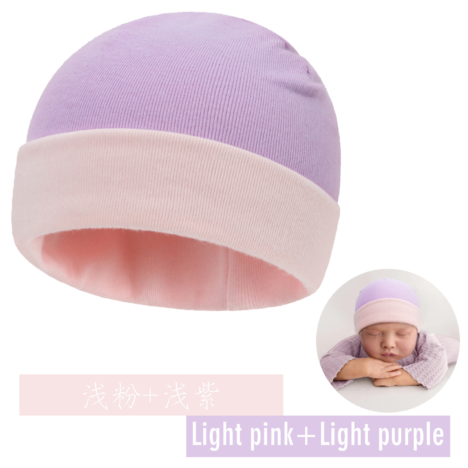 拼色套头筒帽 春秋冬新款双尺码28色磨毛帽新生婴儿宝宝护头胎帽