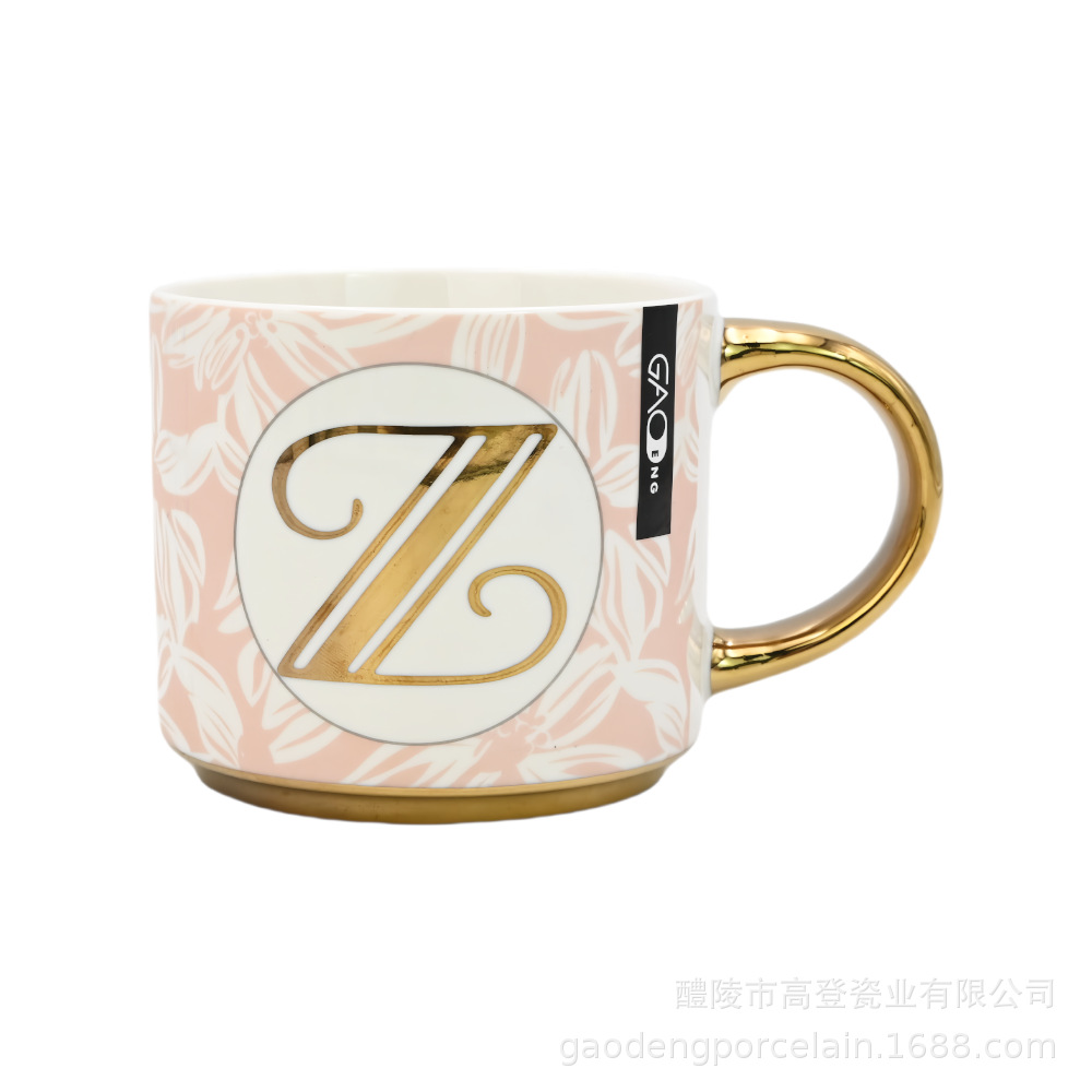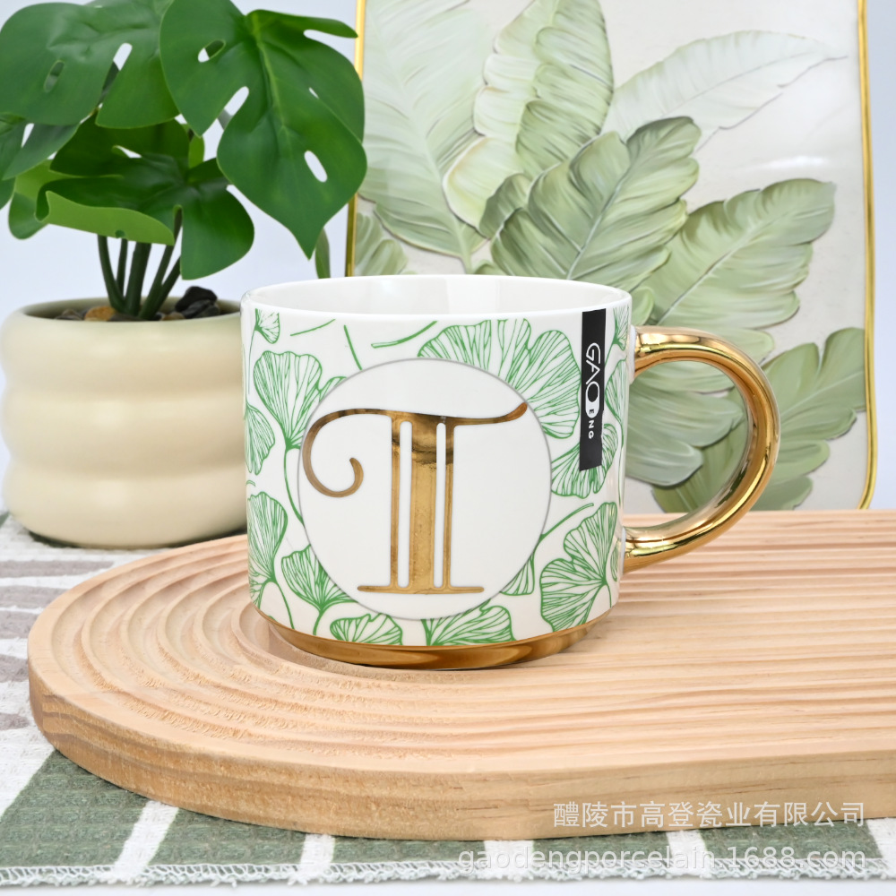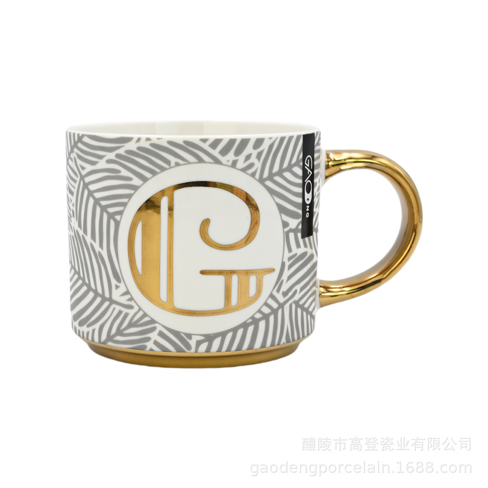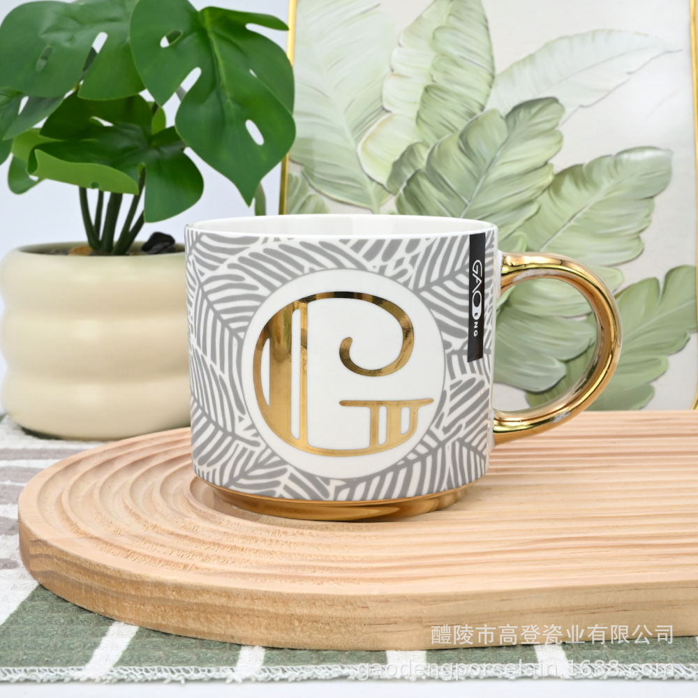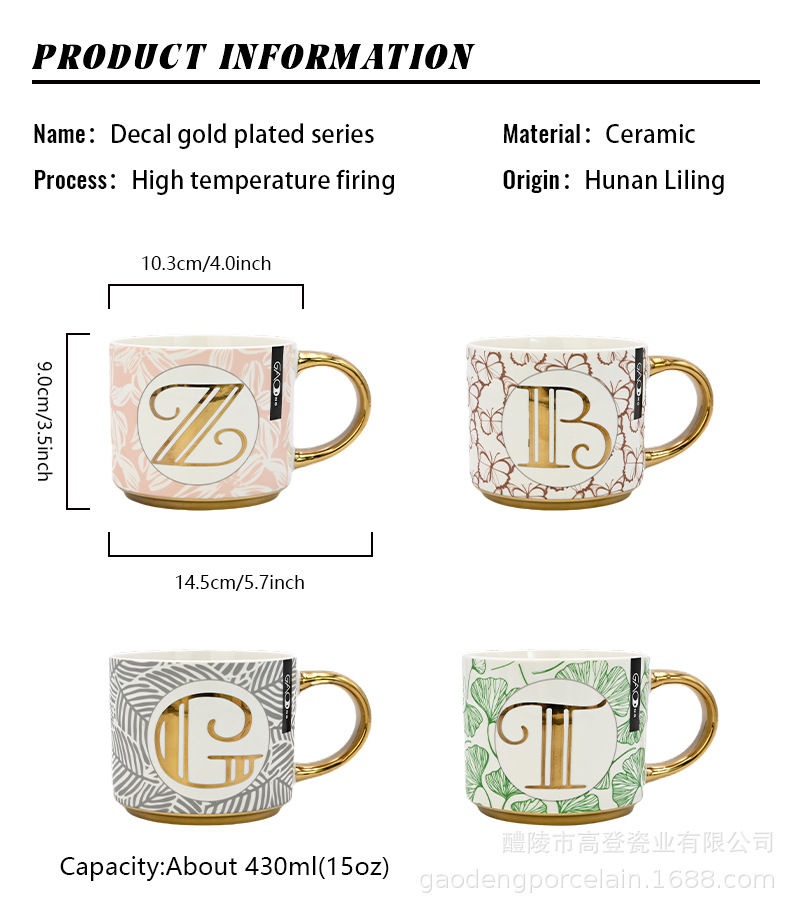 定制15oz亮光时尚字母杯叠叠杯简约大气独特创意镀金杯把杯底