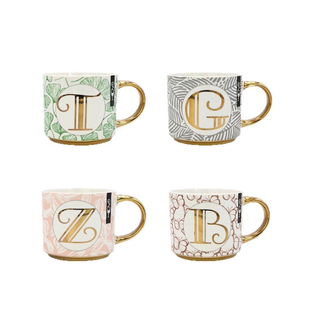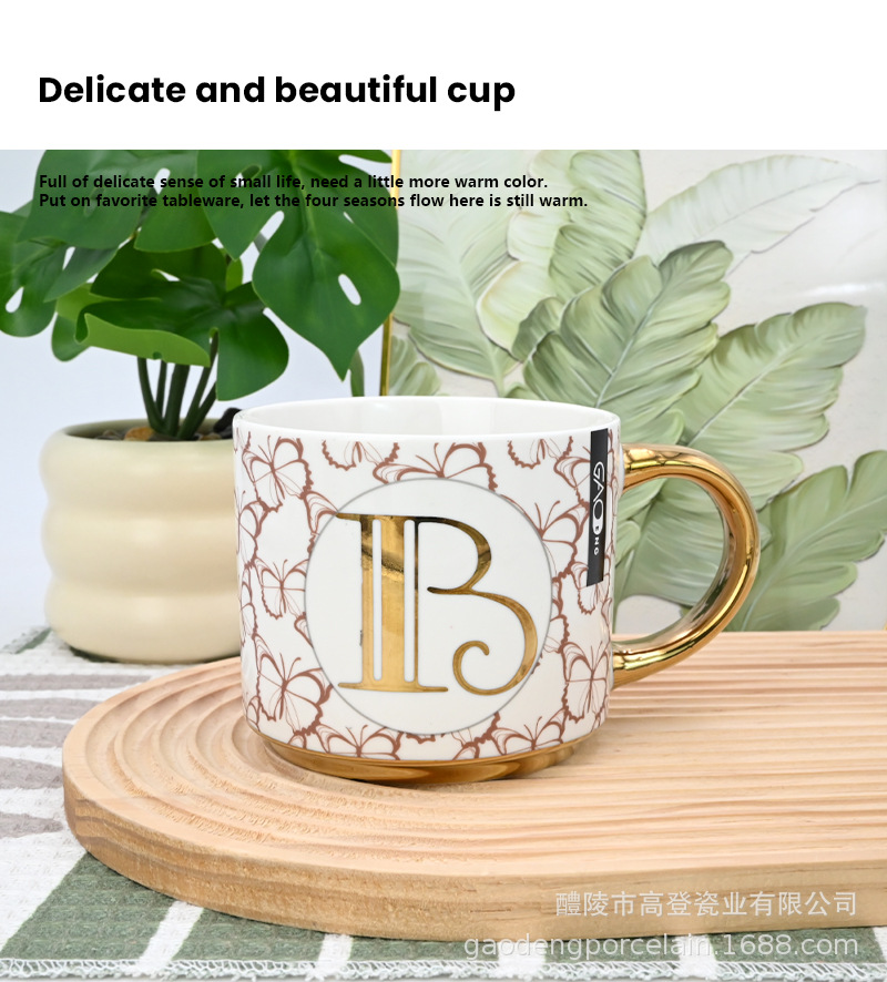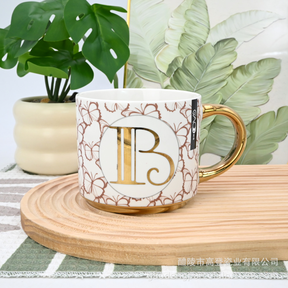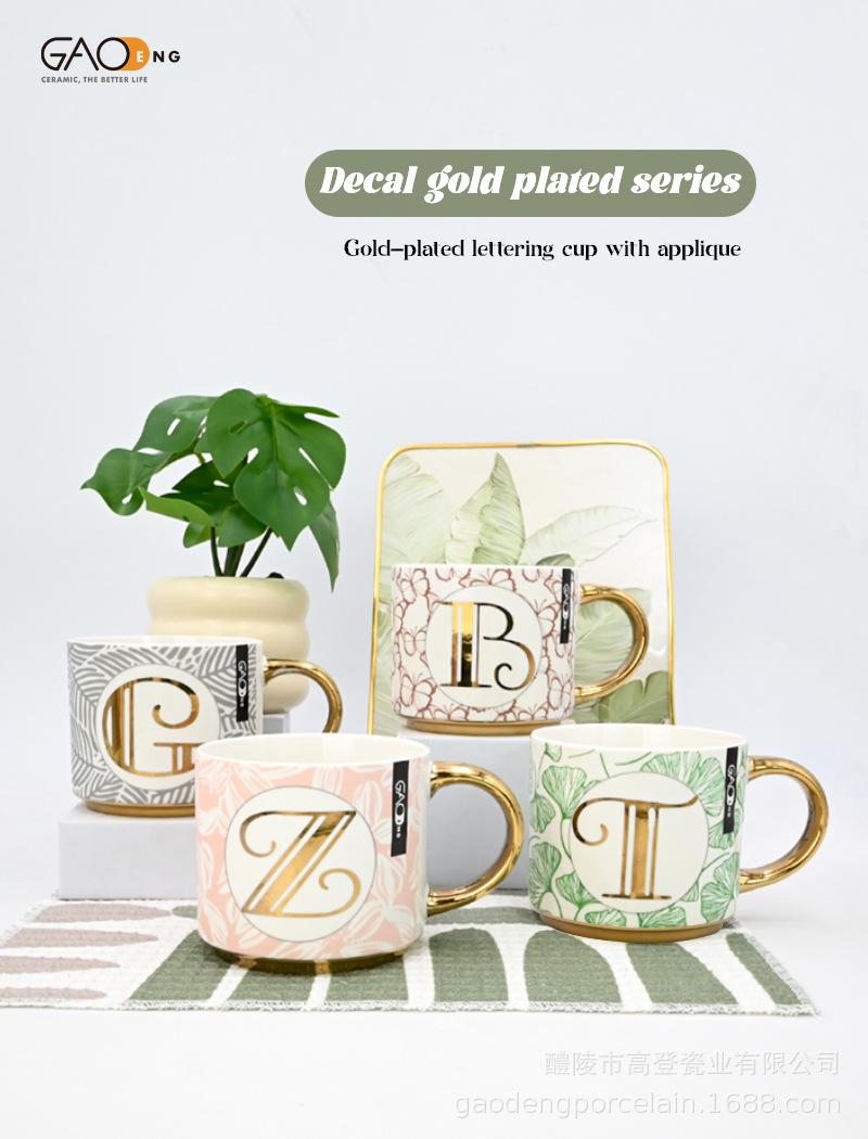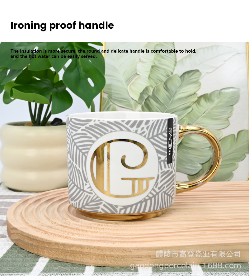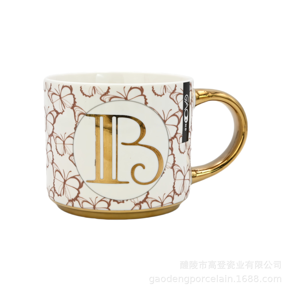 定制15oz亮光时尚字母杯叠叠杯简约大气独特创意镀金杯把杯底