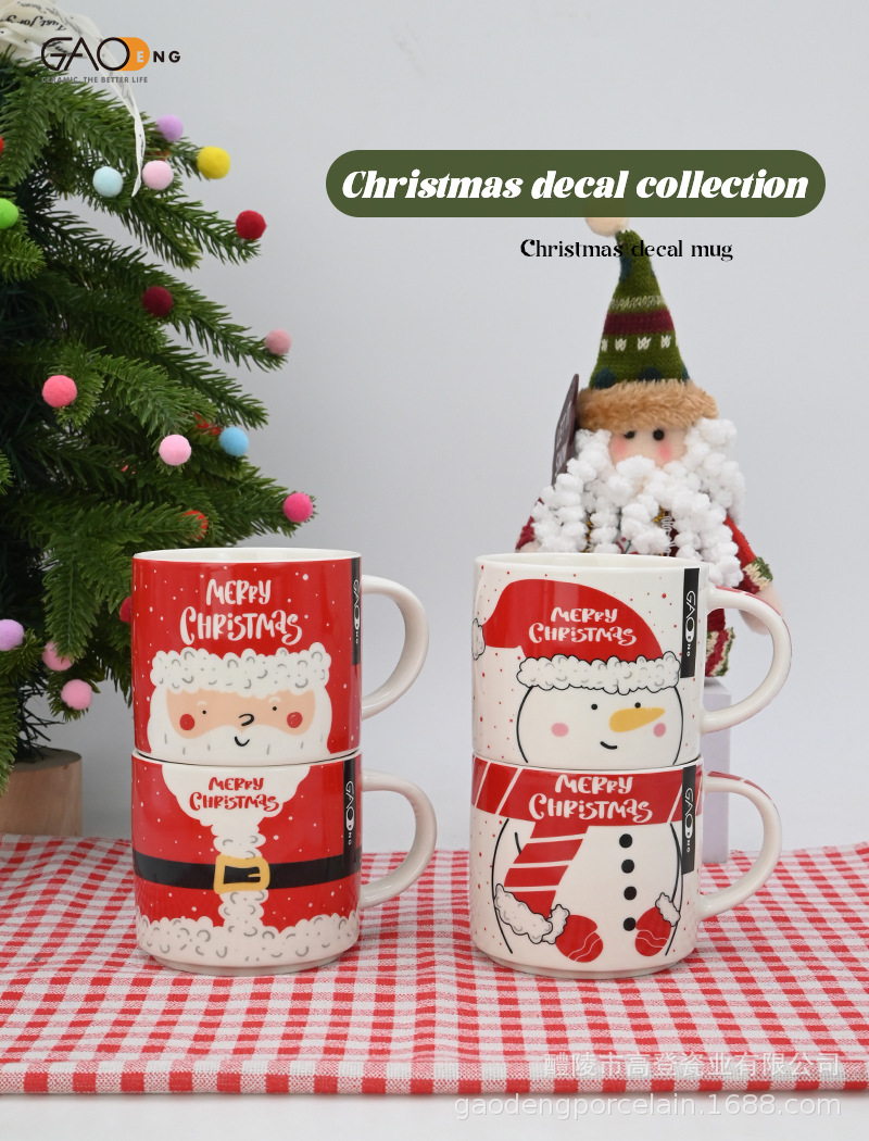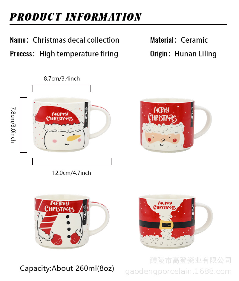 定制8oz圣诞系列叠叠杯圣诞老人雪人贴花可爱潮流厂家直销