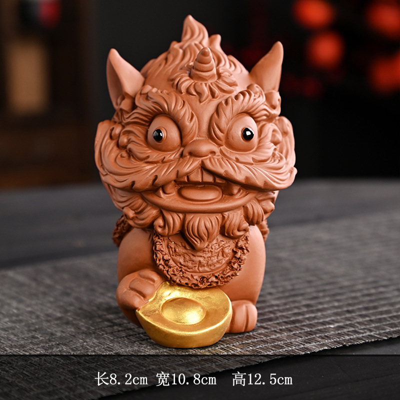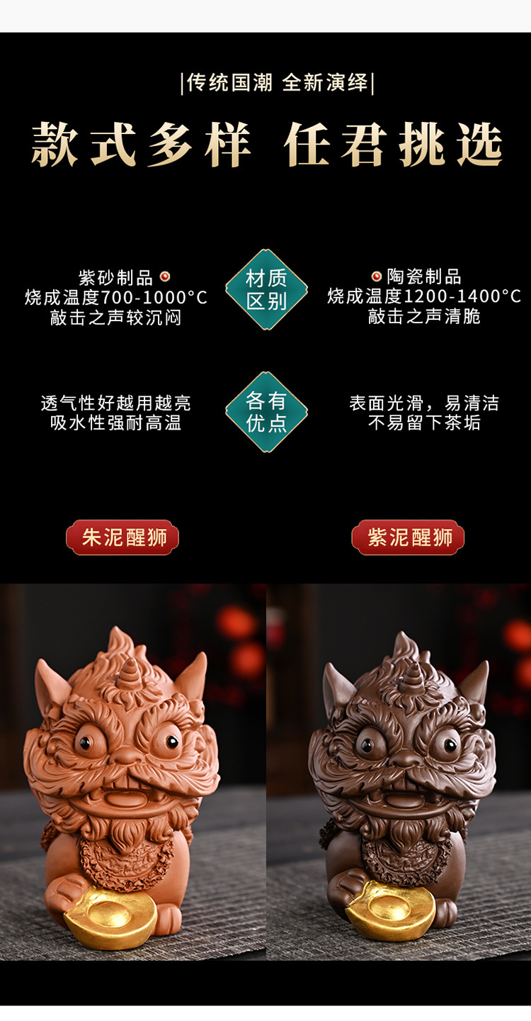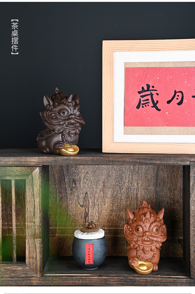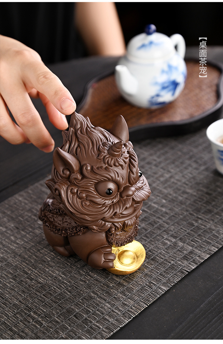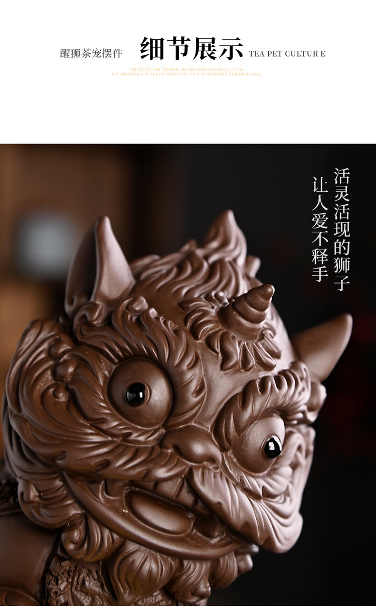 紫砂茶宠摆件可养精品茶具配件茶玩可爱醒狮吉祥物茶台桌面小摆件