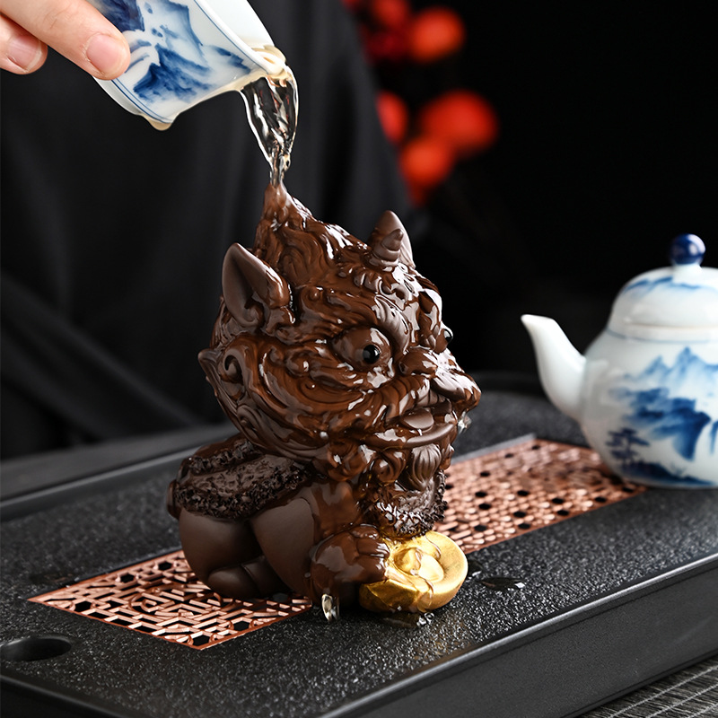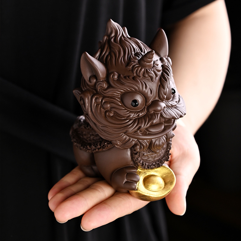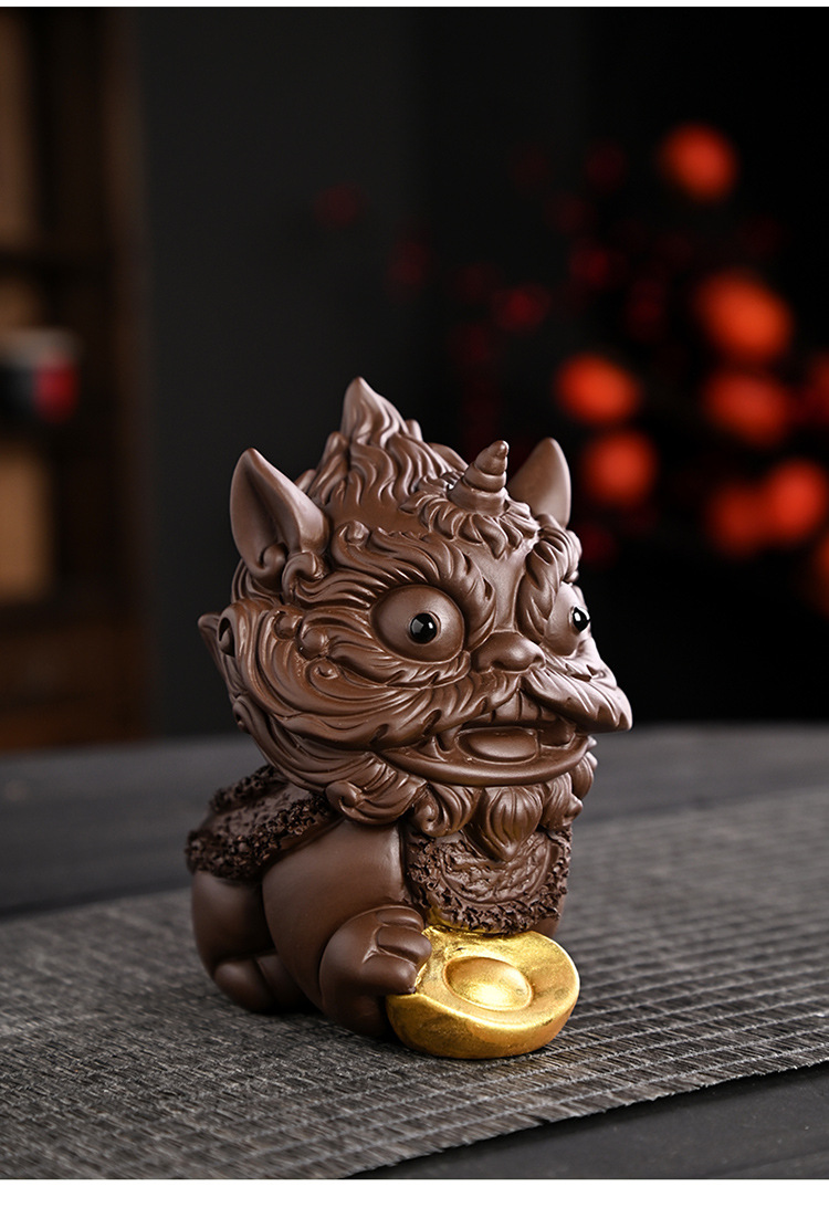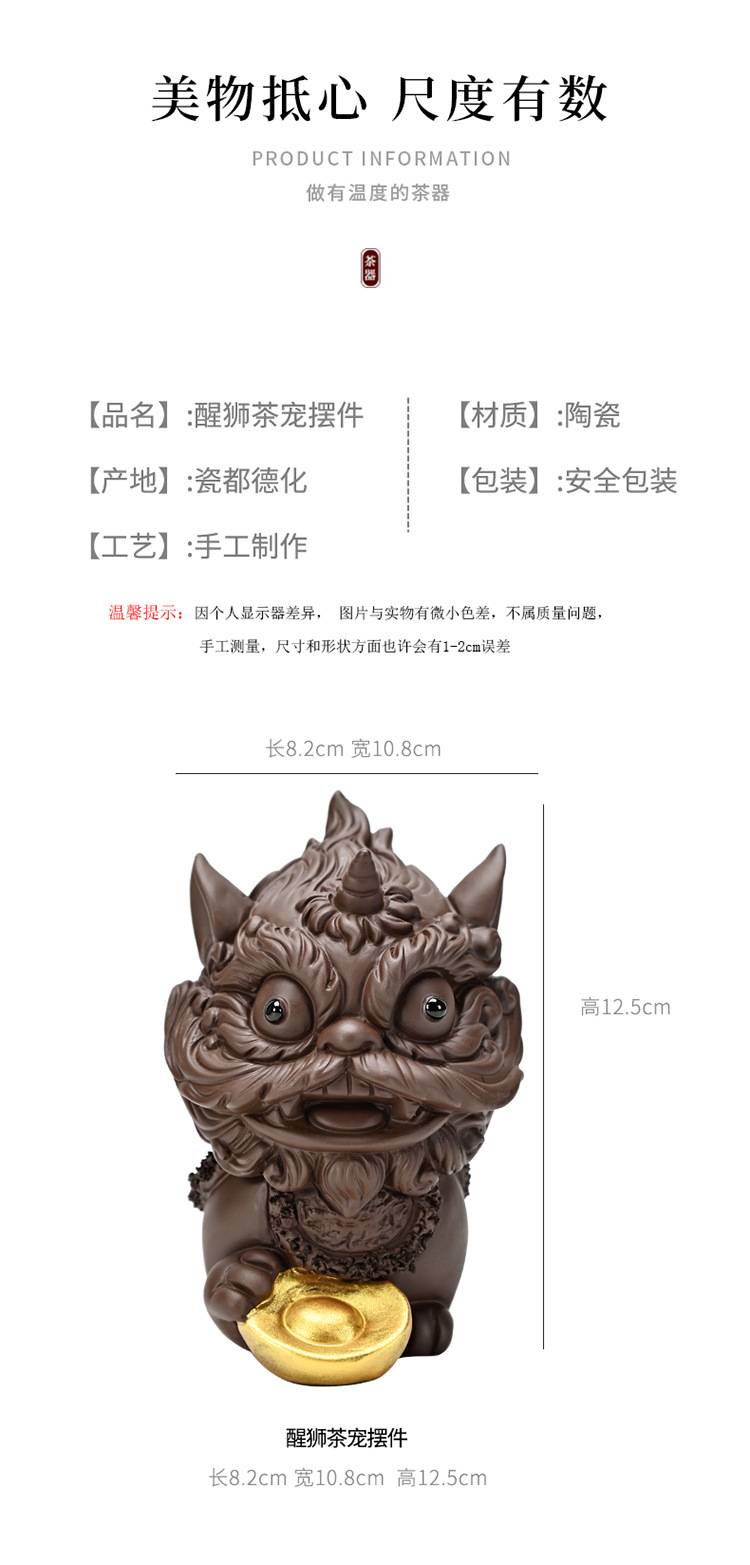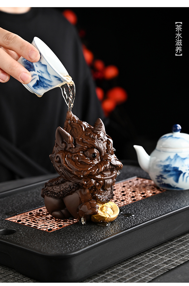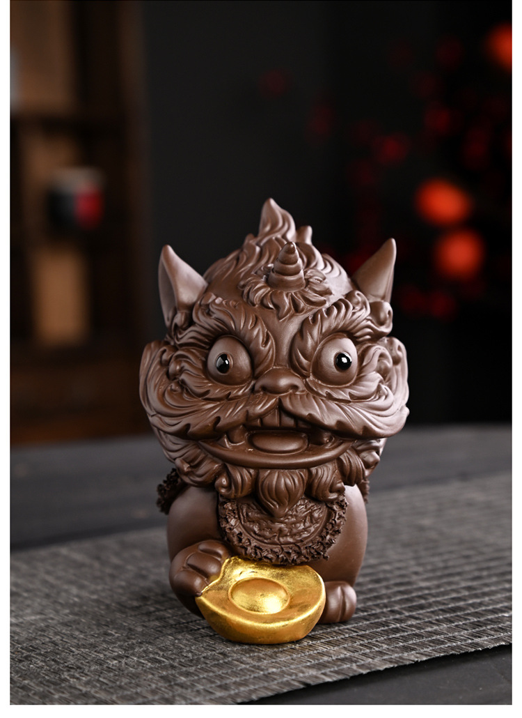 紫砂茶宠摆件可养精品茶具配件茶玩可爱醒狮吉祥物茶台桌面小摆件