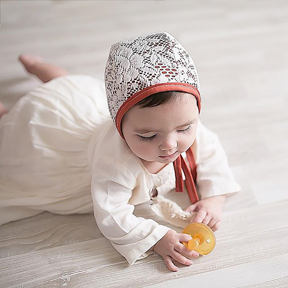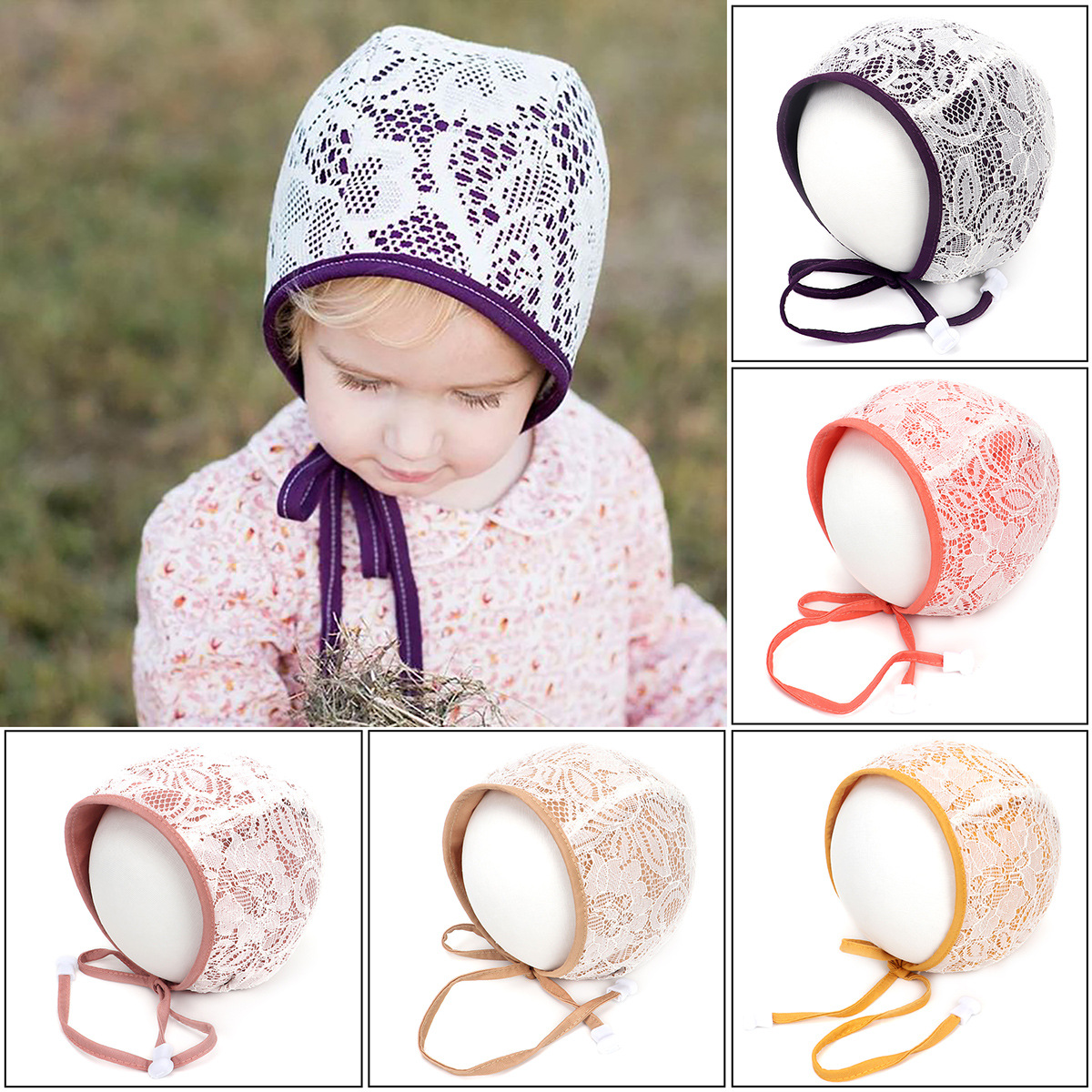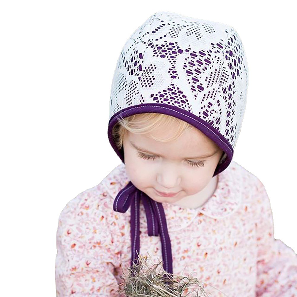ins创意新 欧美蕾丝宫廷帽韩版儿童帽子秋冬款纯棉护耳公主套头帽