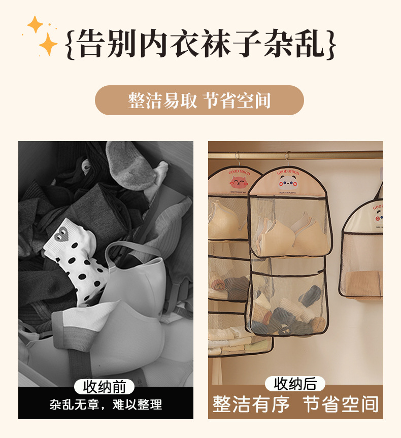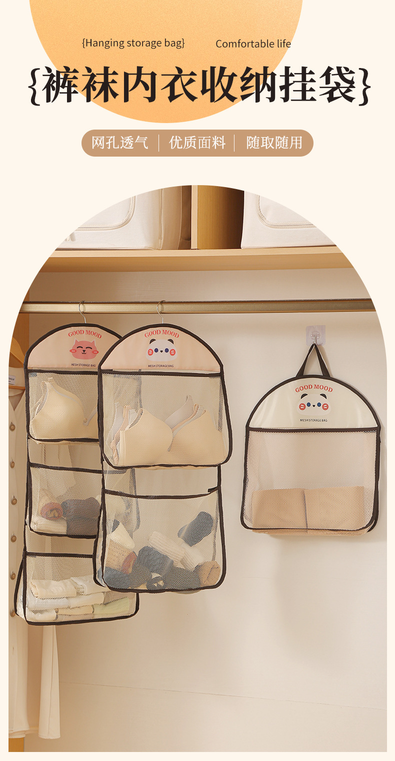内衣内裤收纳挂袋衣柜悬挂式多层杂物收纳网兜门后袜子收纳置物袋