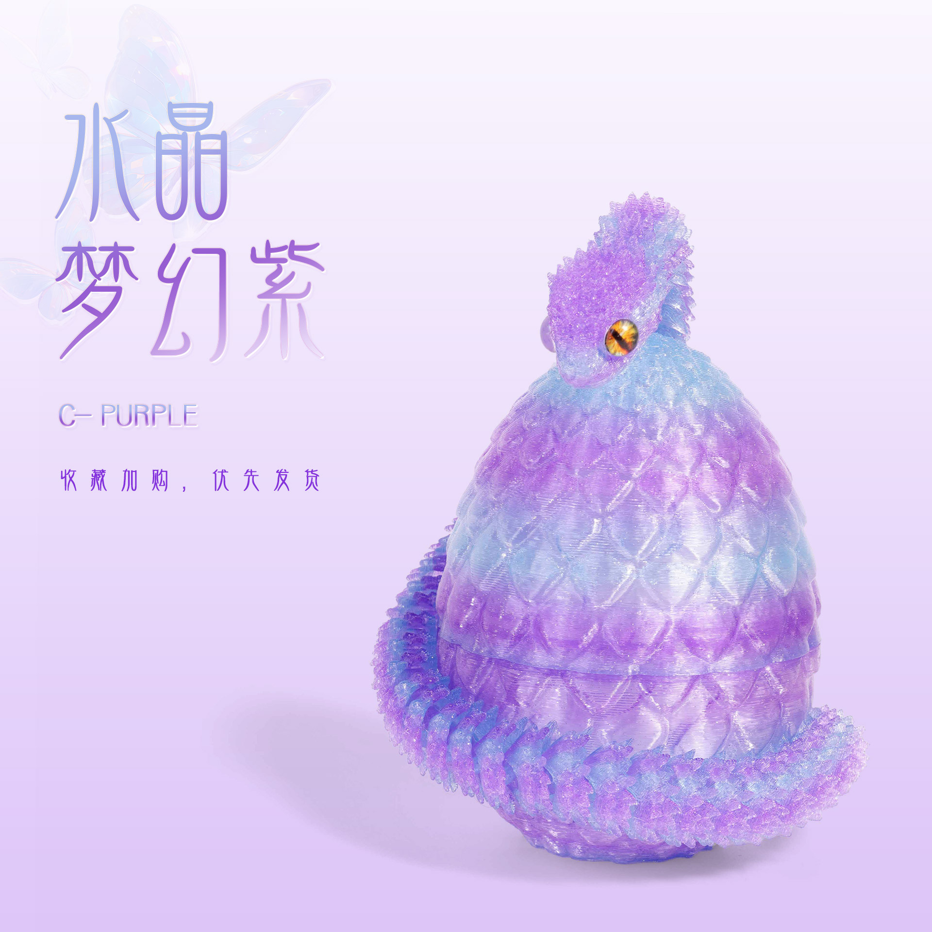 3d打印蝰蛇龙蛋全身关节可动立体仿真蛇动物水晶模型摆件带蛇蛋爆
