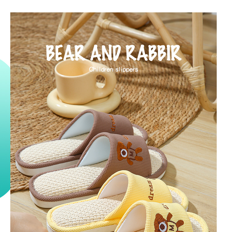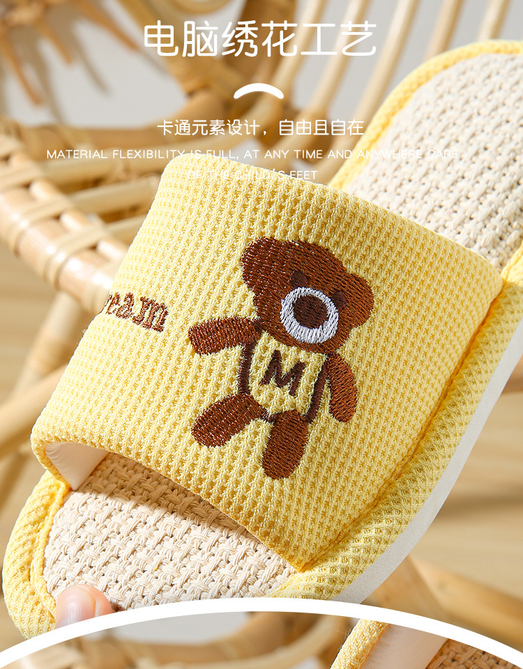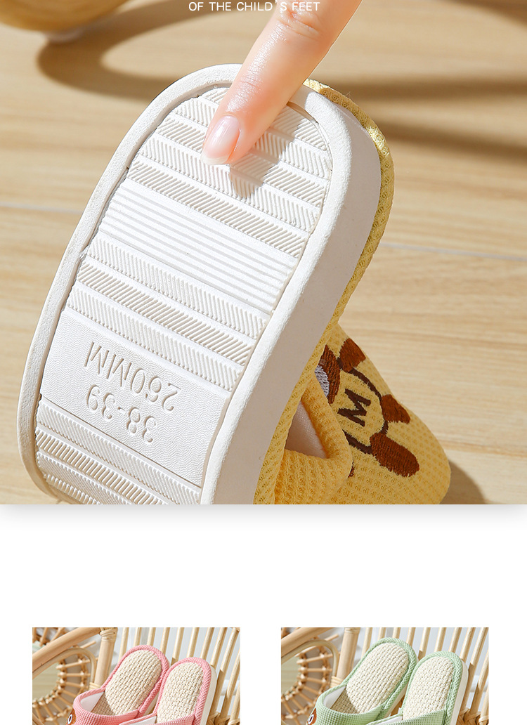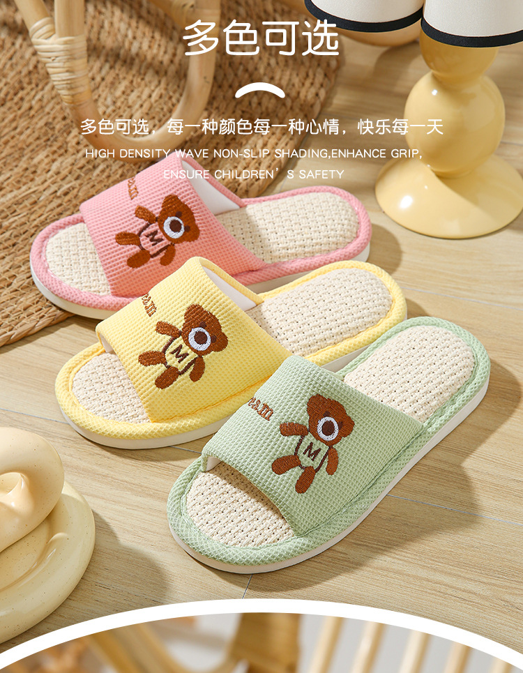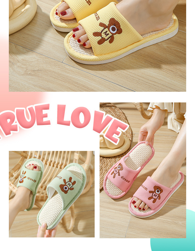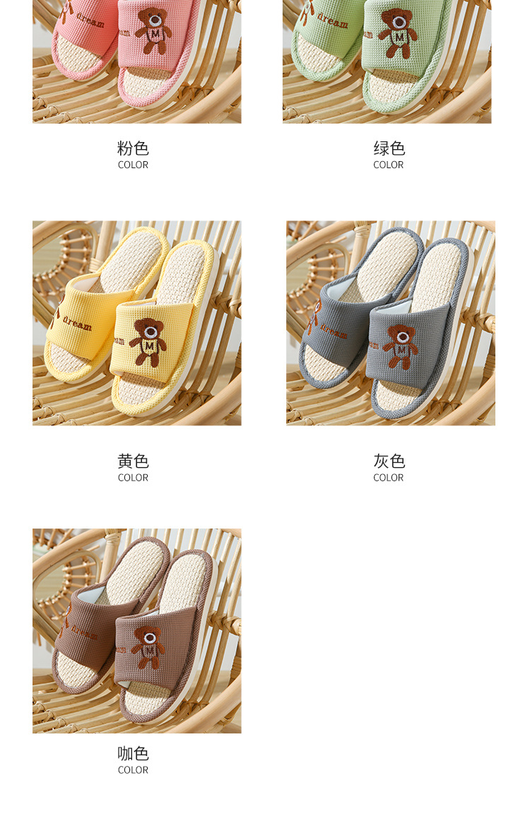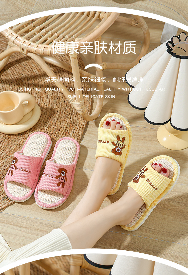 春夏季可爱开口亚麻拖鞋室内情侣家用透气防滑男吸汗棉麻拖鞋女