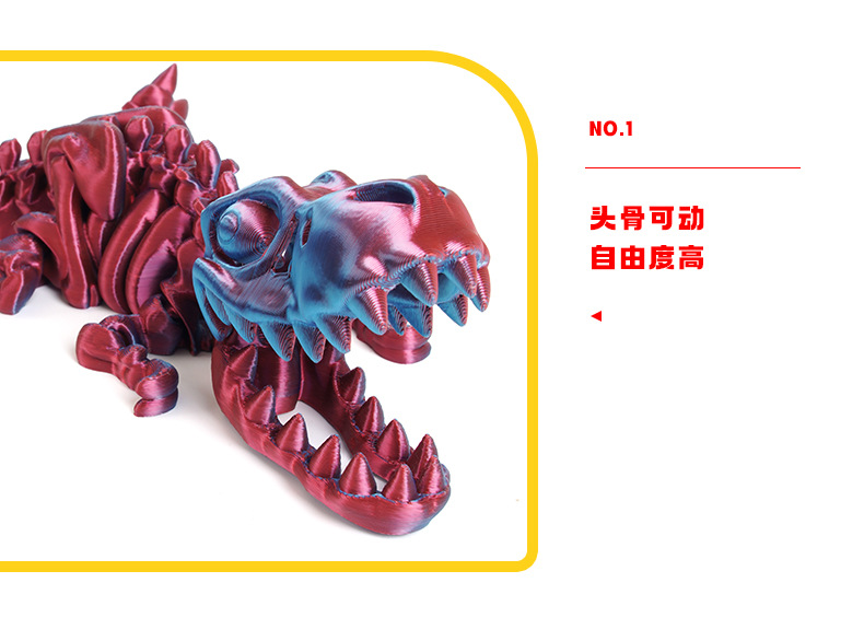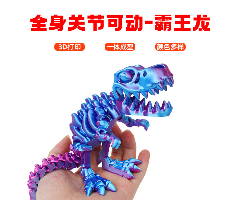 3d打印跨境暴龙霸王龙恐龙骨架3D打印龙变形摆件手办礼物工艺玩具