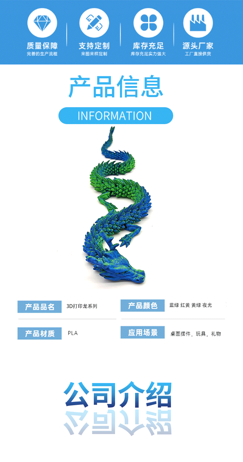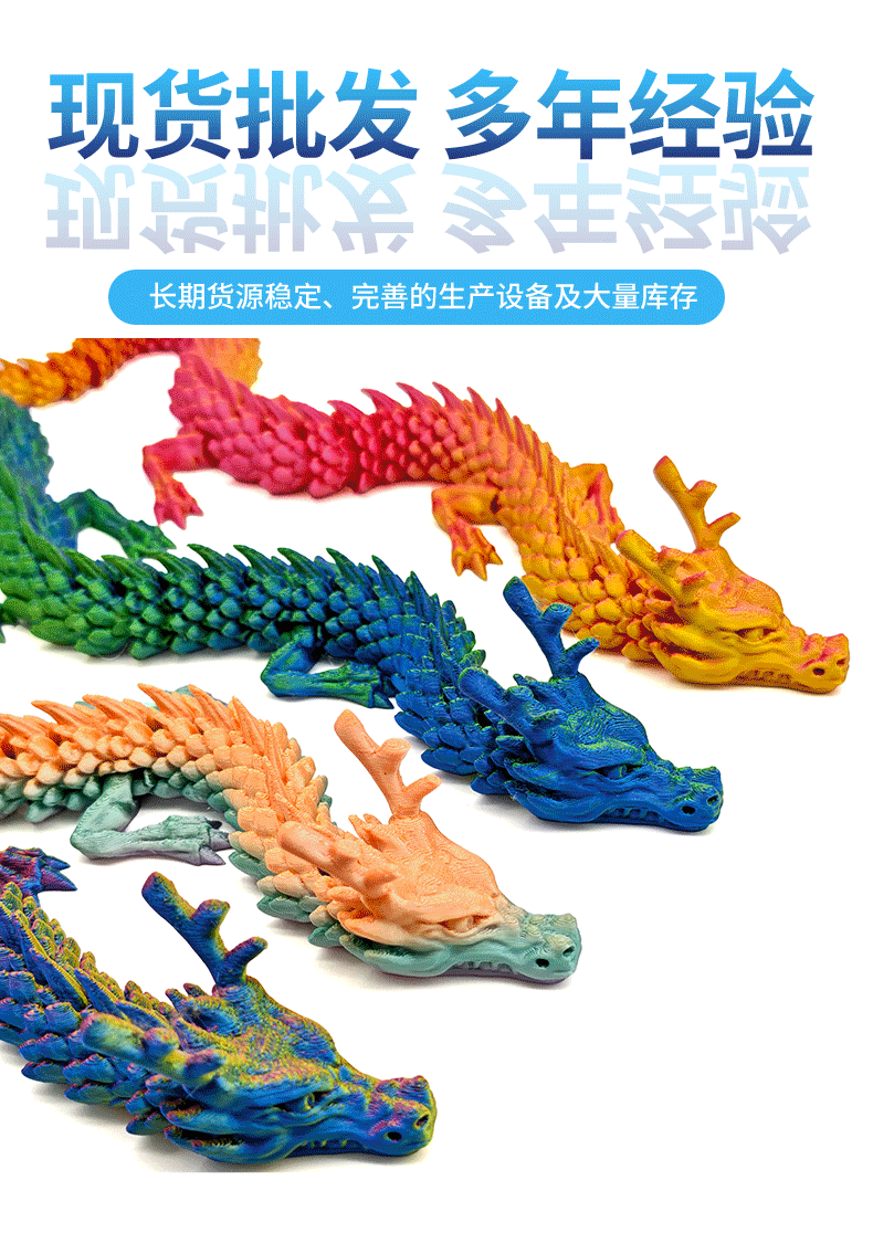 3D打印的玩具龙摆件跨境爆款中国龙水晶龙工艺品手办礼物关节飞龙