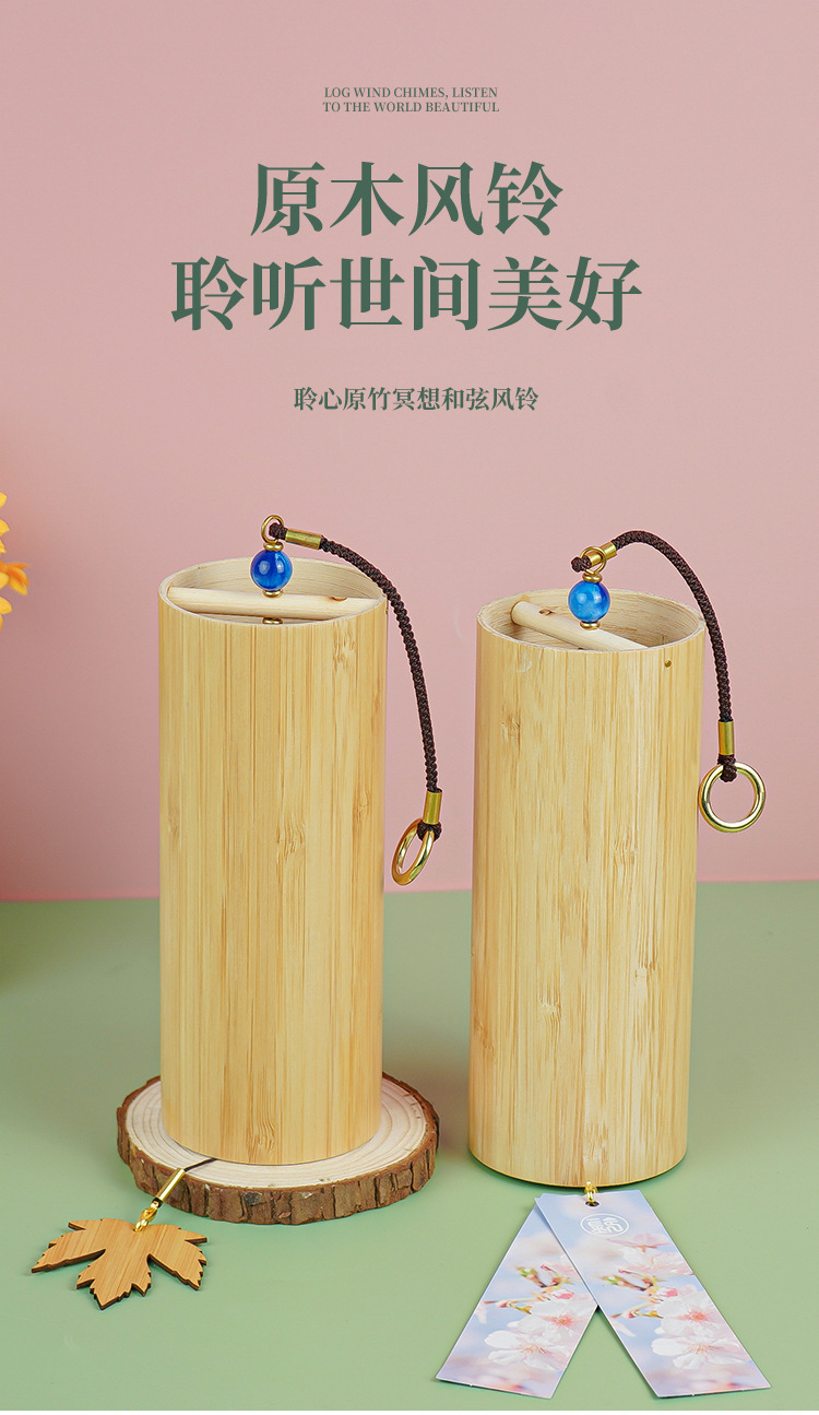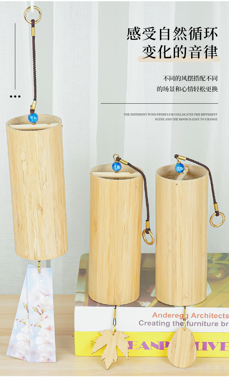 源头工厂户外室内日本竹手摇风铃 简约原木风铃挂饰和弦竹风铃