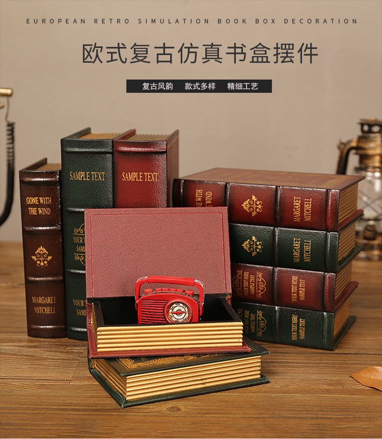 欧式复古假书摆件书房书架样板房软装摆设创意影视摄影道具假书盒