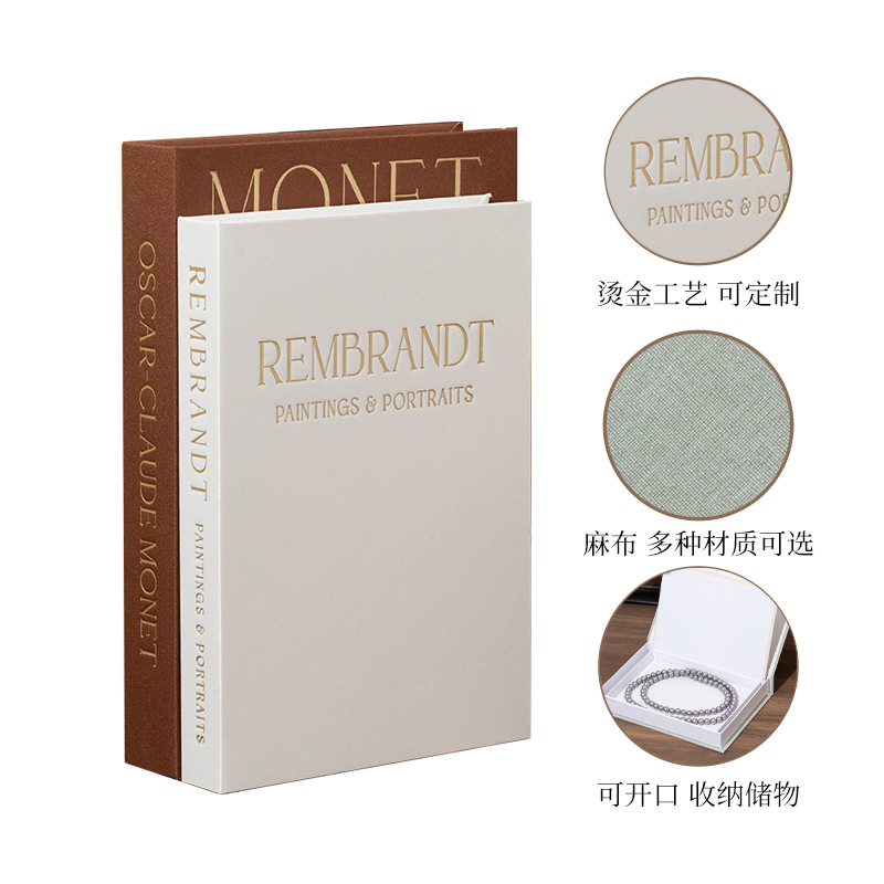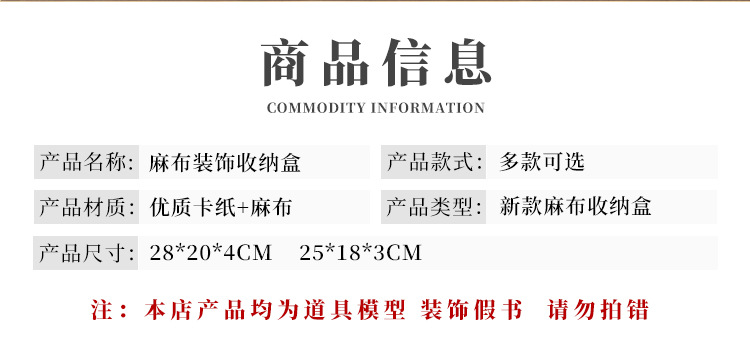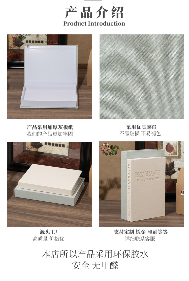 跨境麻布假书磁吸收纳盒套装亚麻烫金logo装饰书售楼部书柜仿真书