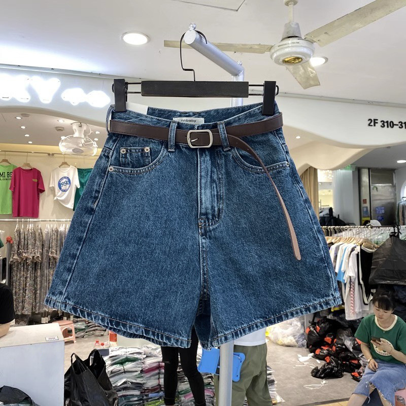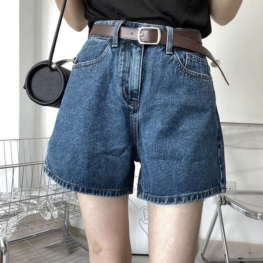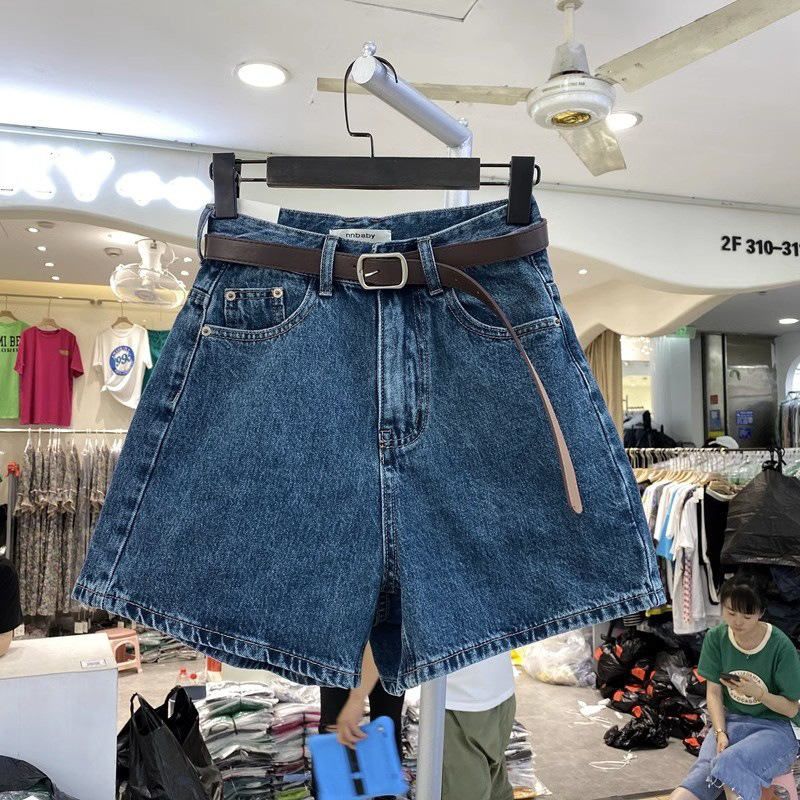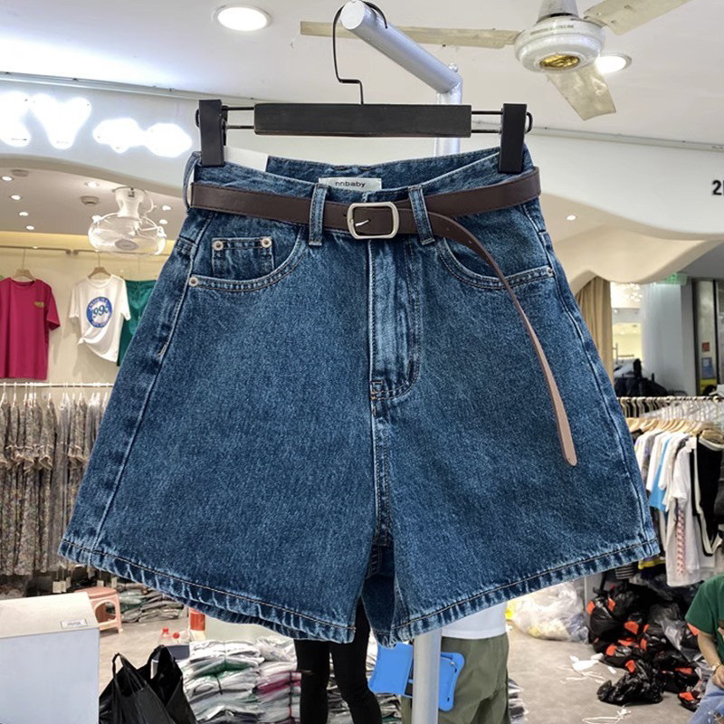 阔腿牛仔短裤休闲女秋季新款大码胖mm宽松高腰显瘦a字直筒热裤子