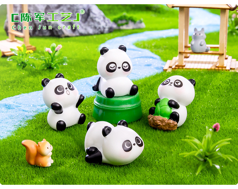 创意可爱小熊猫动物公仔 园艺DIY装饰品配件汽车桌面微景观小摆件