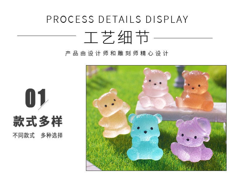 夜光小熊八色微景观萌粒公仔家居摆件钥匙扣装饰品配件文创小礼品