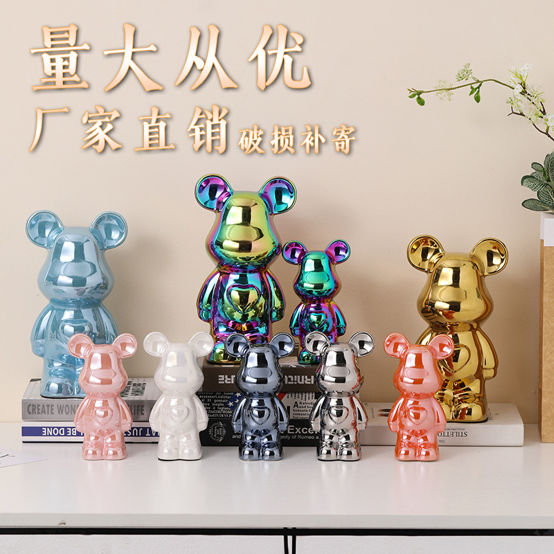 轻奢电视柜卡通爱心熊网红暴力熊摆件潮牌kaws积木熊客厅大型落地