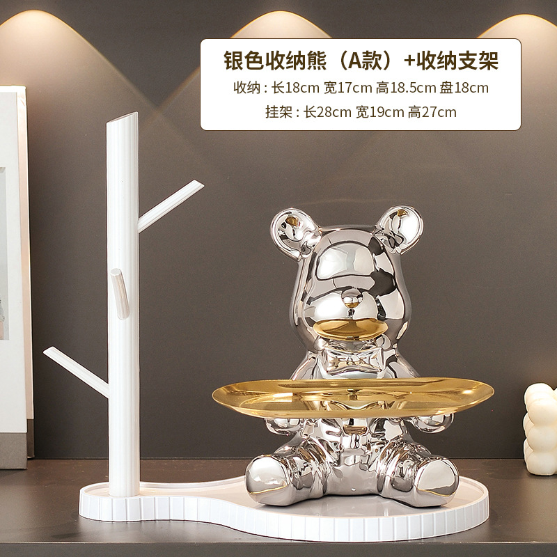 入户玄关钥匙收纳摆件置物架轻奢高档客厅进门口鞋柜暴力熊装饰品