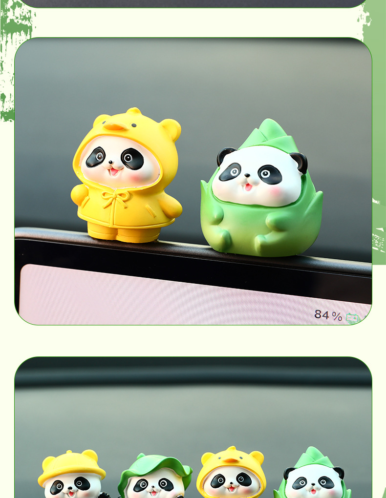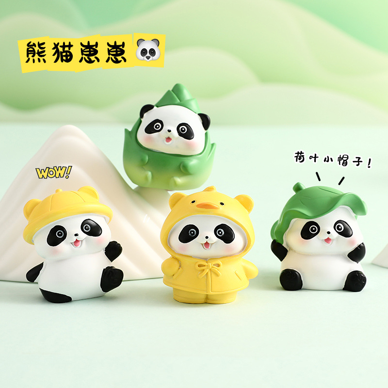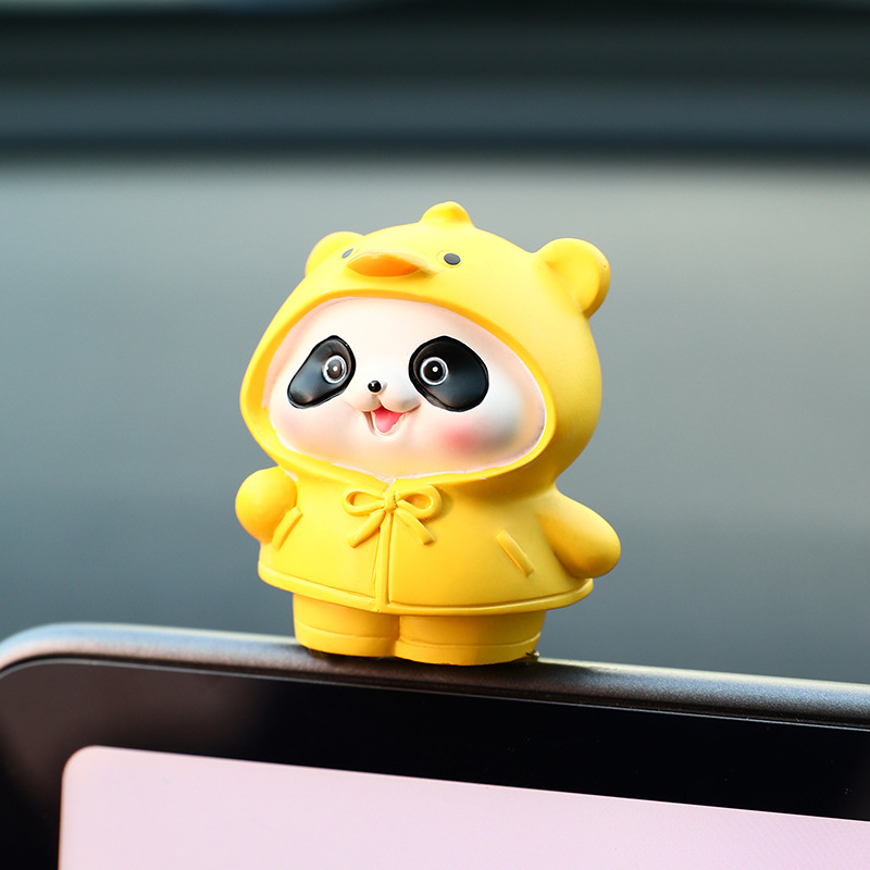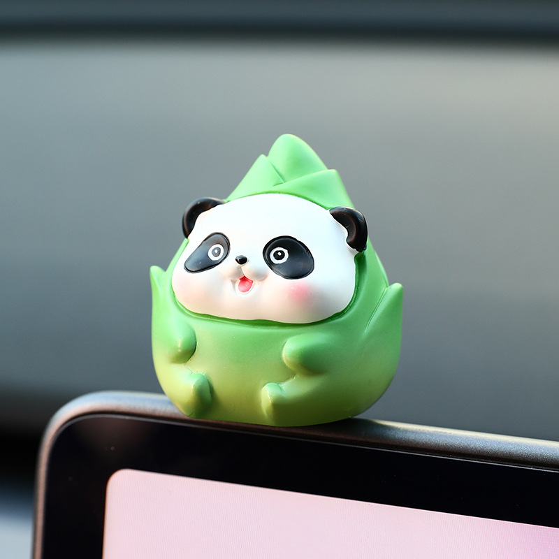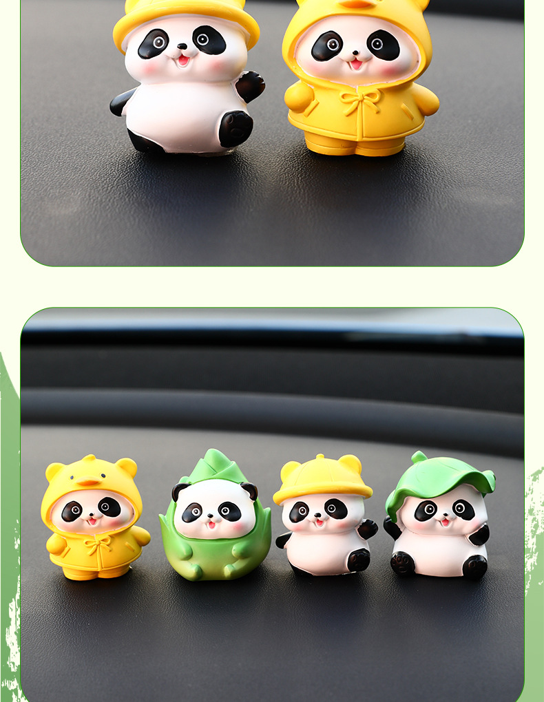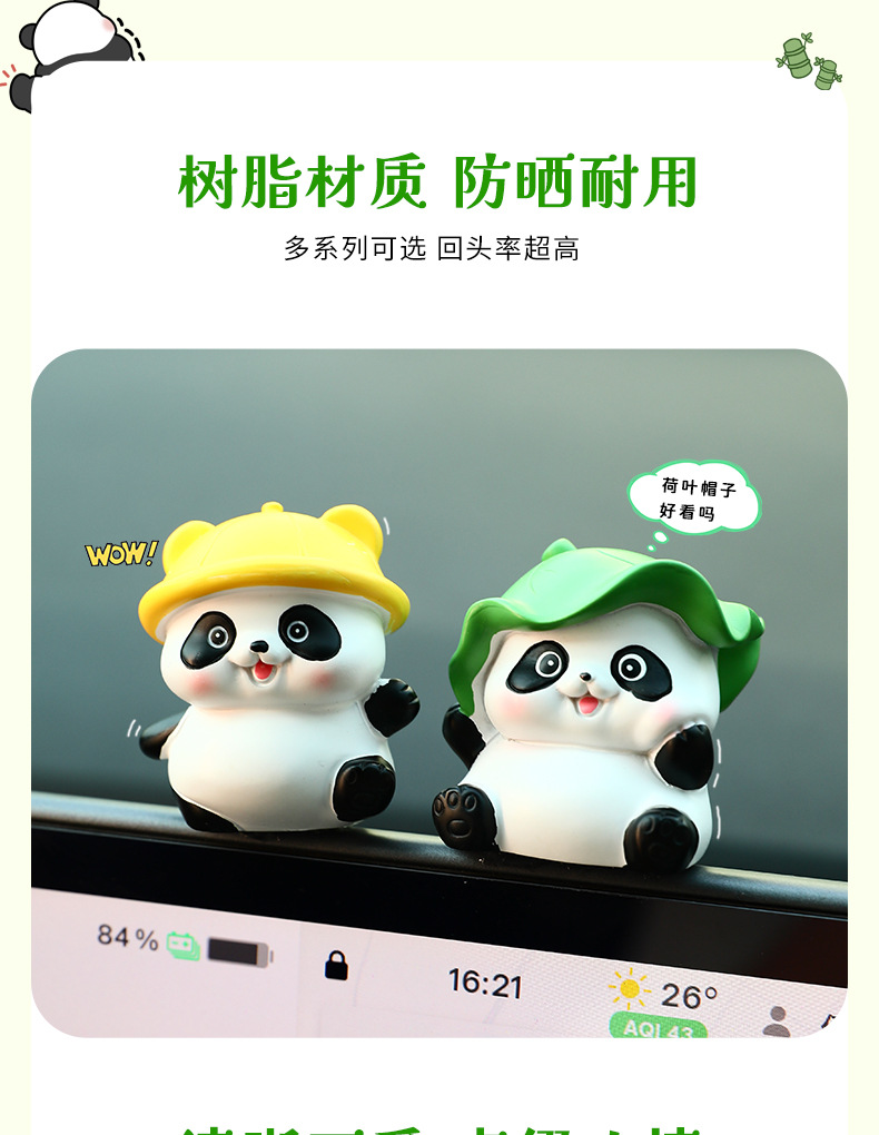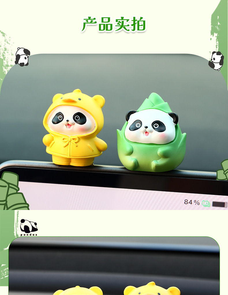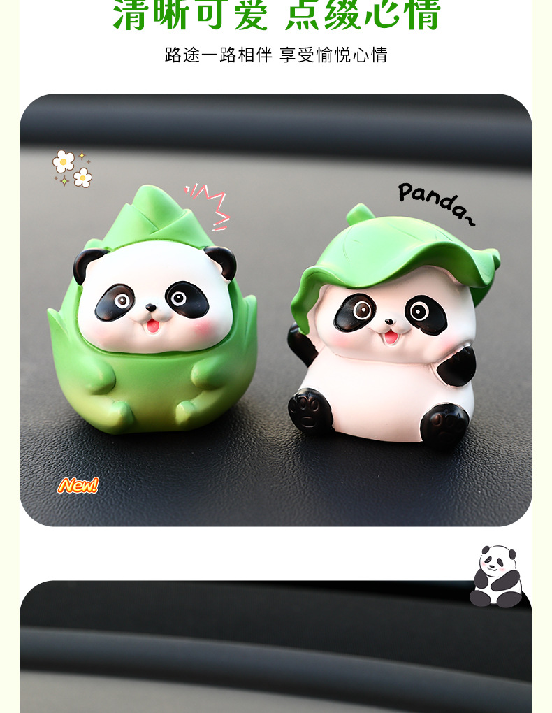 可爱熊猫小摆件办公室工位装饰车载公仔树脂工艺品创意小饰品礼物