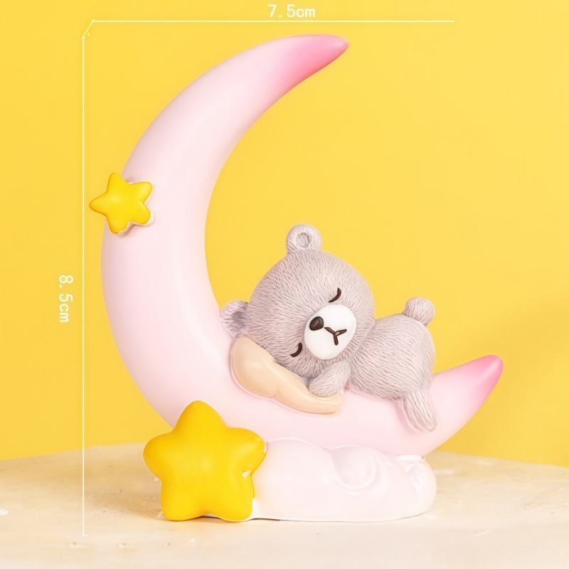 微景观创意可爱星星月亮小熊公仔手办动物园艺造景装饰品桌面摆件