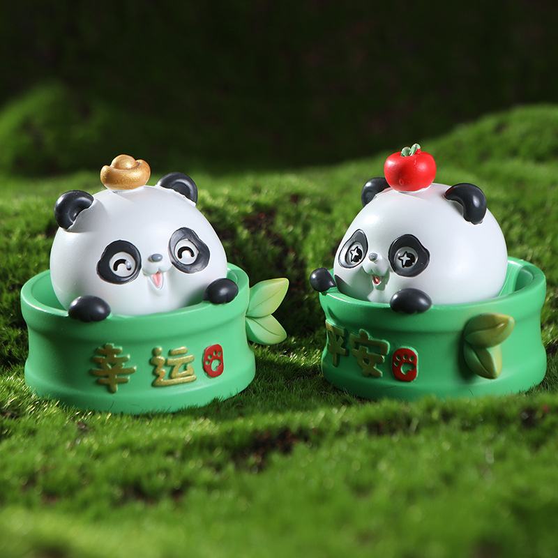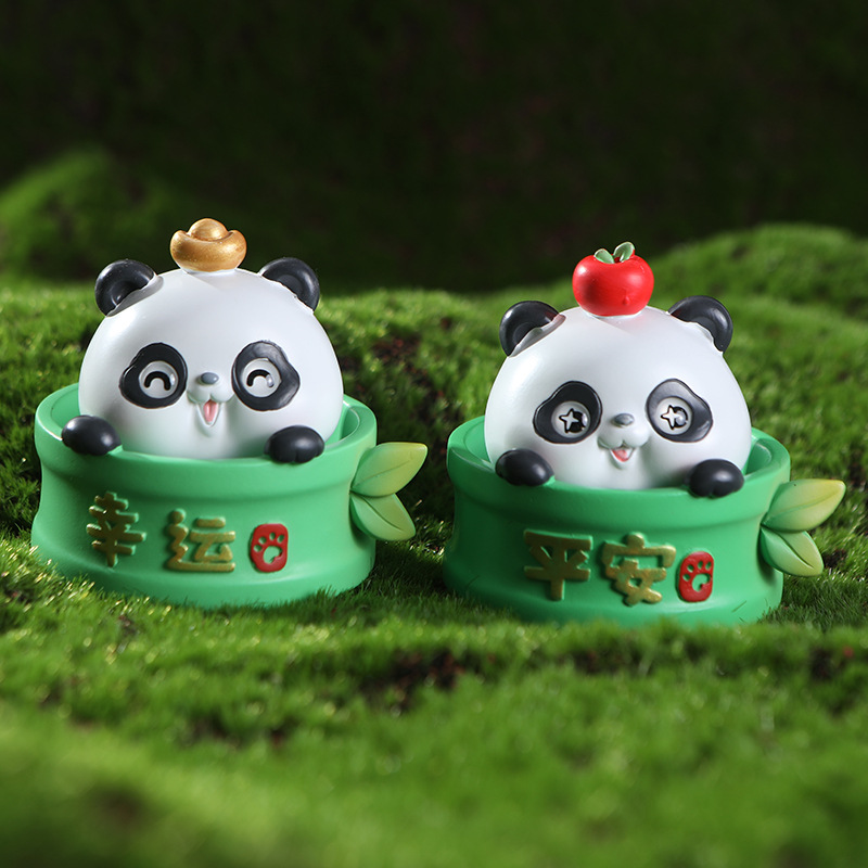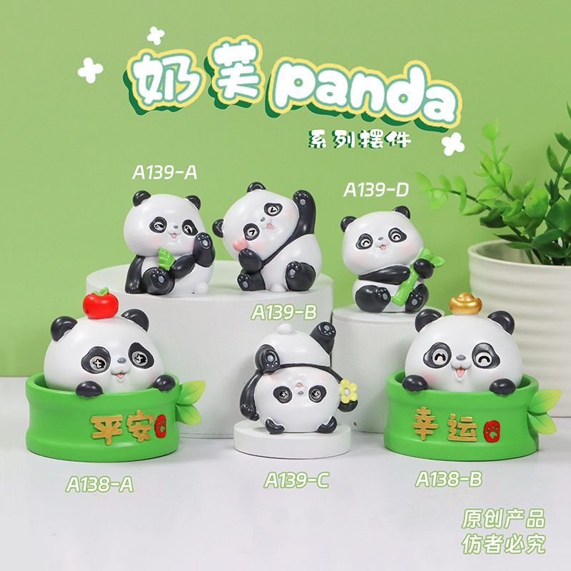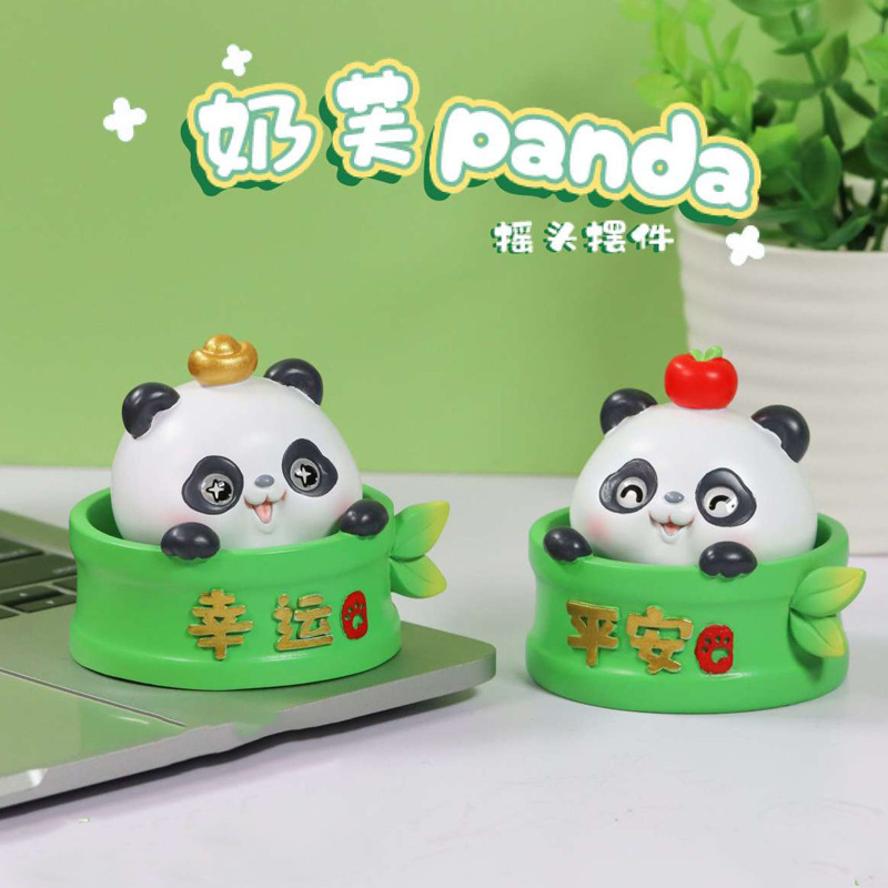 可爱熊猫摇头摆件创意奶芙panda系列公仔蛋糕装饰吉祥物车载摆件