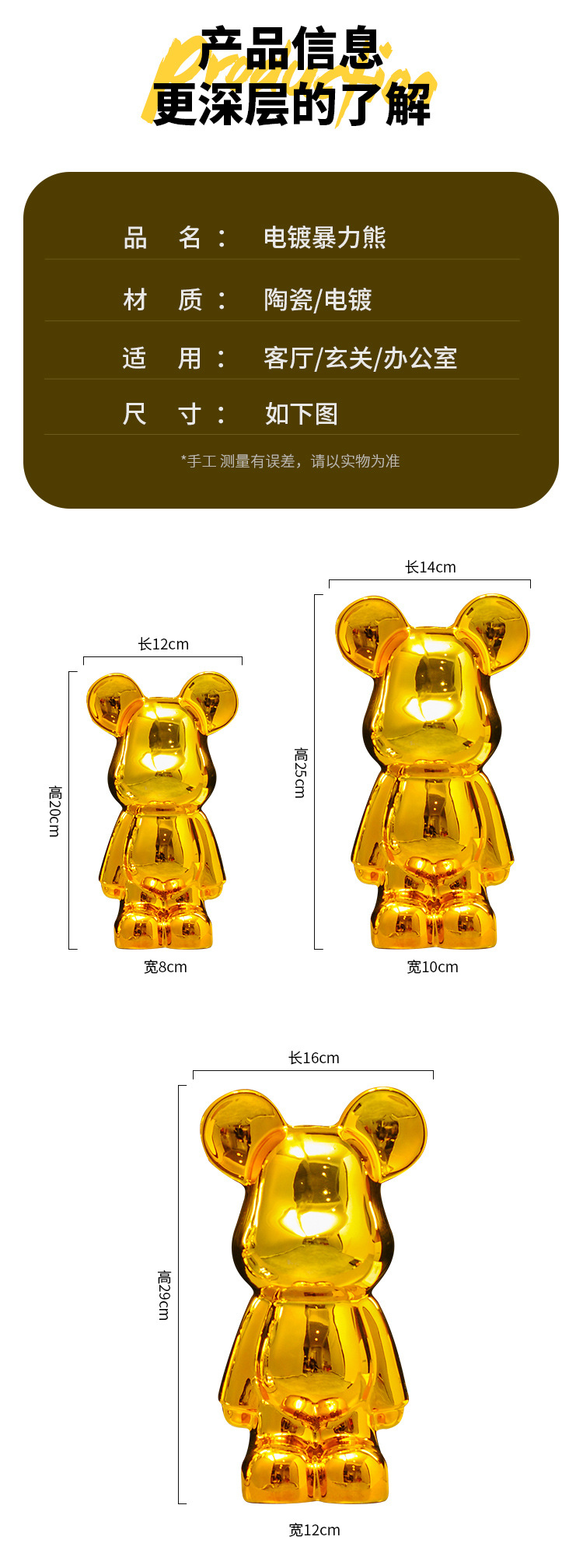 暴力熊摆件客厅轻奢高档家居玄关电视柜酒柜展示柜装饰品乔迁礼品