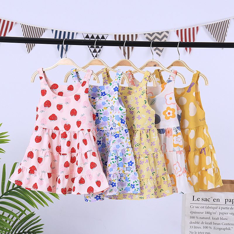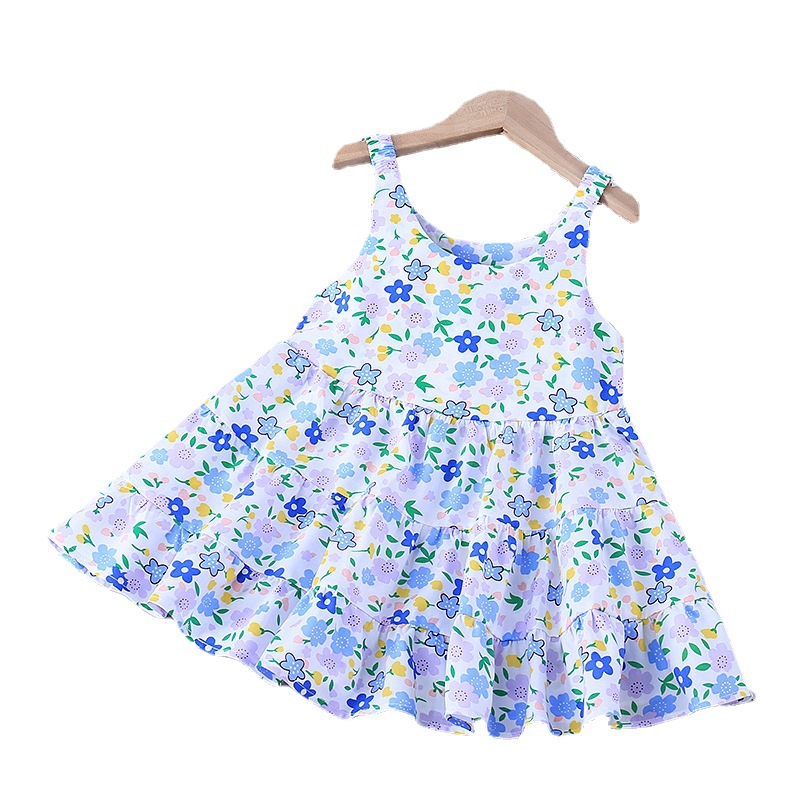 新款女童棉绸连衣裙2025夏季洋气碎花公主裙儿童宝宝薄款吊带裙子