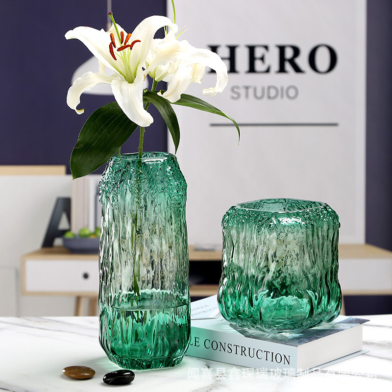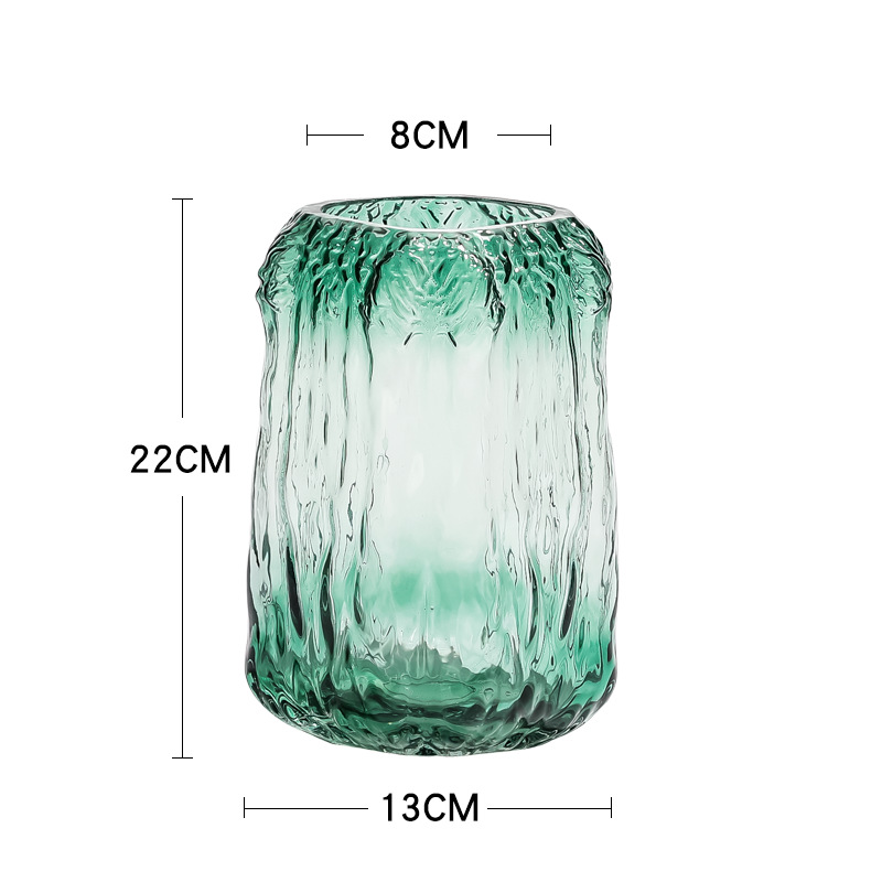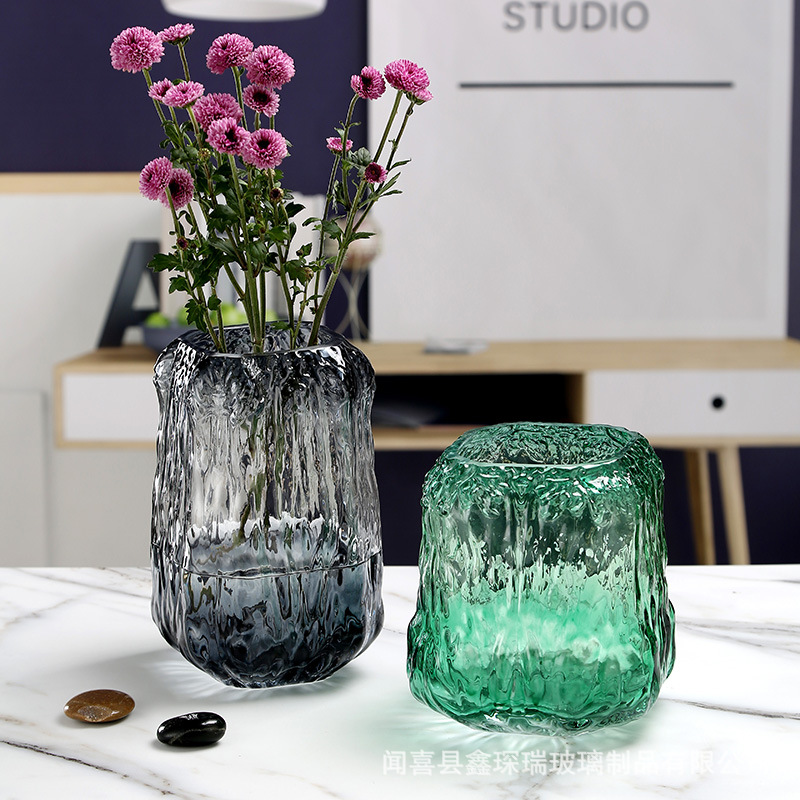 复古简约创意冰纹彩色玻璃花瓶树根客厅摆件插花干花花器装饰器皿