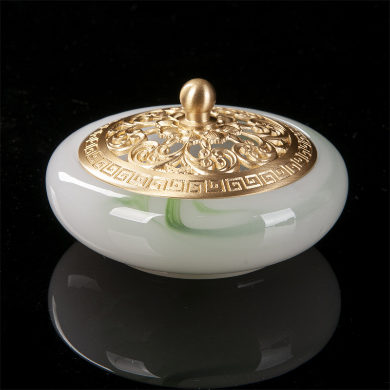 古法彩色绿琉璃盘香炉香篆炉家用室内创意香道香炉仿古供盘香薰炉