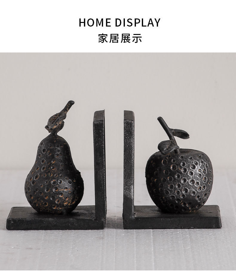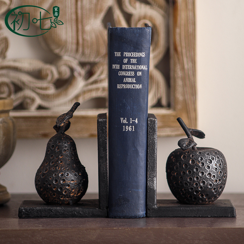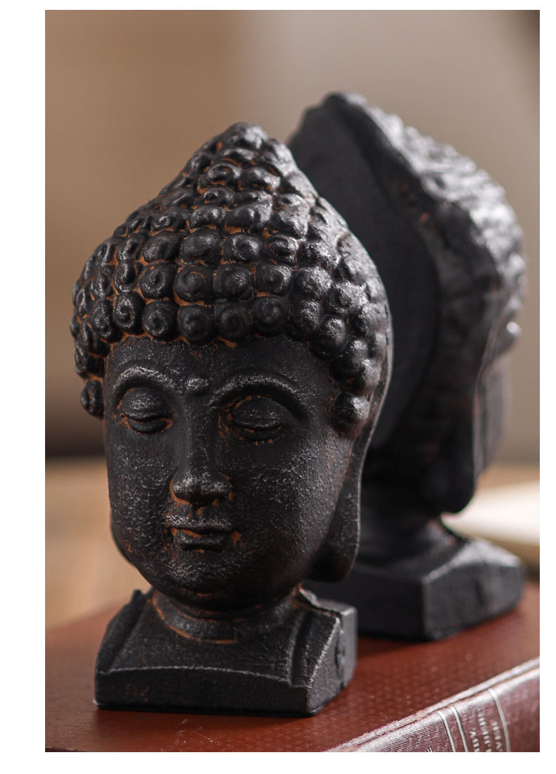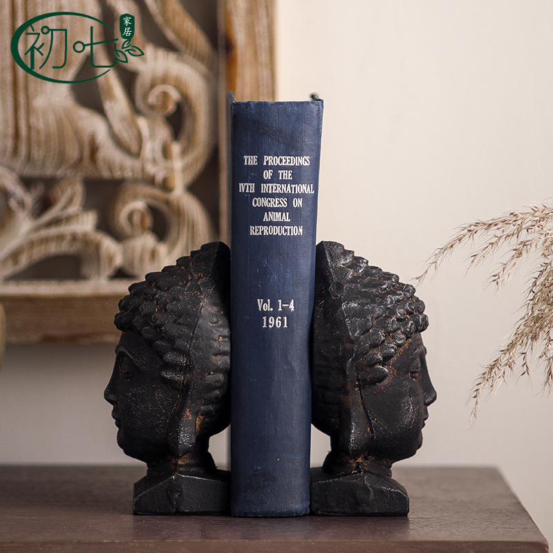 茶室复古禅意如来佛像书立铁艺做旧书房书挡玄关装饰水果工艺摆件