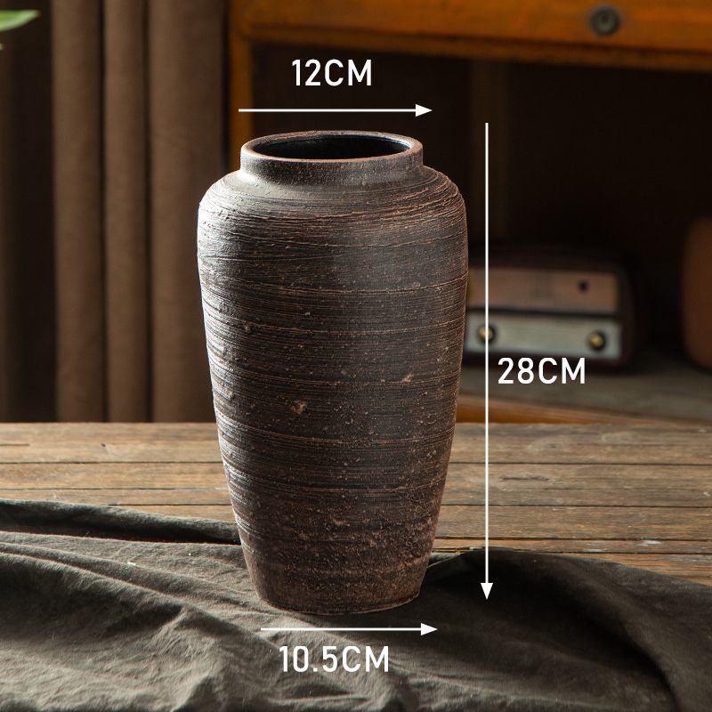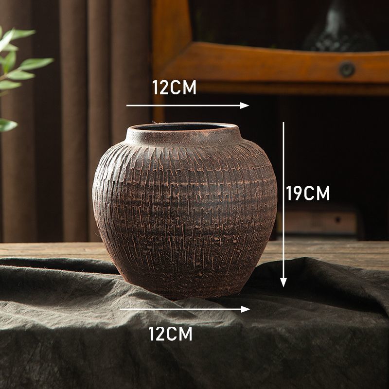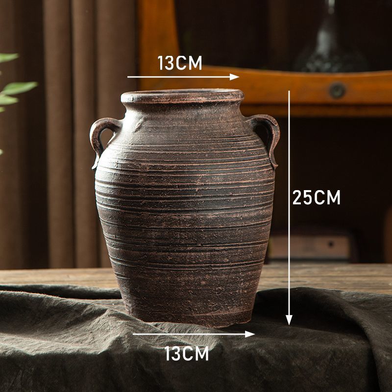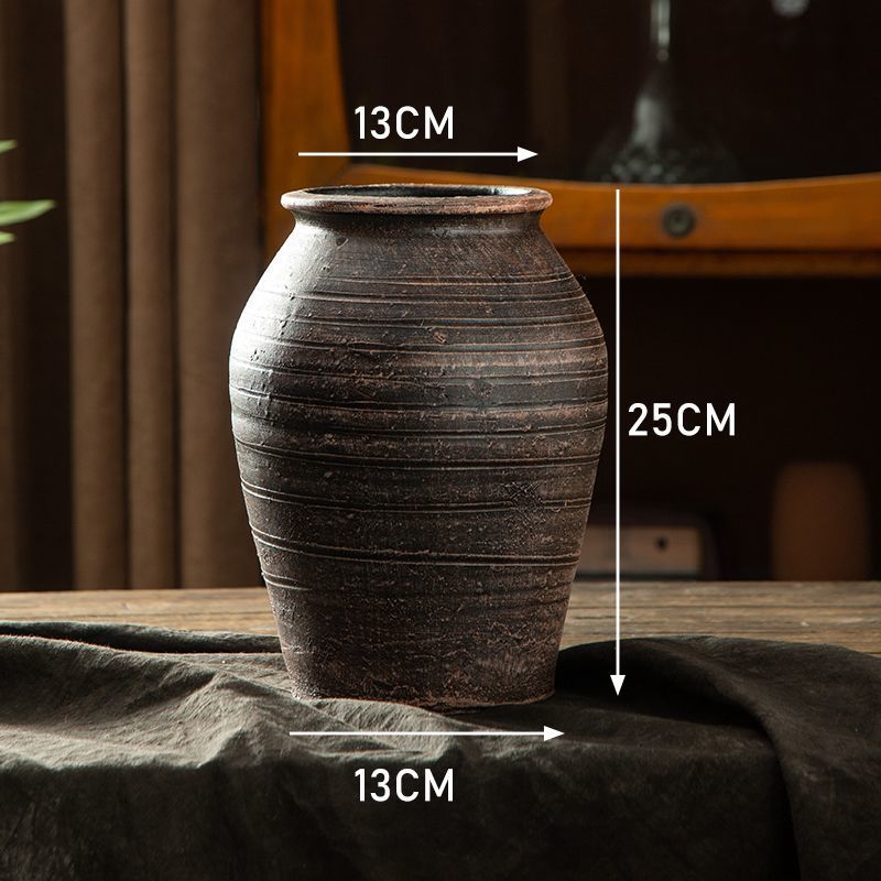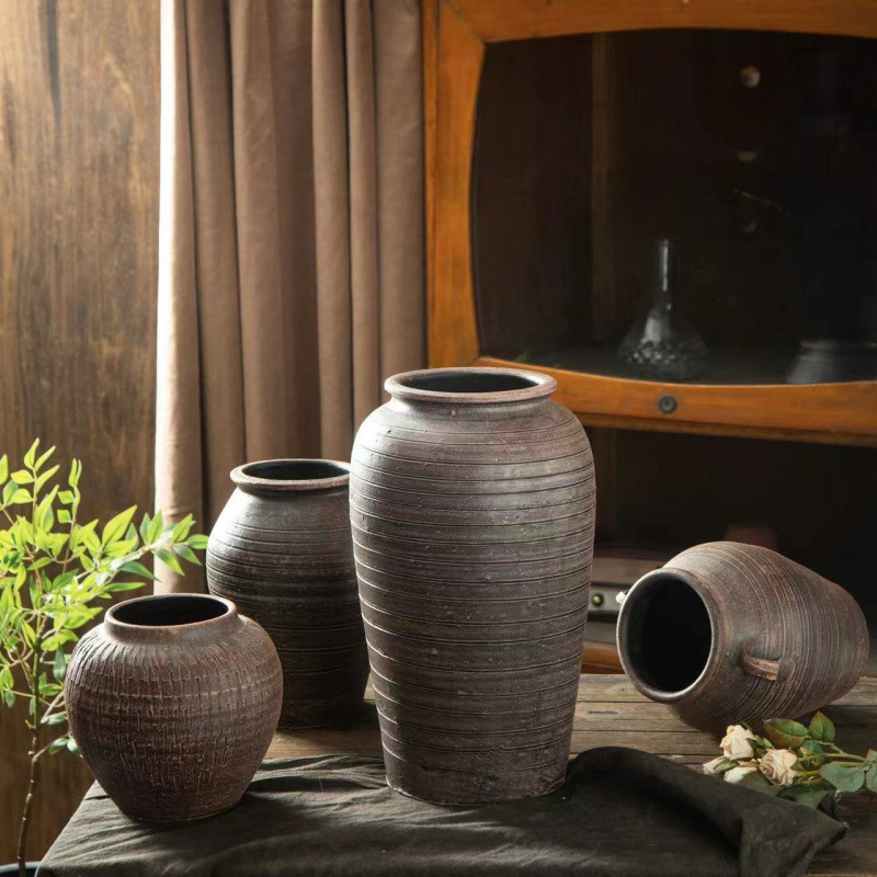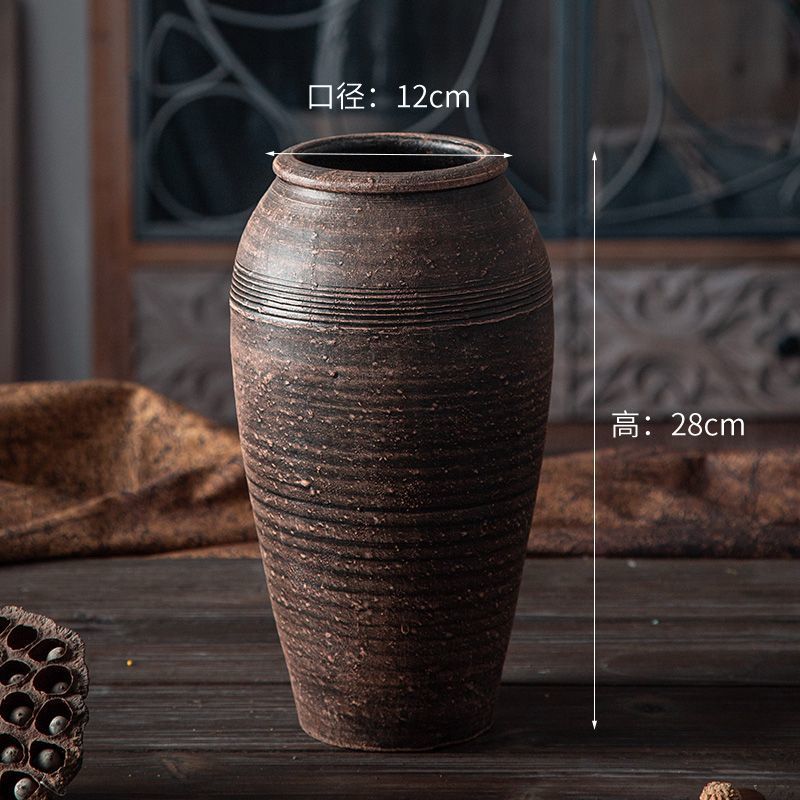手工复古粗陶花瓶栽培插干花陶罐花器土陶罐透气水培鲜花简约花瓶