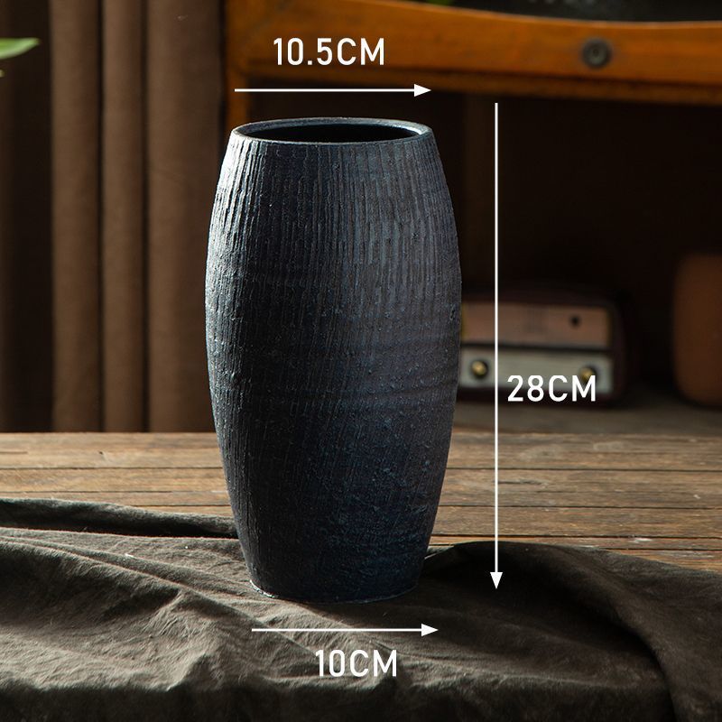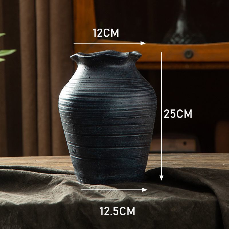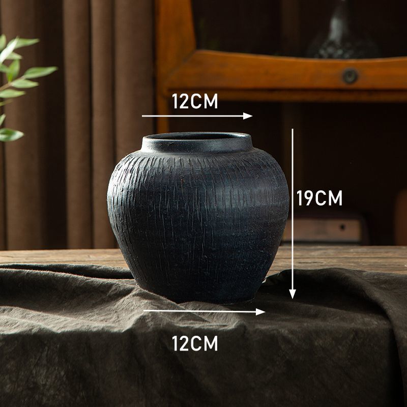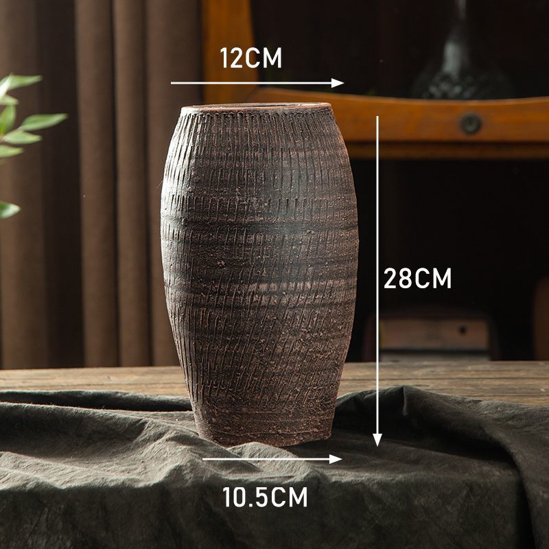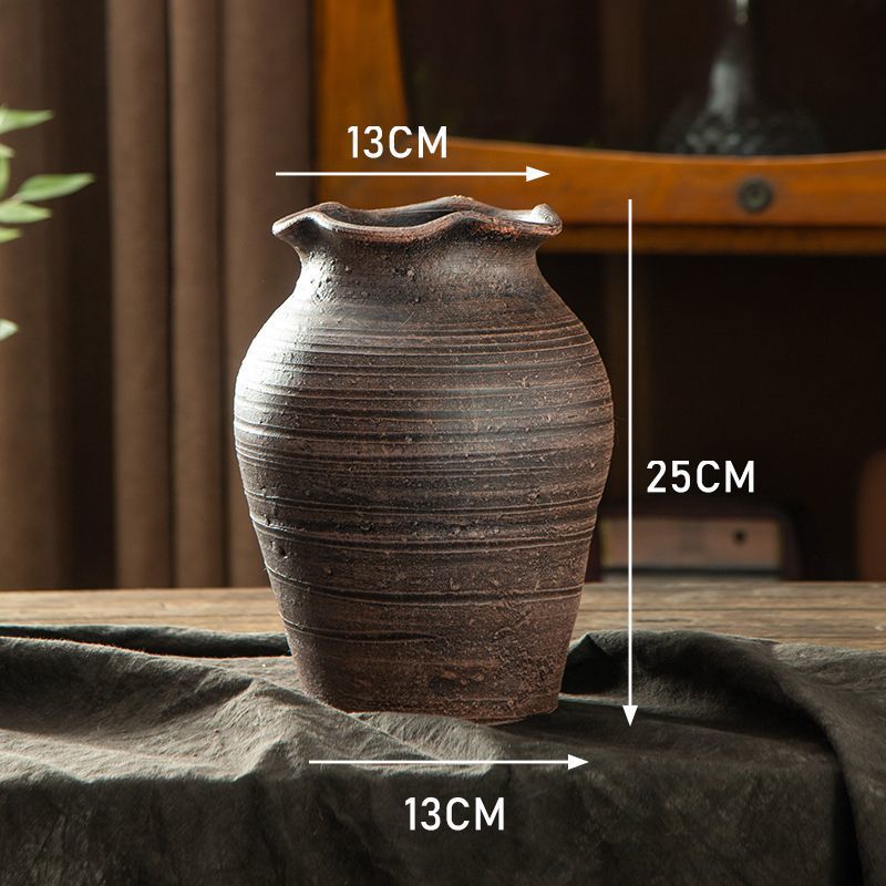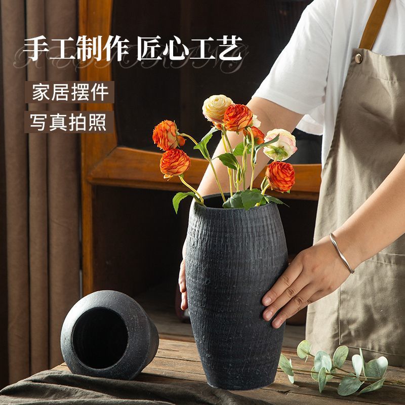 手工复古粗陶花瓶栽培插干花陶罐花器土陶罐透气水培鲜花简约花瓶