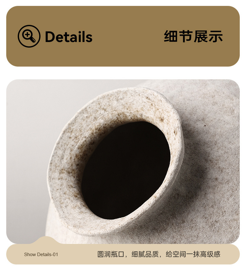 贝汉美陶瓷花瓶高级感侘寂风家居客厅电视柜复古花器装饰摆件批发