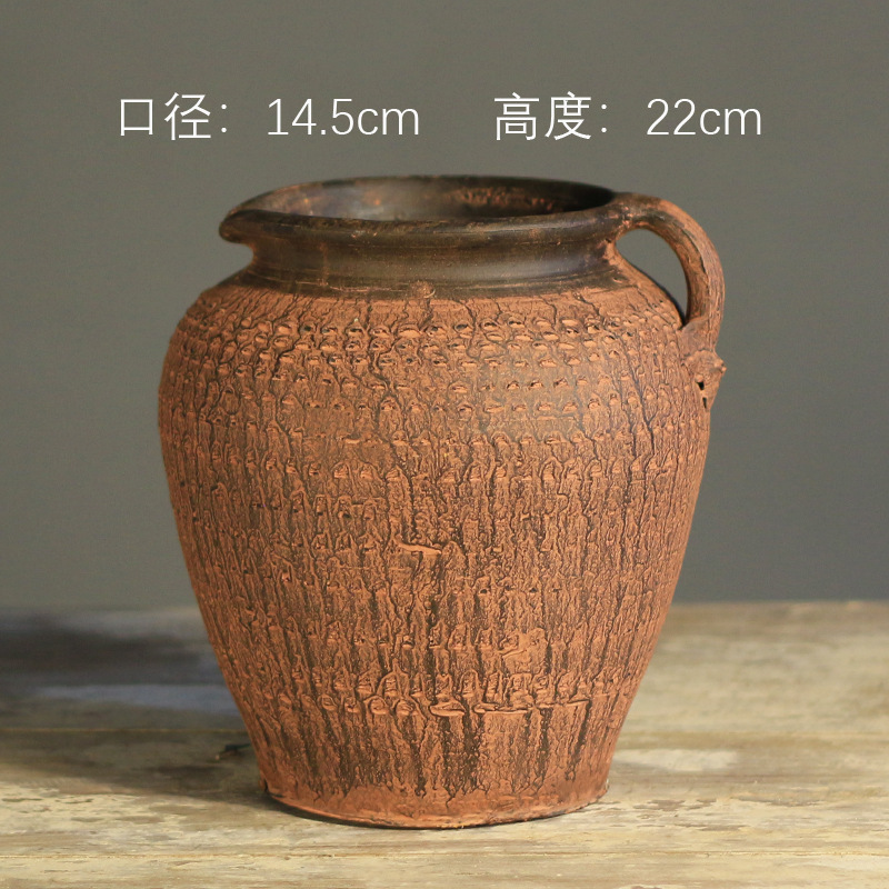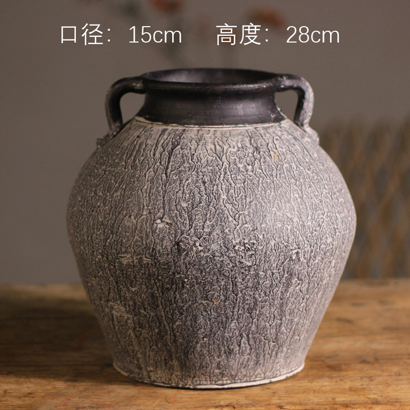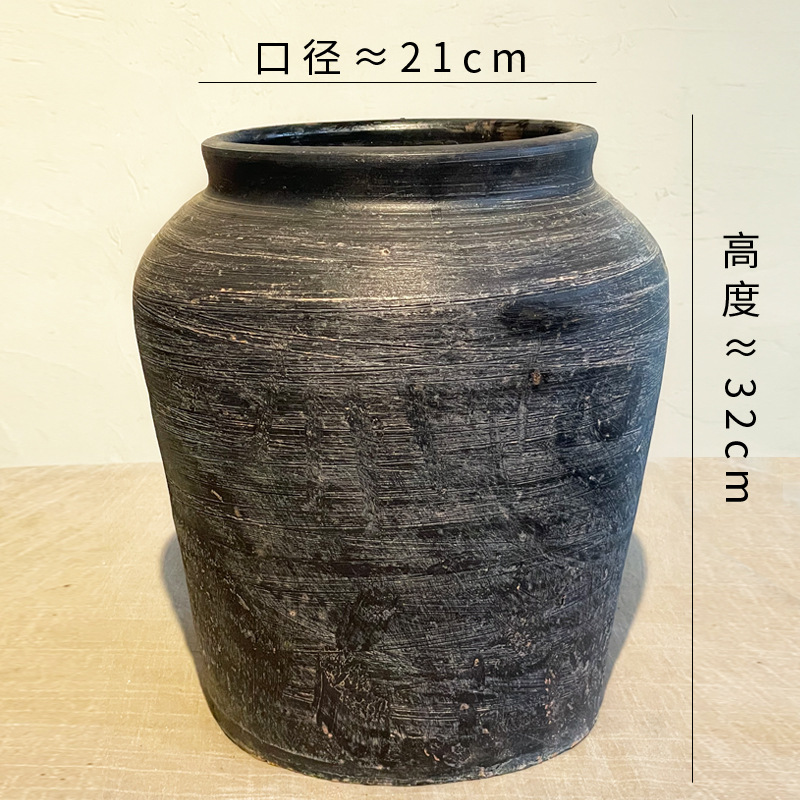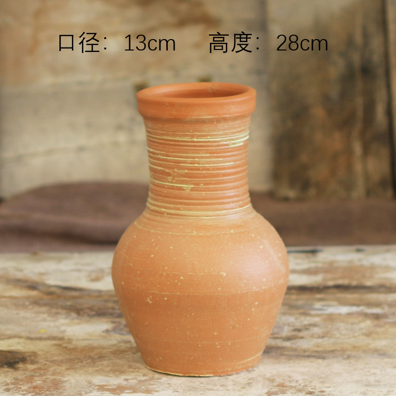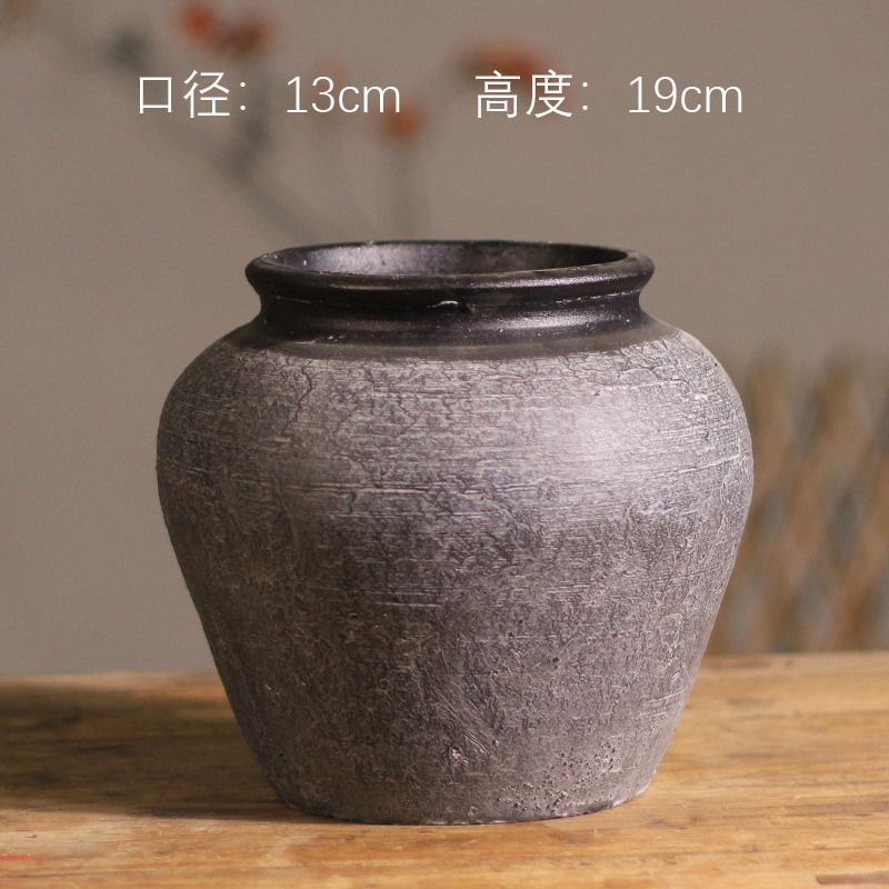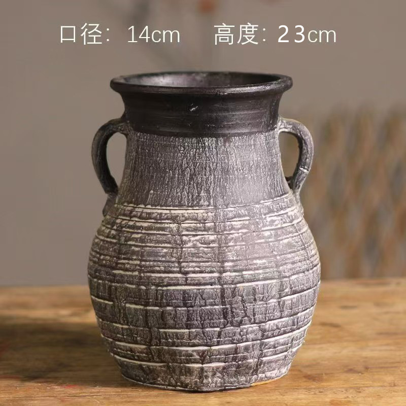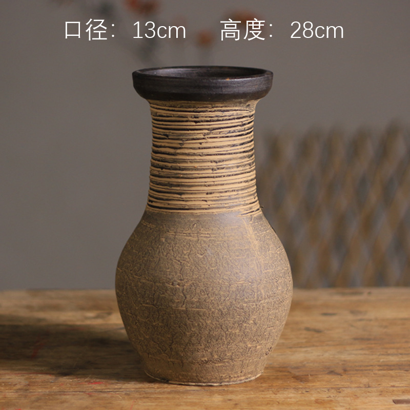 中式花瓶复古手工摆件大口径插花干花粗陶陶罐水培花器侘寂风花瓶
