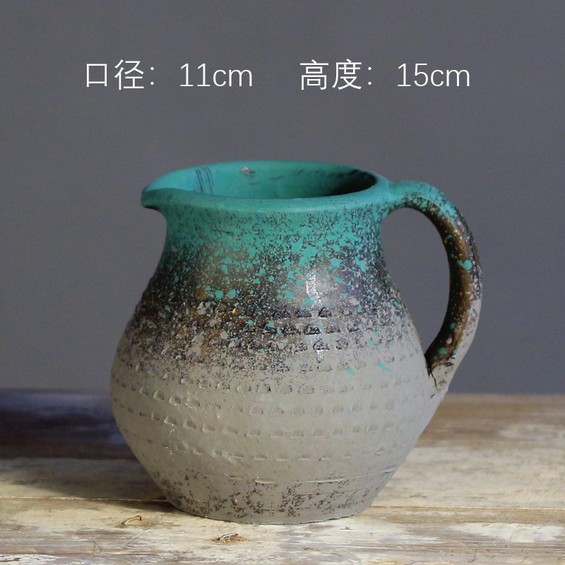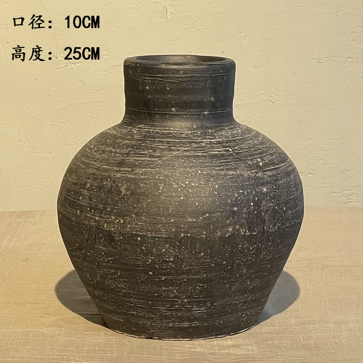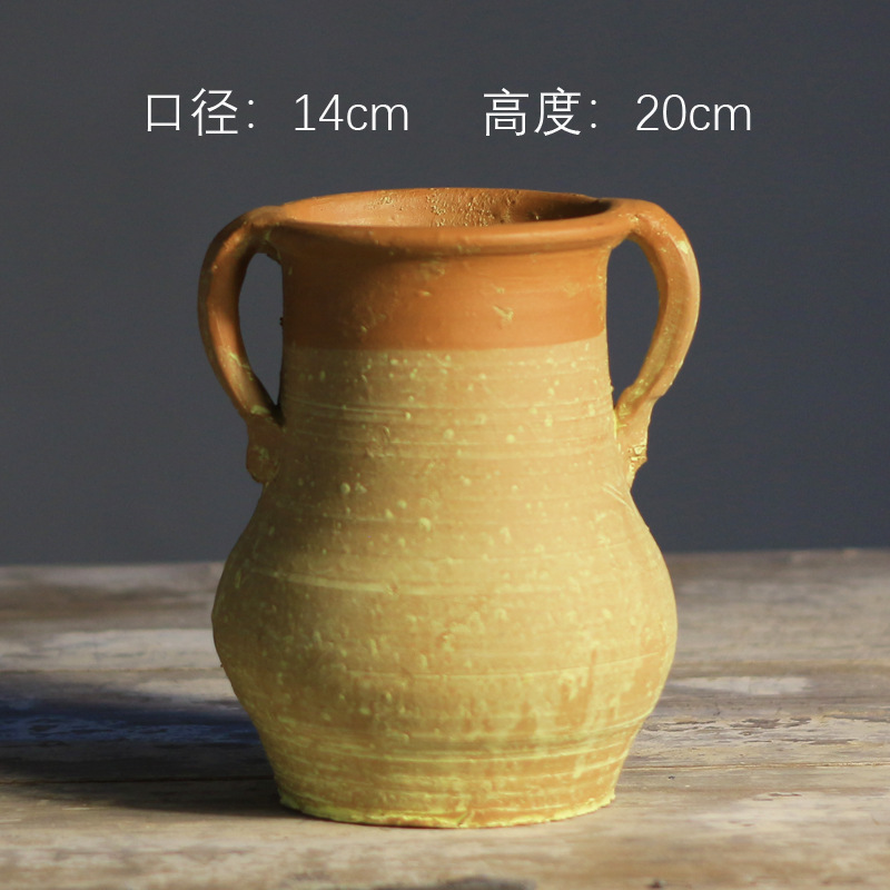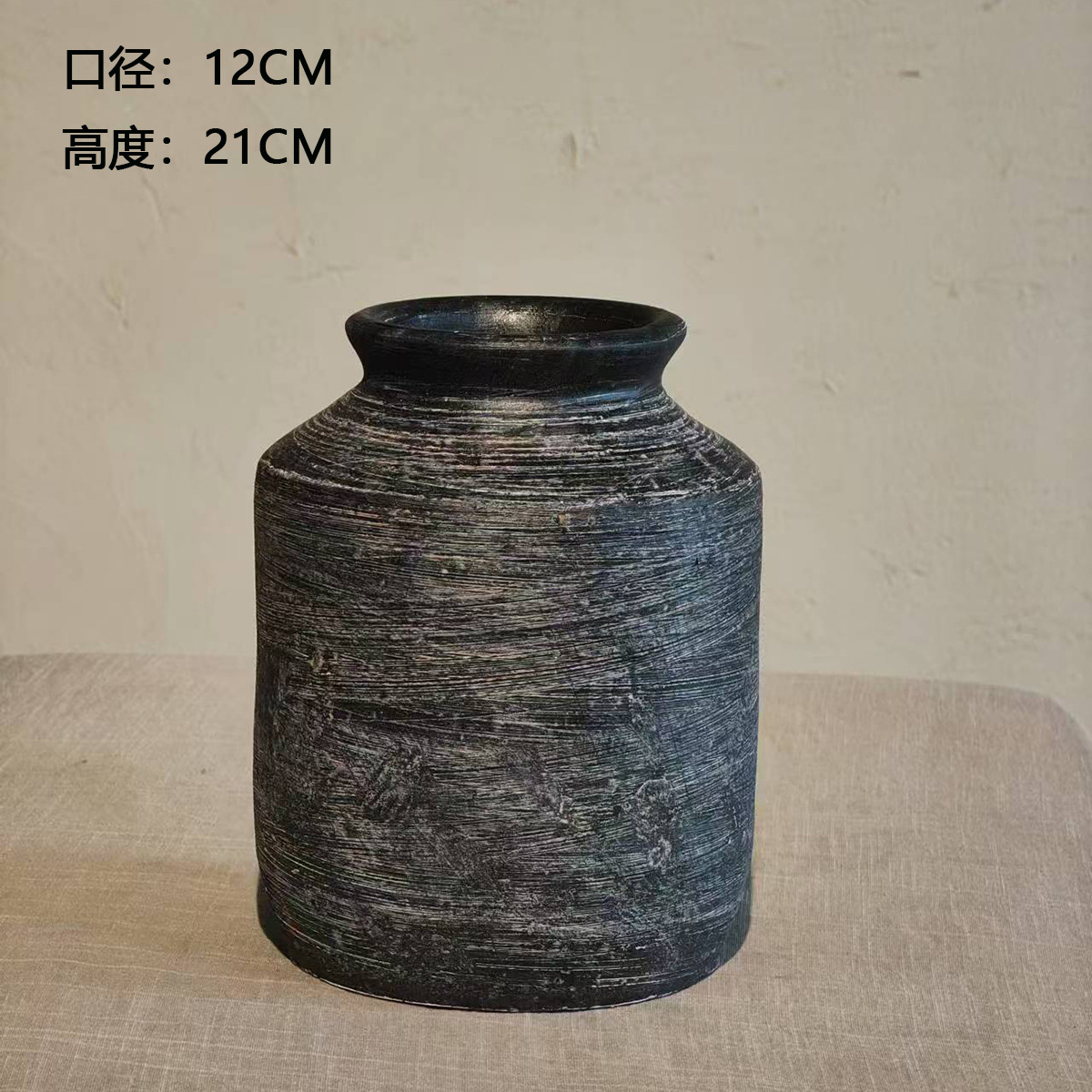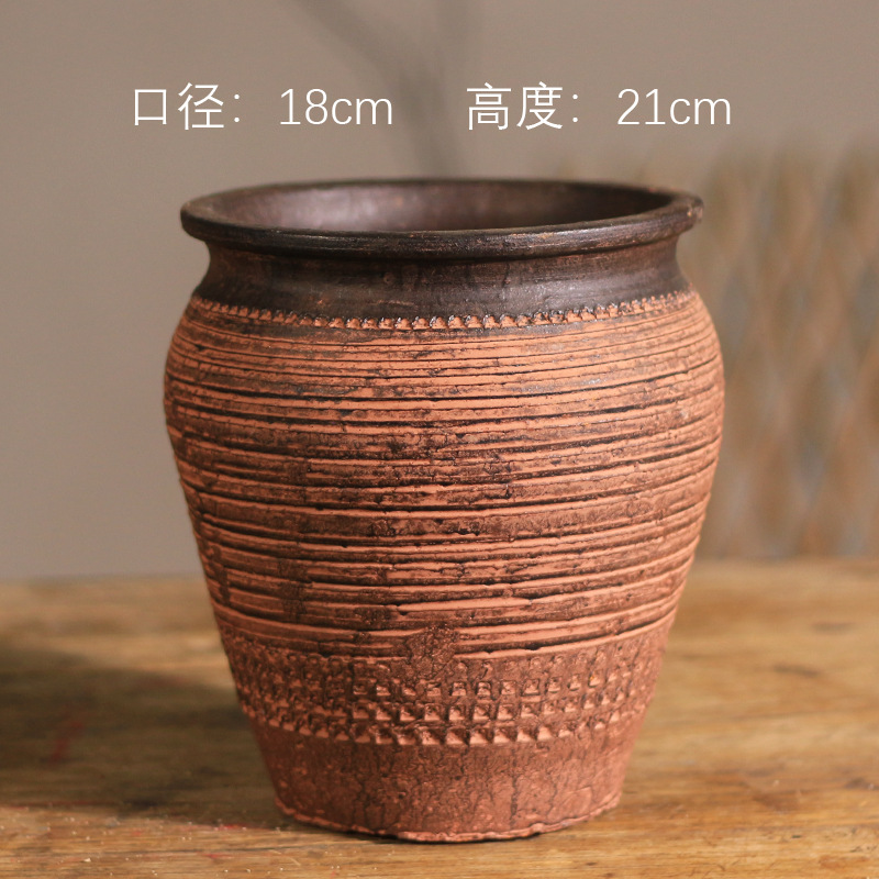 中式花瓶复古手工摆件大口径插花干花粗陶陶罐水培花器侘寂风花瓶