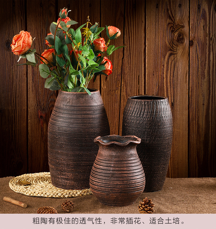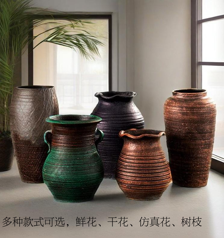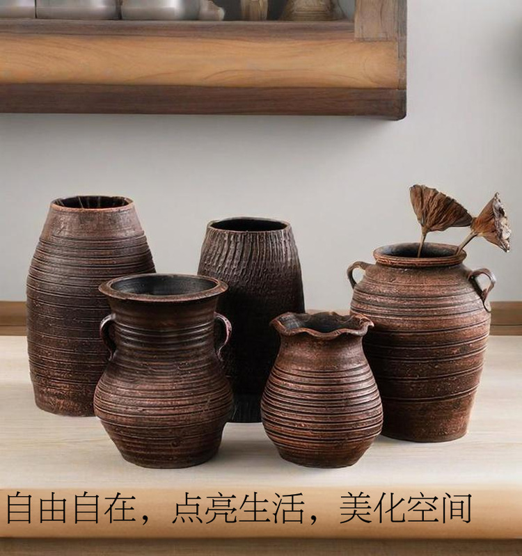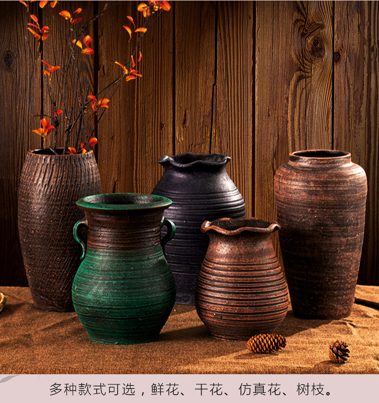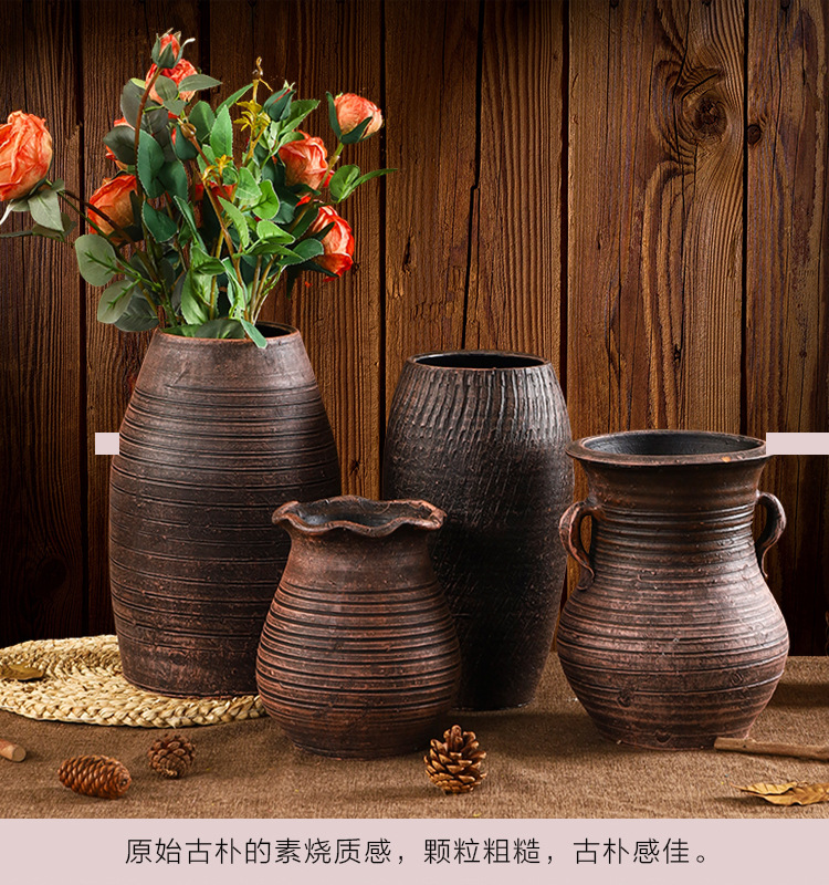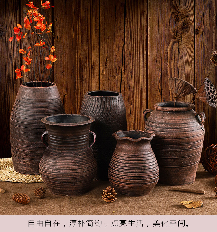 复古土陶罐居家水培干花盆插花器装饰摆件怀旧水缸陶瓷大花瓶批发