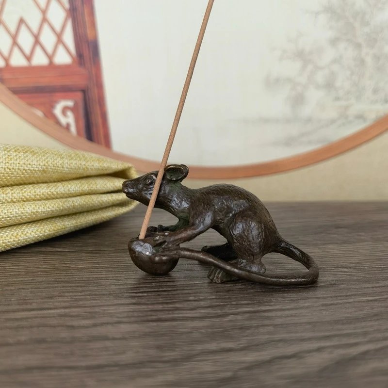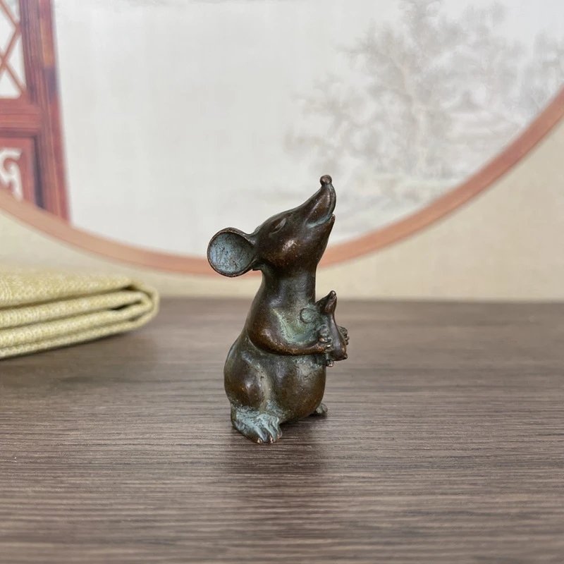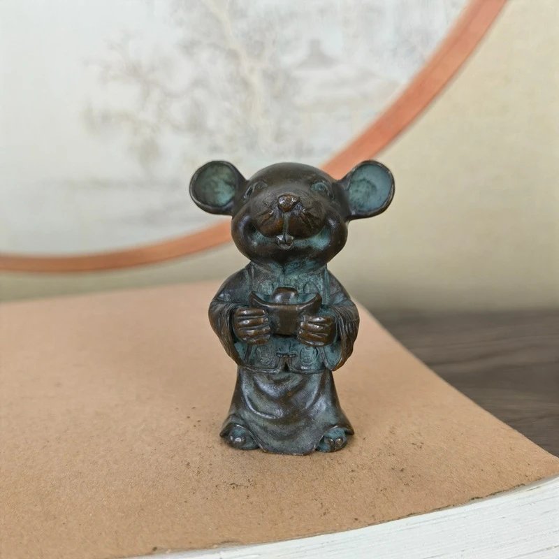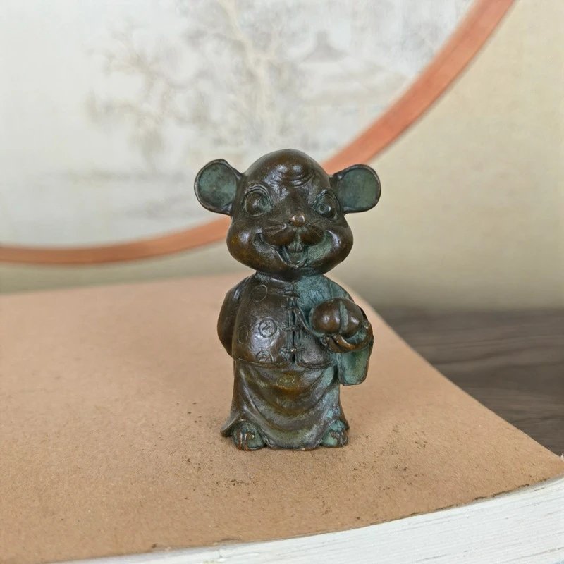 仿古小老鼠摆件长尾鼠桌面茶宠摆件福禄寿喜财生肖鼠古玩杂项批发